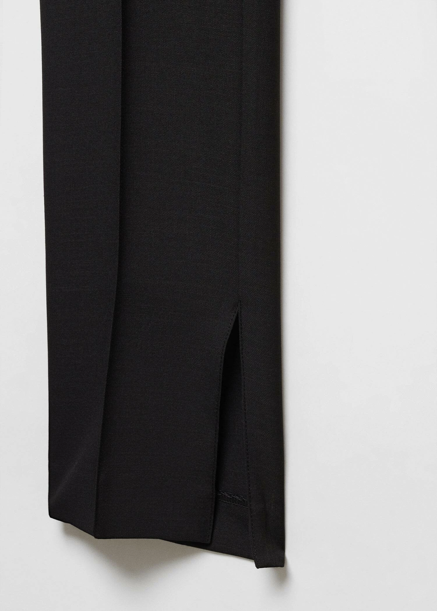 coupe skinny, taille normale, deux poches laterales, deux poches passepoilees a l’arriere, fermeture eclair avec crochet et bouton dissimules, fentes laterales a la base, passants pour la ceinture, doublure, total look.Composition: 100% polyester. Doublure: 55% polyester,45% viscose