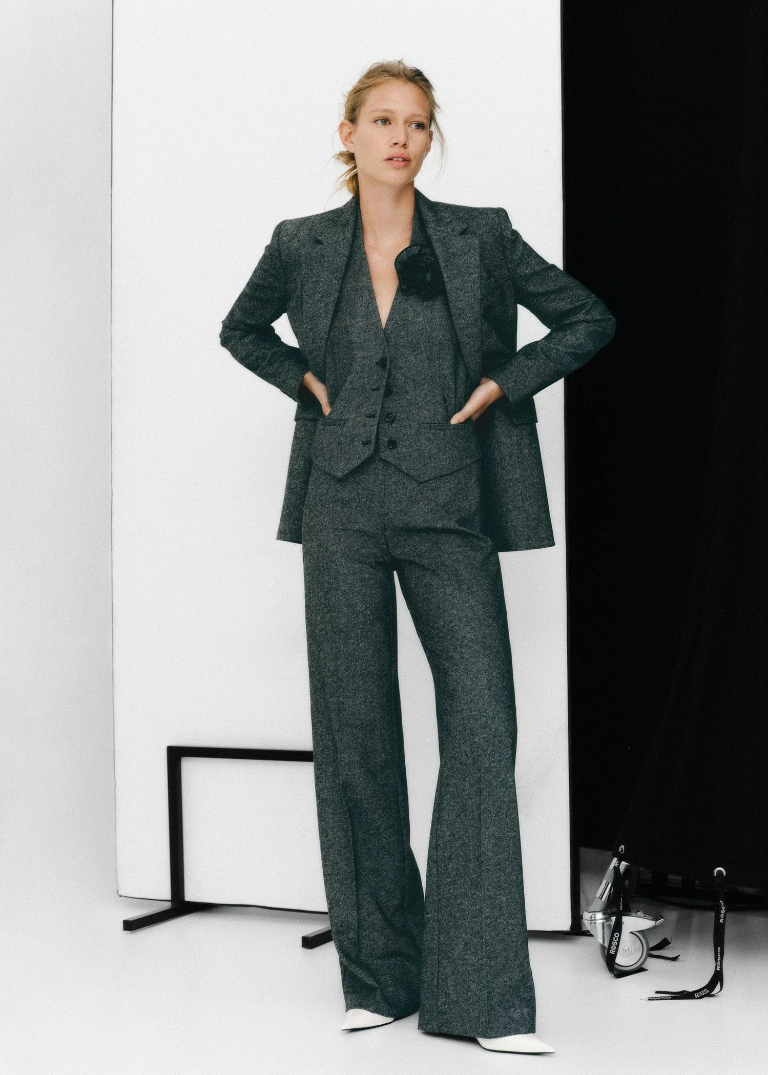 tissu melange de laine recyclee, coupe longue, coupe droite, taille normale, fermeture eclair dissimulee sur le cote, total lookComposition: 67% laine,31% polyester,2% polyamide