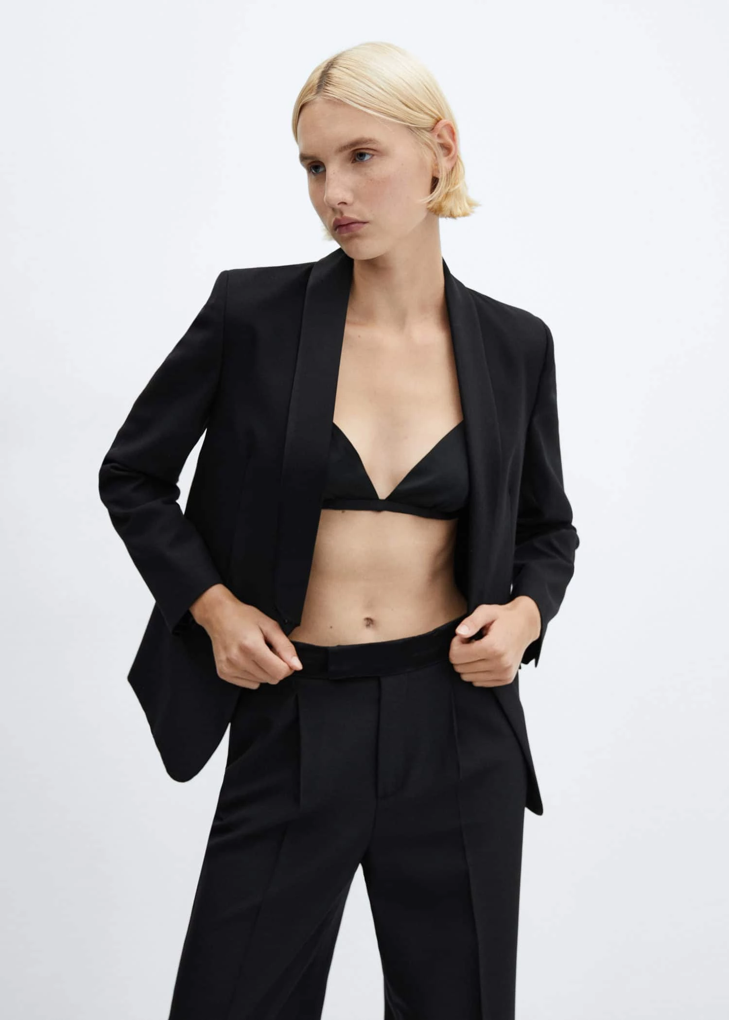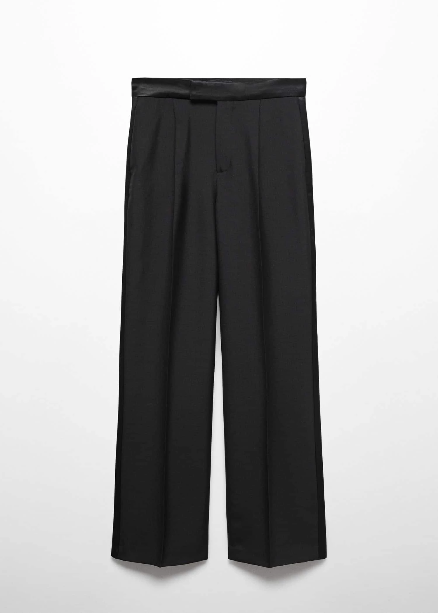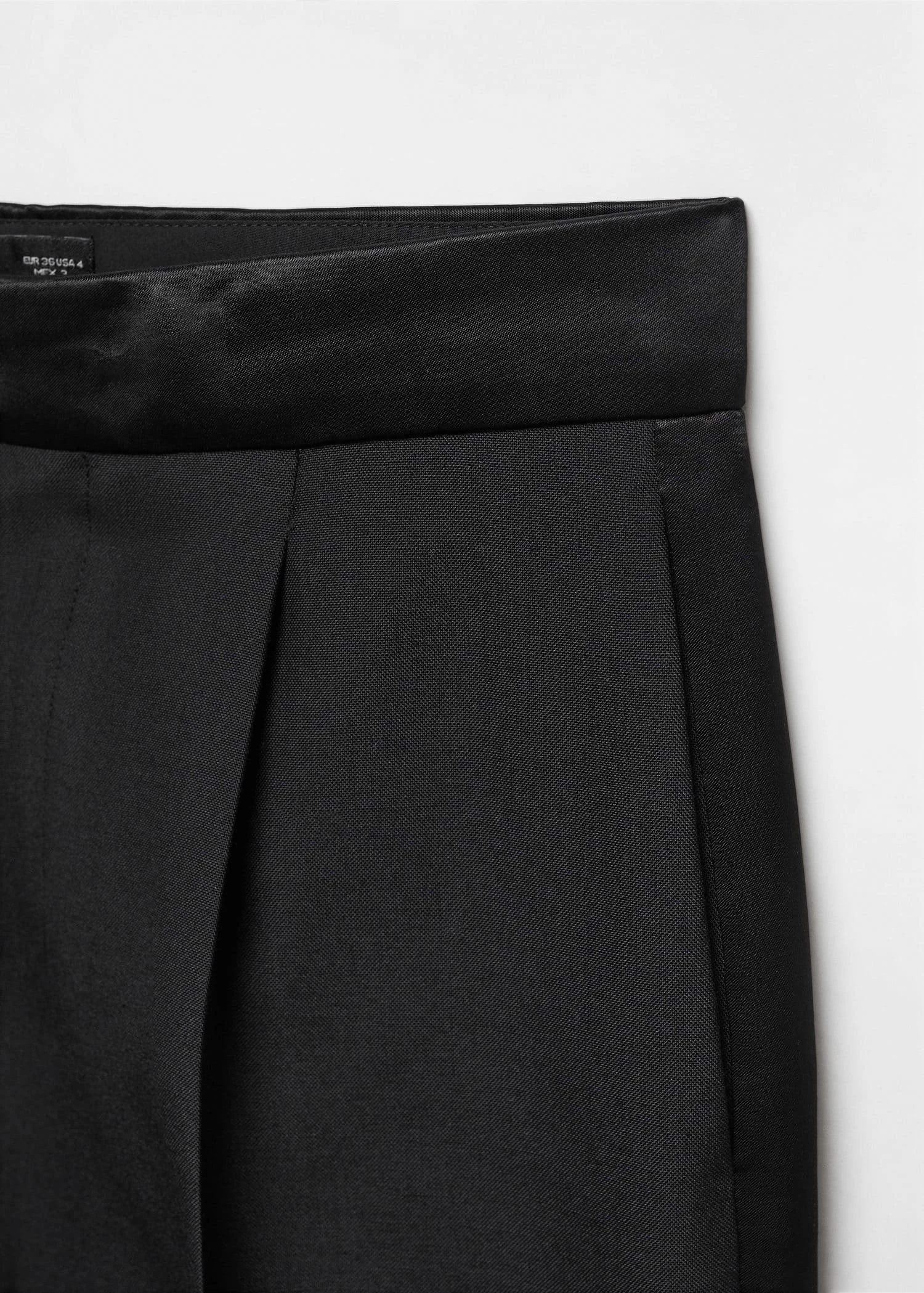 tissu de laine melange, droit, deux poches laterales, deux poches passepoilees a l’arriere, fermeture eclair avec crochet et bouton dissimules, bords satines, doublure, total look, collection fetes et ceremonies.Composition: 55% polyester,45% laine. Doublure: 51% viscose,49% polyester. Applique: 54% viscose,46% polyester
