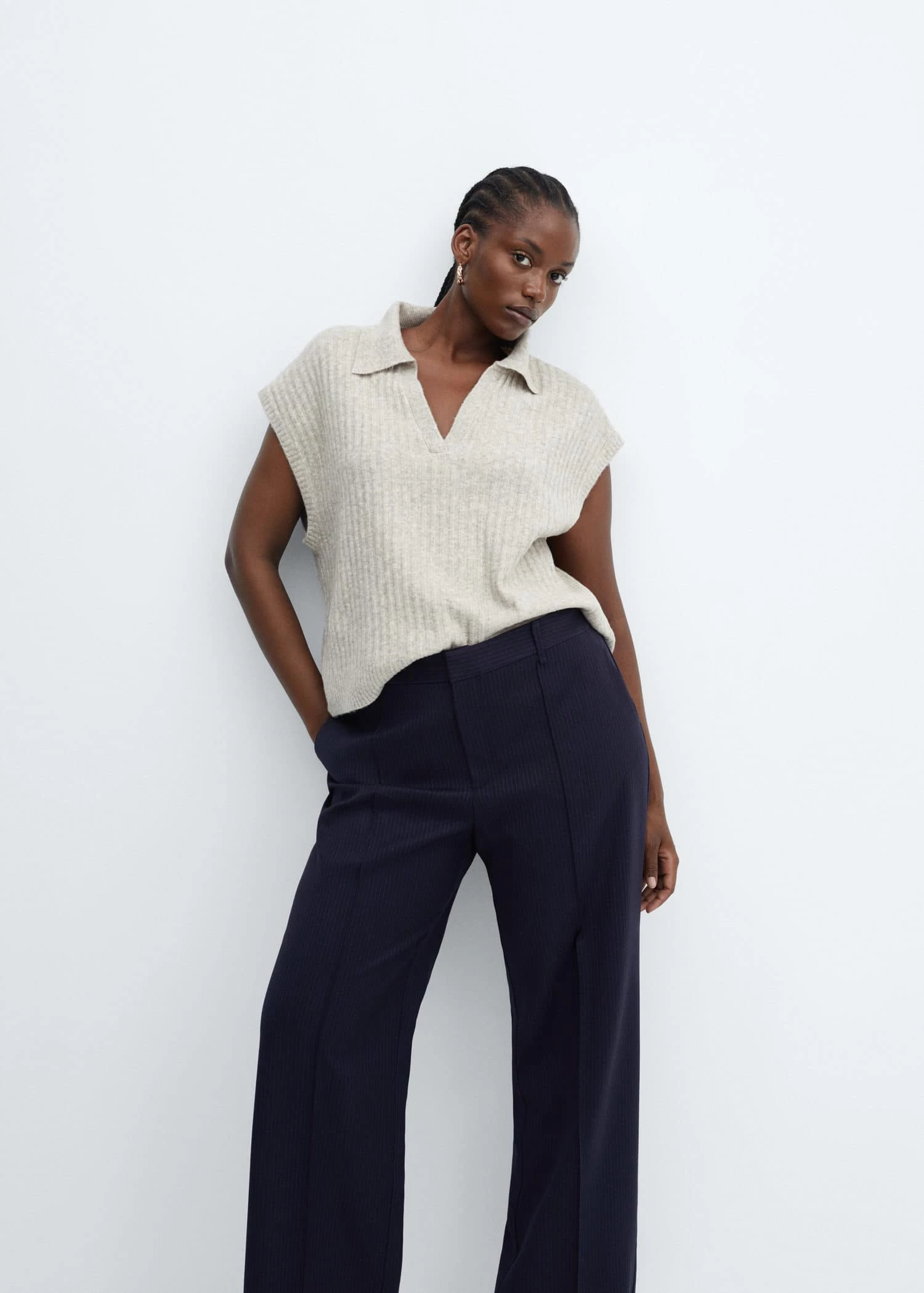 tissu fluide, coupe droite, coupe longue, imprime fines rayures, taille normale, deux poches laterales, fermeture eclair avec crochet, passants de ceinture , doublure, disponible plusComposition: 75% polyester,23% viscose,2% elasthanne. Doublure: 55% polyester,45% viscose