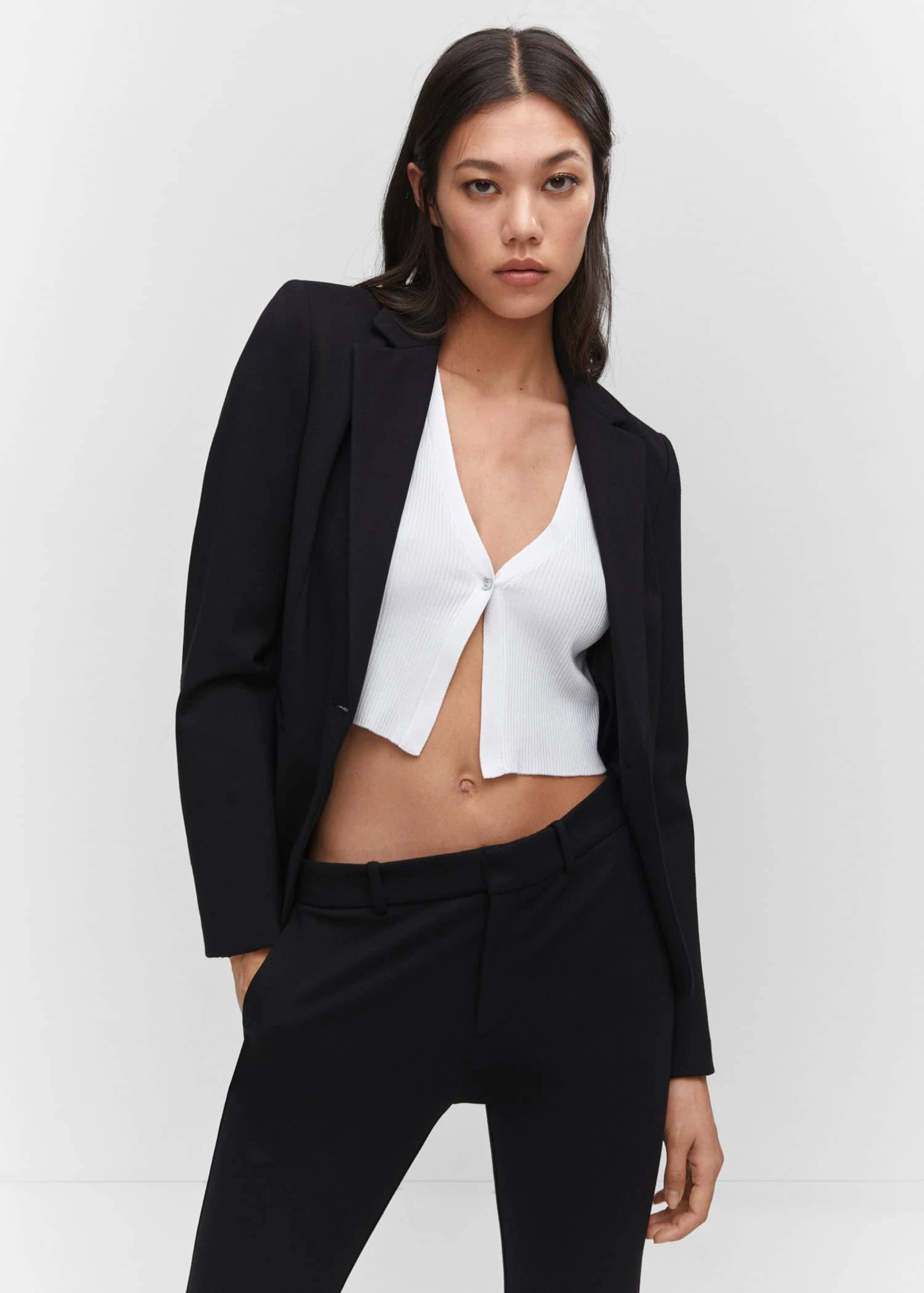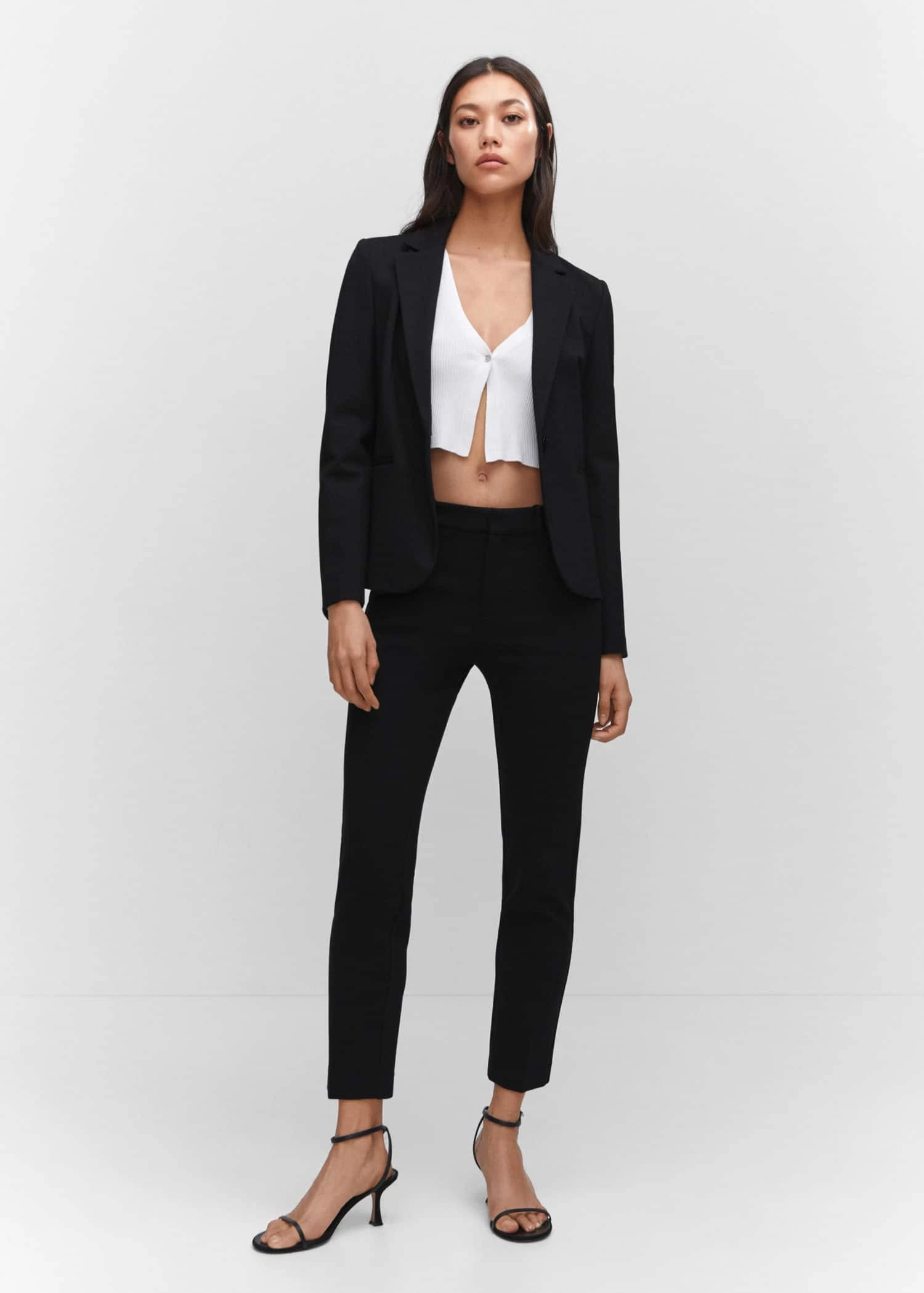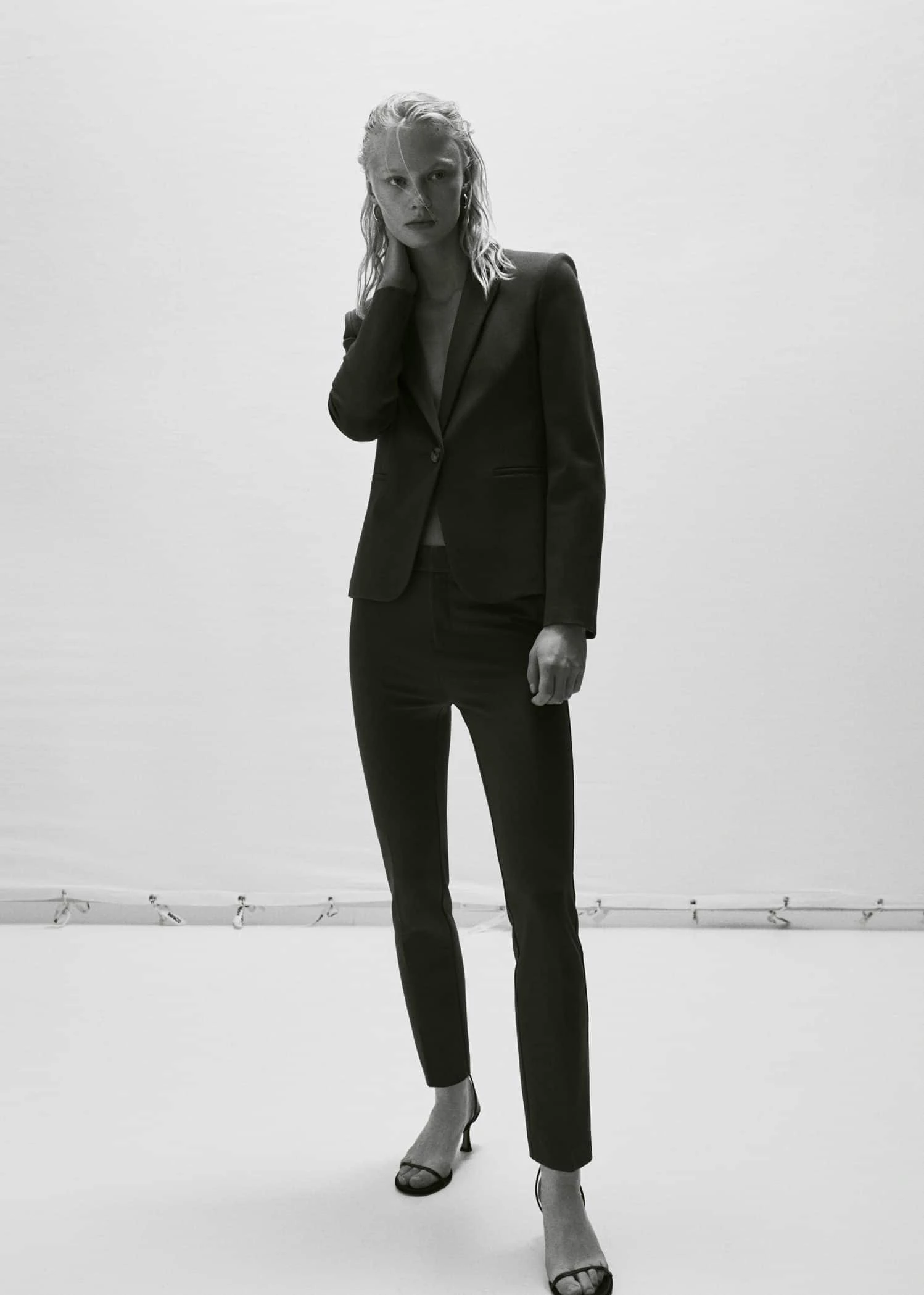 tissu en maille point de rome, coupe standard, droit, taille normale, passants pour la ceinture, deux poches laterales, deux poches passepoilees a l’arriere, total lookComposition: 67% viscose,29% polyamide,4% elasthanne. Doublure: 100% polyester. Lisiere: 100% polyester