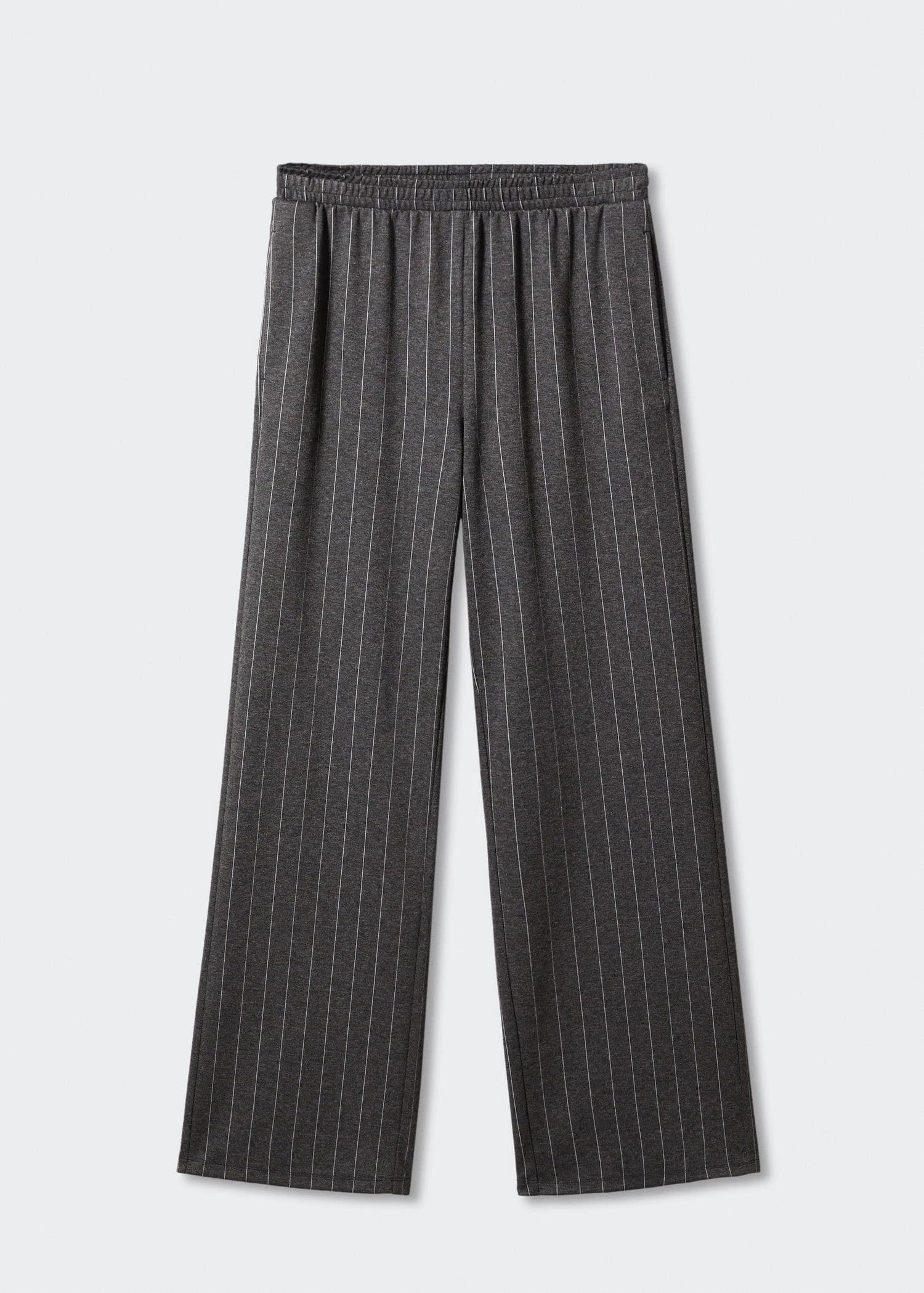 tissu en maille, fines rayures, coupe longue, droit, taille elastique, deux poches lateralesComposition: 77% polyester,21% viscose,2% elasthanne. Lisiere: 100% viscose