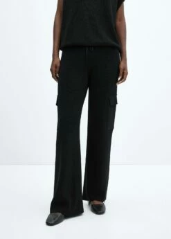 tissu en maille fine, design cargo, coupe longue, taille haute, deux poches cargo, taille elastique avec fermeture a nœudComposition: 50% polyamide,50% viscose