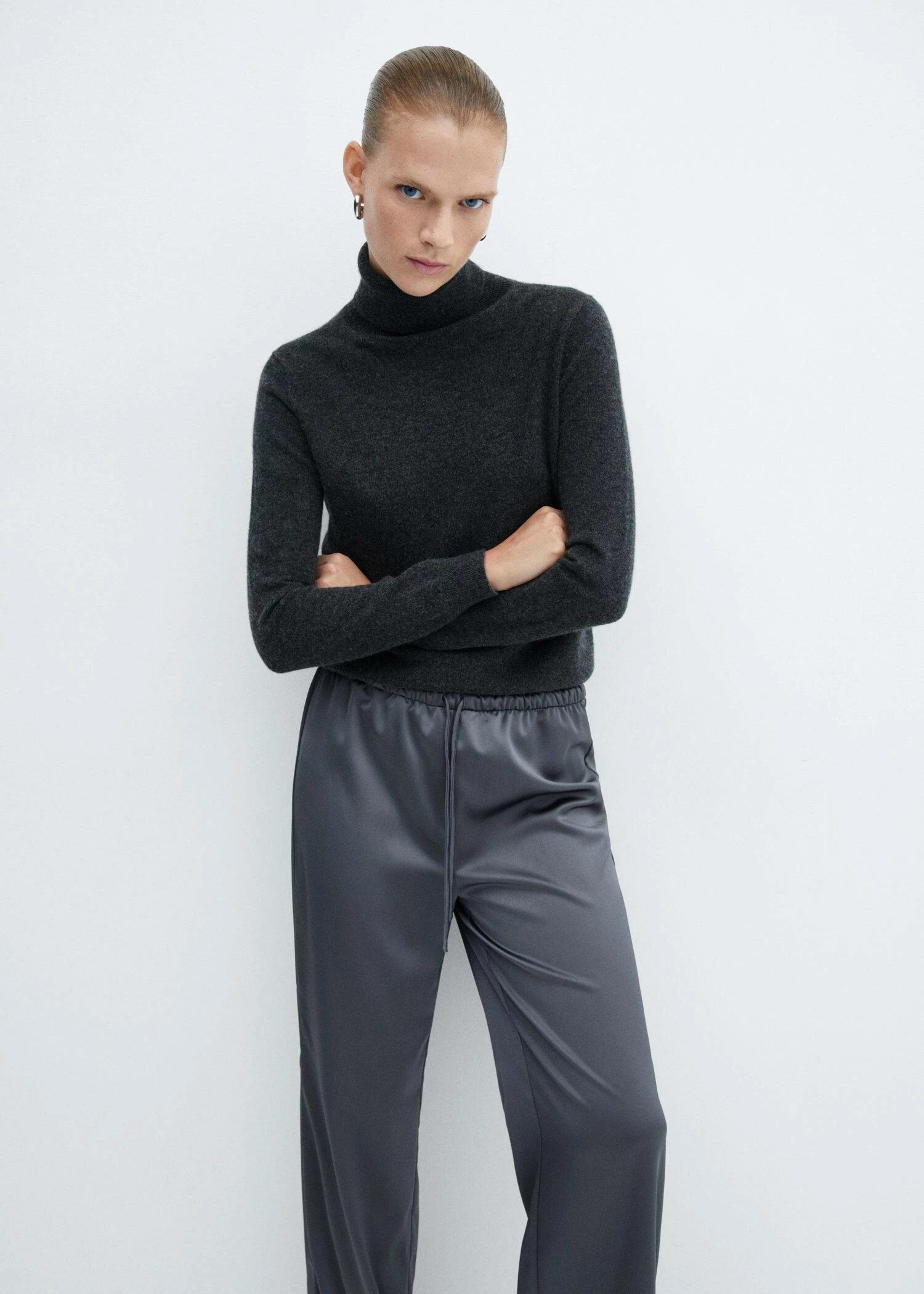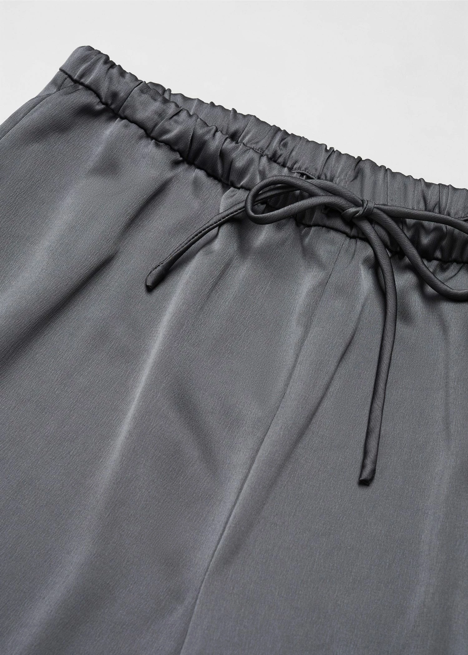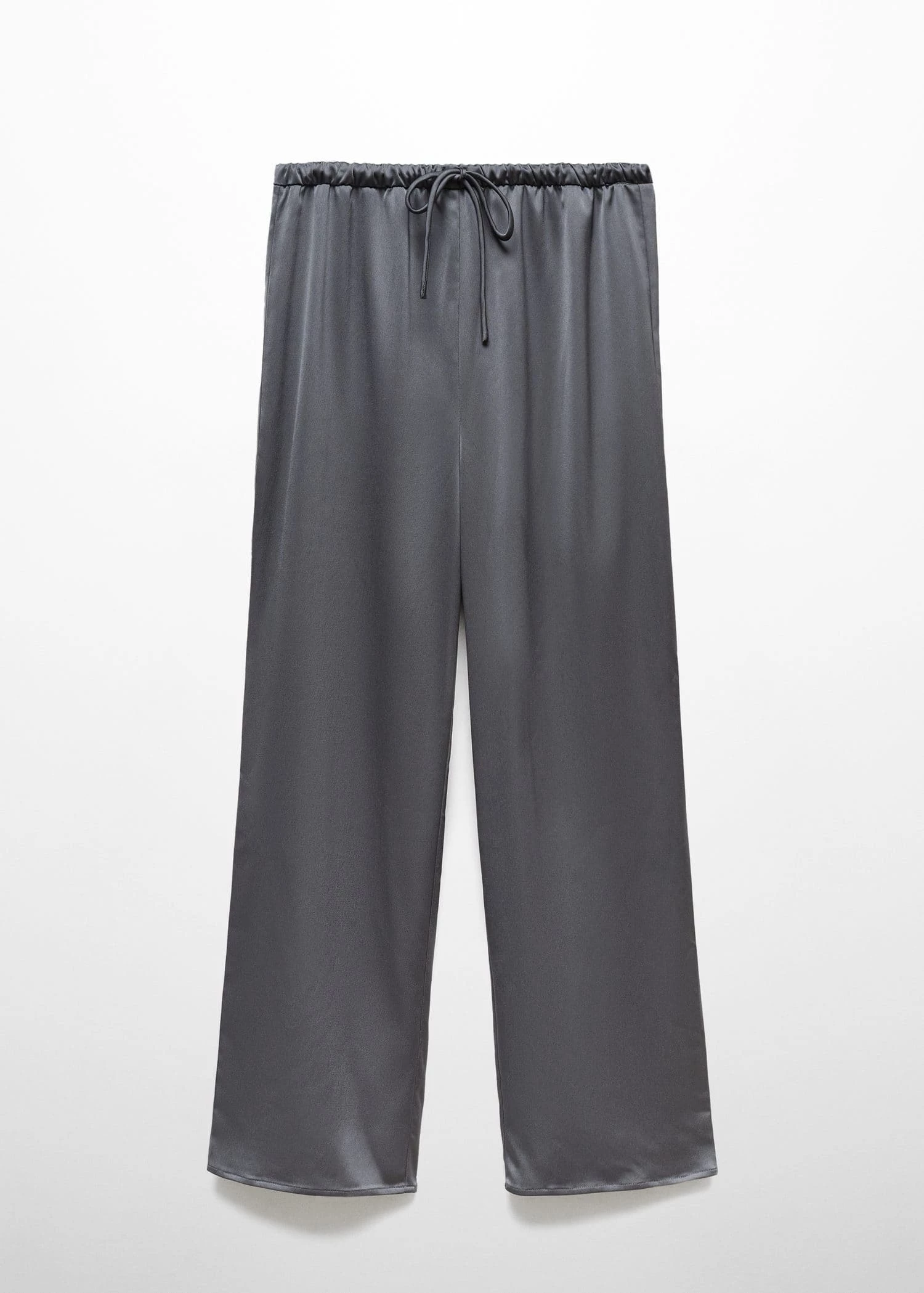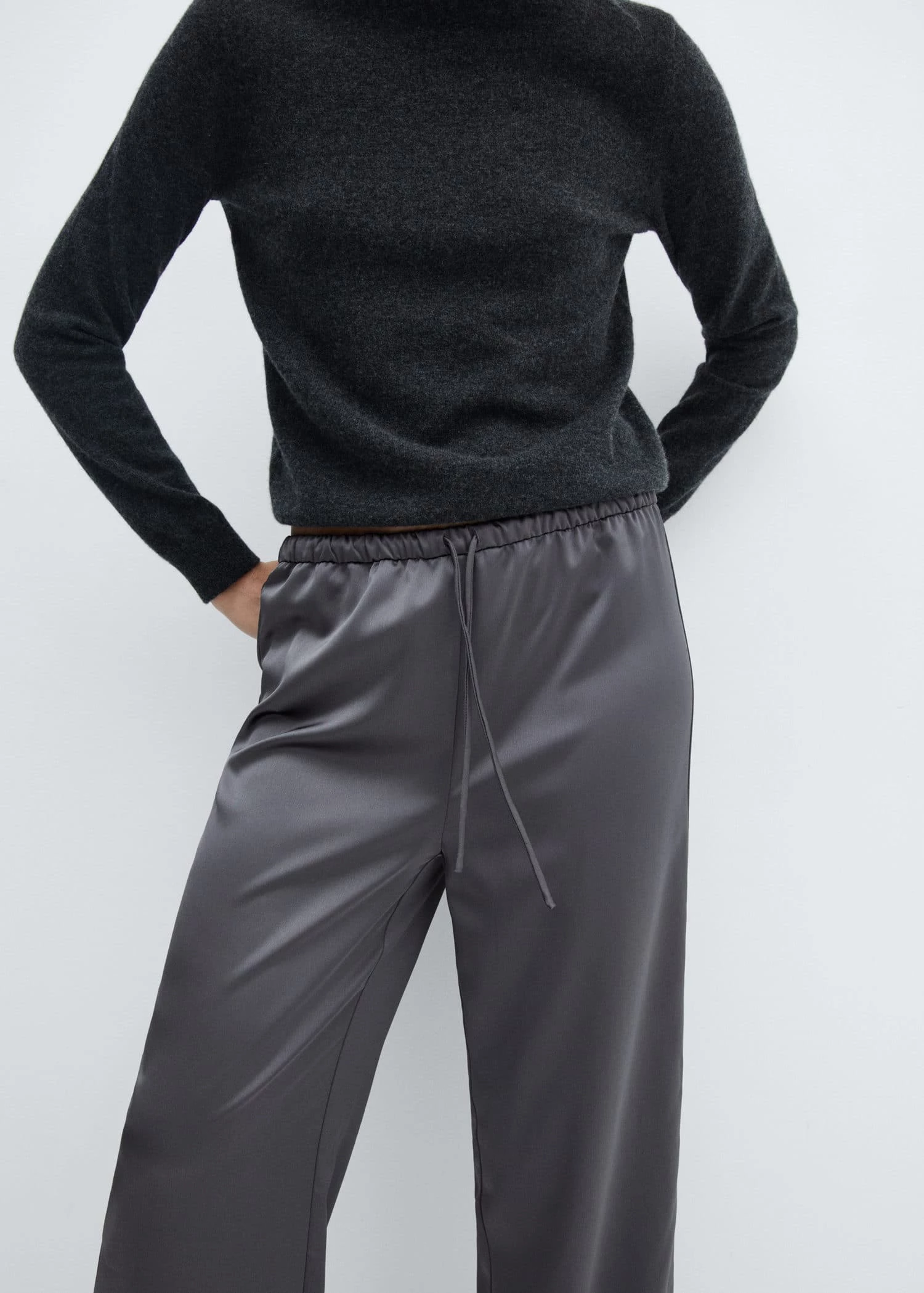 tissu fluide, taille normale, coupe longue, tige large, taille elastique avec fermeture a nœud, effet satineComposition: 98% polyester,2% elasthanne