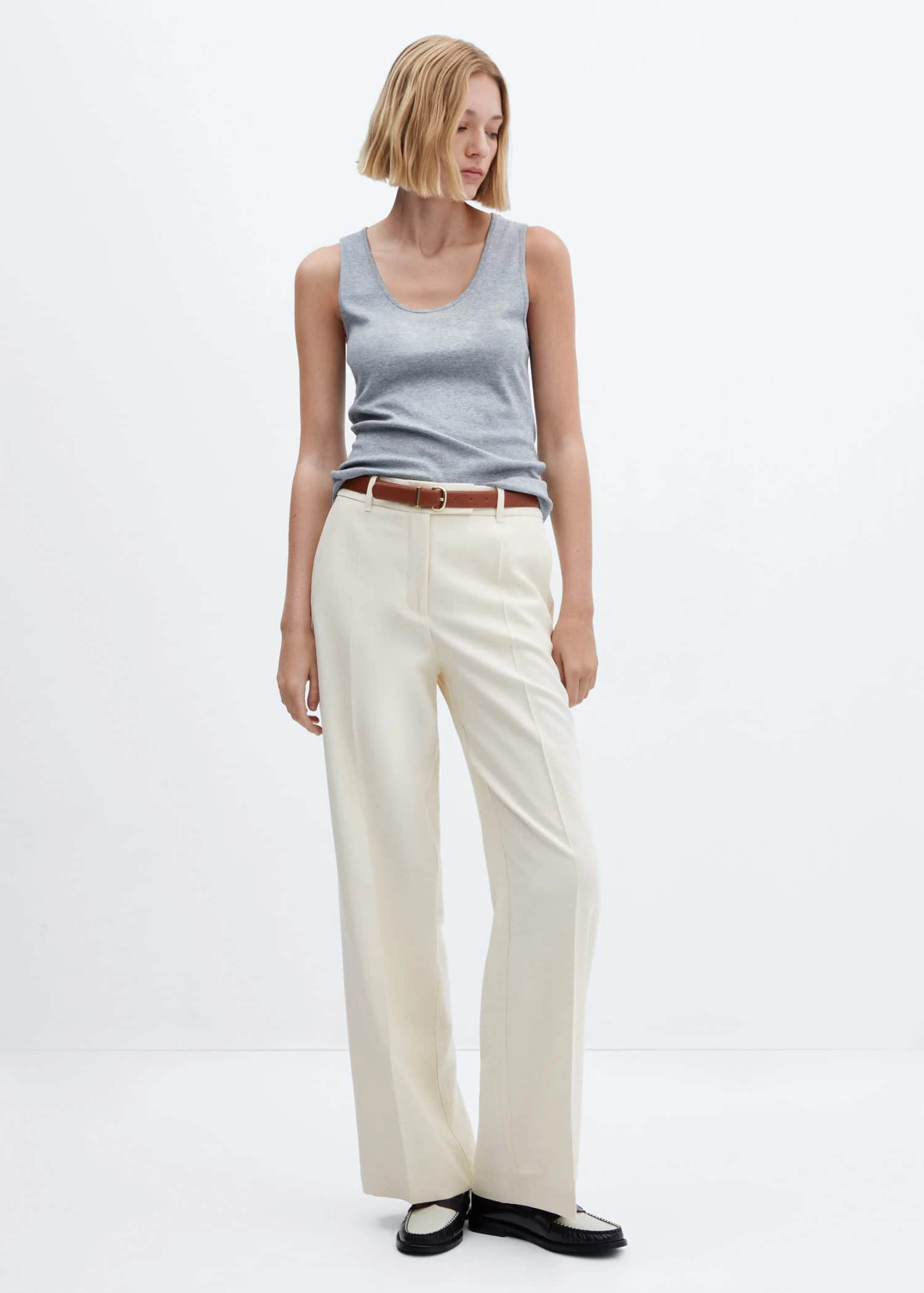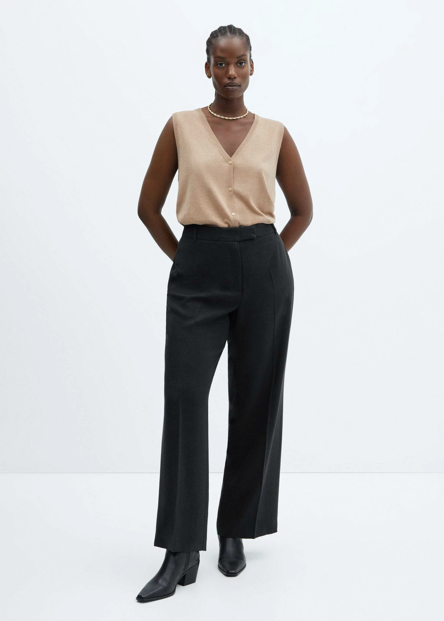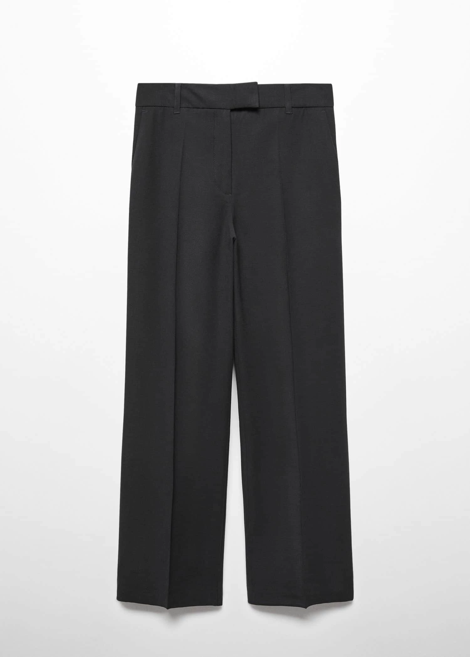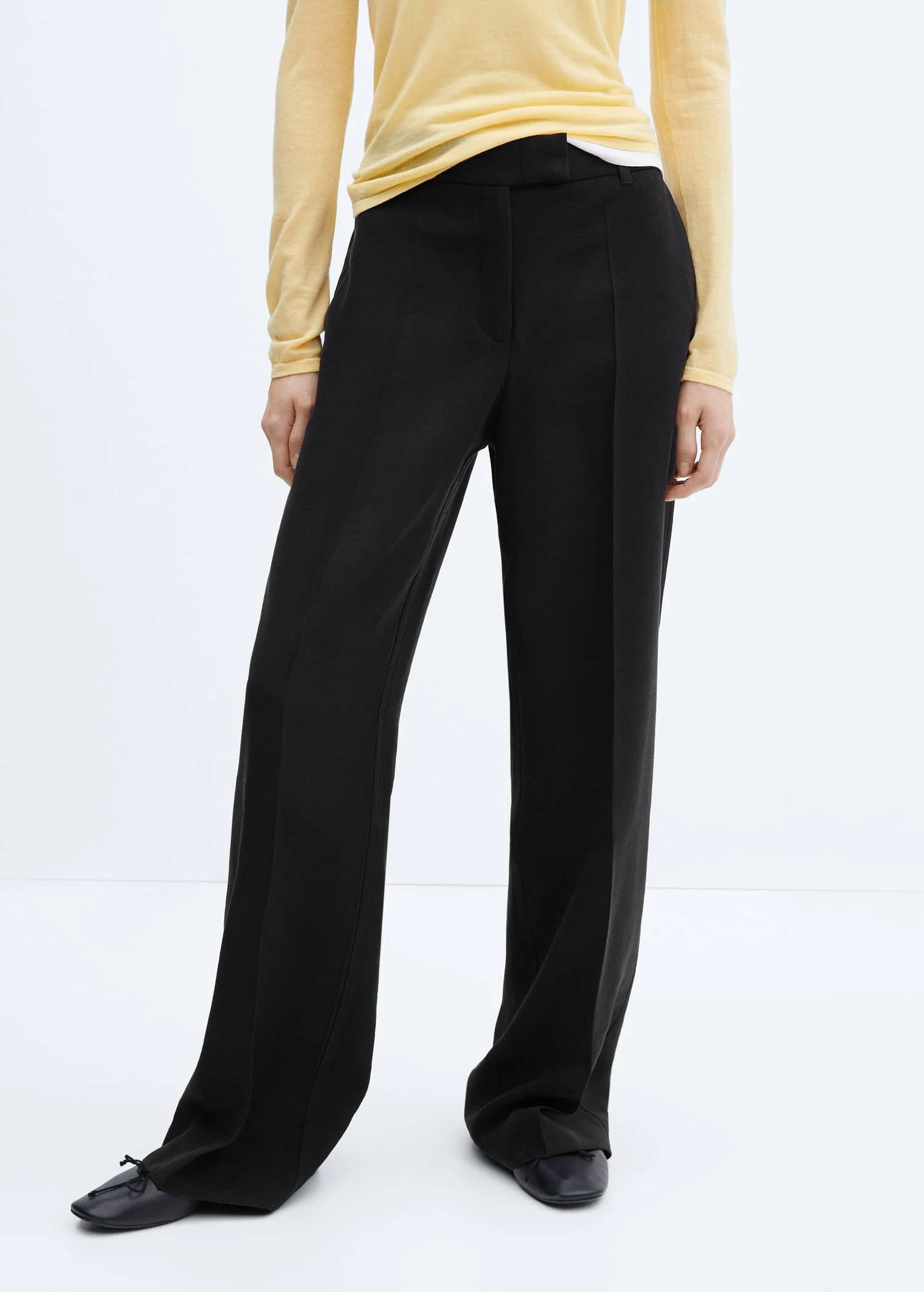 tissu fluide, tissu de coton melange, style costume, coupe longue, coupe wideleg, taille basse, passants pour la ceinture, fermeture eclair avec crochet et bouton dissimules, deux poches laterales, deux poches a rabat a l’arriere, detail plisse, disponible plusComposition: 92% viscose,8% polyester. Doublure poches: 80% polyester,20% coton