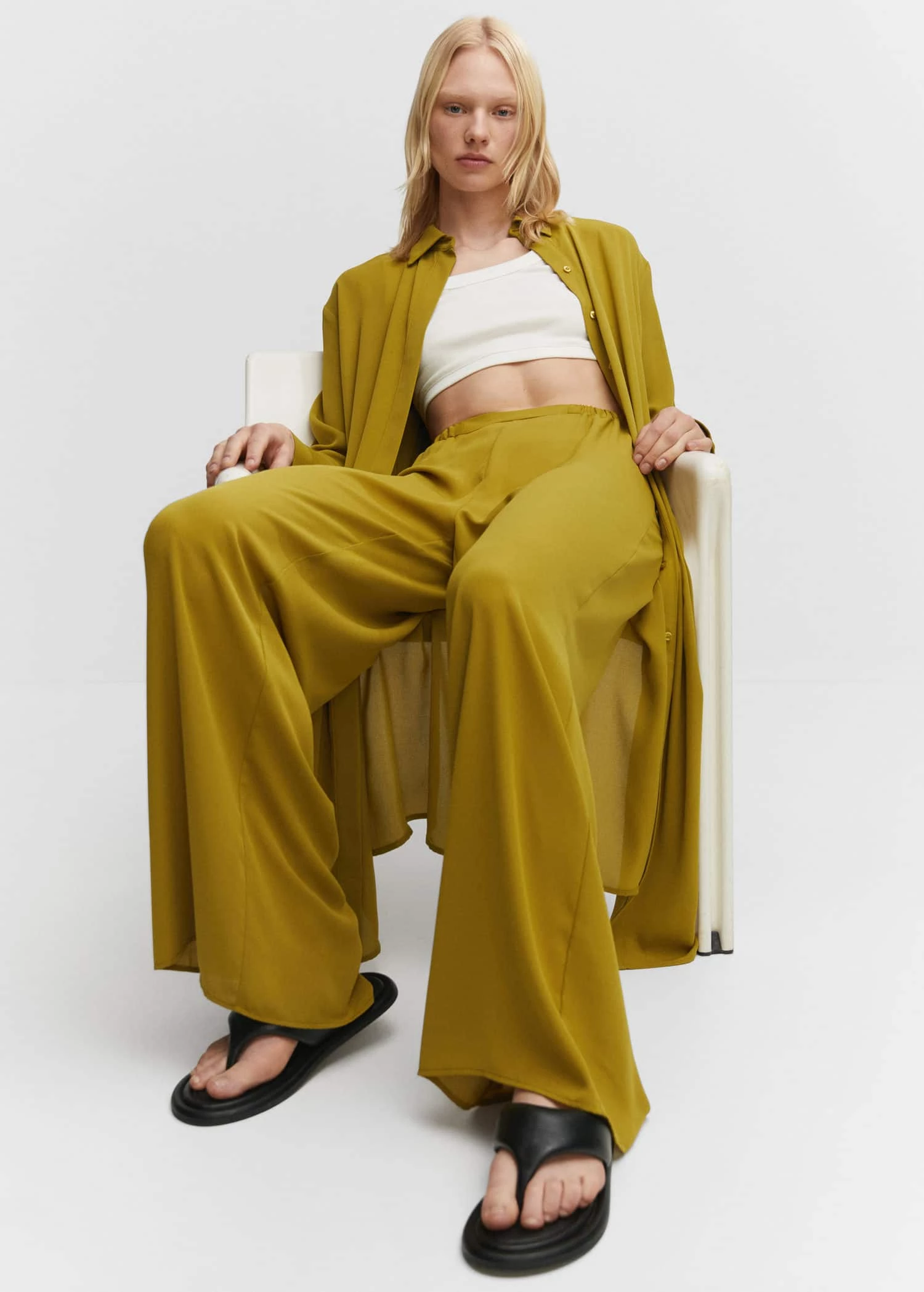 tissu fluide, coupe wideleg, taille haute, taille elastiquee, sans fermeture, total look, collection fetes et ceremoniesComposition: 60% polyester,40% polyester recyclé