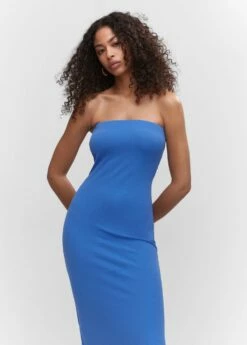 tissu fluide, ajuste, coupe midi, bustier, sans manches, fermeture eclair laterale, collection fetes et ceremoniesComposition: 96% polyester,4% elasthanne
