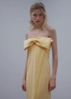 confectionnee dans un tissu satine haut de gamme, avec un design croise, un col a maxi-nœud et des emmanchures americaines, cette piece est un choix sophistique et original pour vos evenements de la saison. disponible en deux couleurs tendance : noir et jaune pastel, tissu satine, tissu fluide, coupe cintree, coupe longue, emmanchures americaines, maxinœud, encolure au dos, lien a nouer autour du cou, fermeture eclair a l’arriere, fabrique au maroc, collection fetes et ceremonies, capsule : une collection de vetements en edition limitee, fabriques avec les meilleurs tissus et le plus grand soin en matiere de patrons, afin d’obtenir les meilleures finitions. cette collection exclusive est concue pour les evenements et les occasions les plus chics.Composition: 71% acetate,29% viscose. Jupe: 71% acetate,29% viscose. Nœud: 71% acetate,29% viscose. Lisiere: 71% acetate,29% viscose