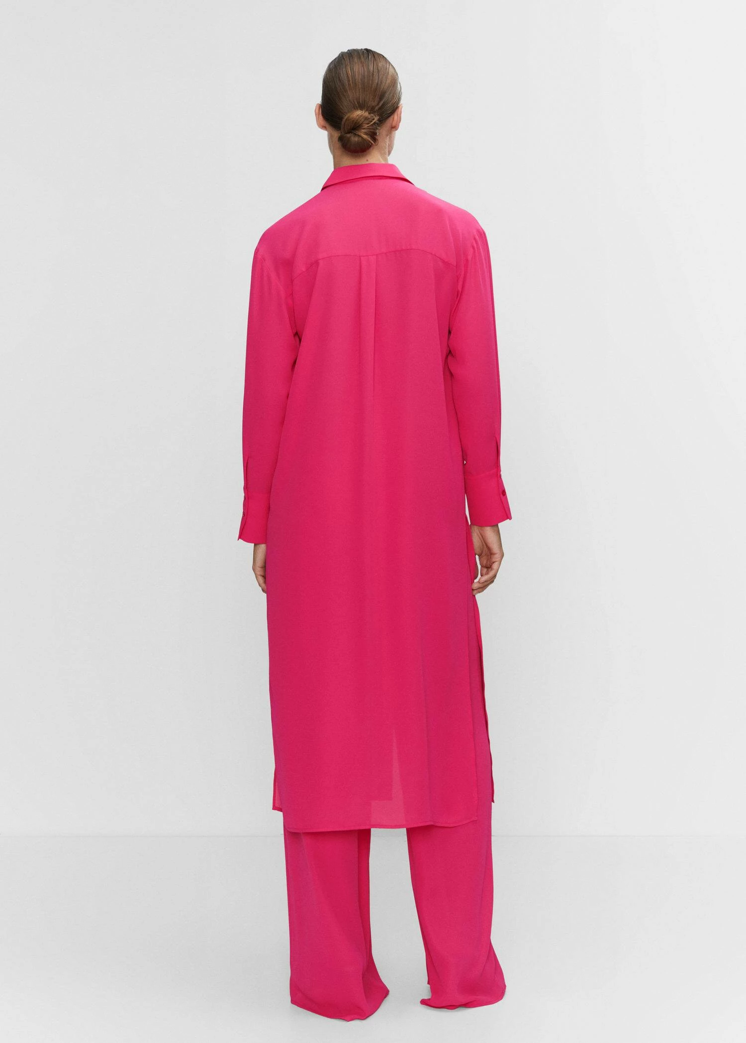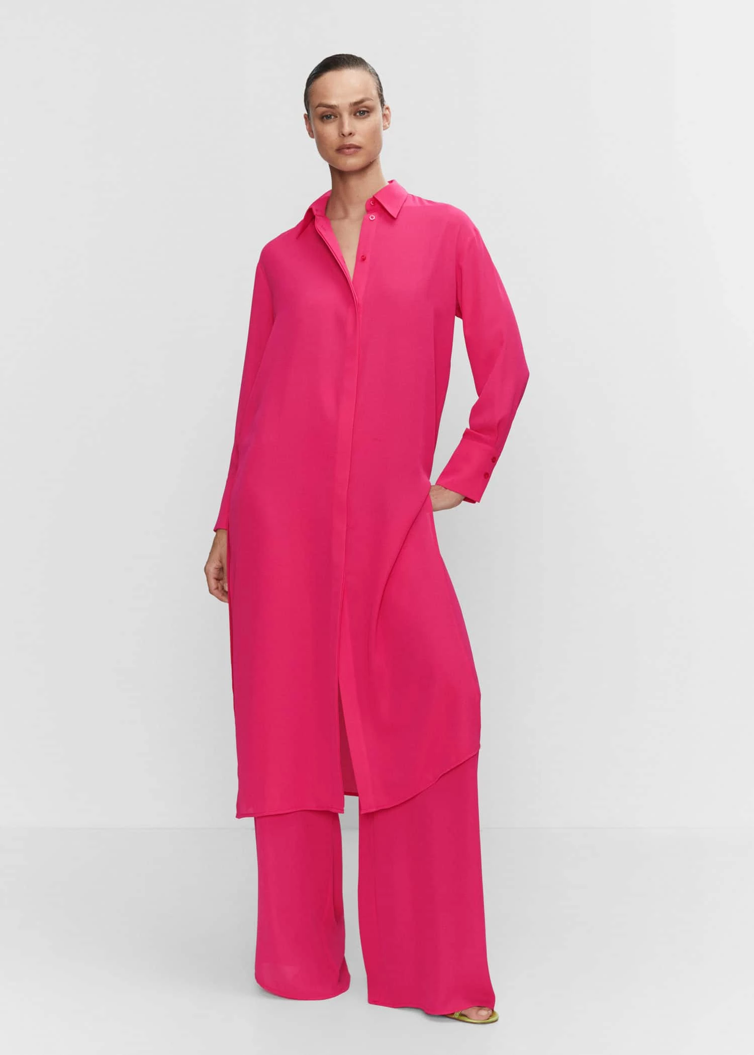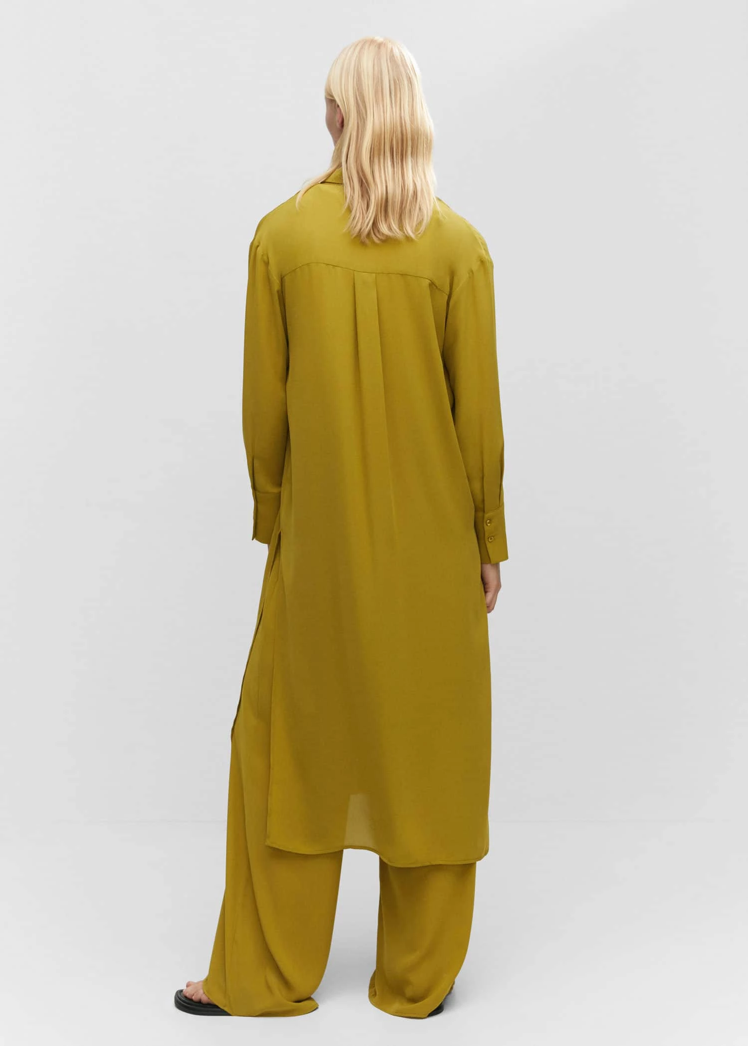style chemisier, coupe droite, coupe longue, col chemise, manches longues avec poignets boutonnes, fermeture boutonnee sur le devant, bas avec fentes laterales, total lookComposition: 60% polyester,40% polyester recyclé