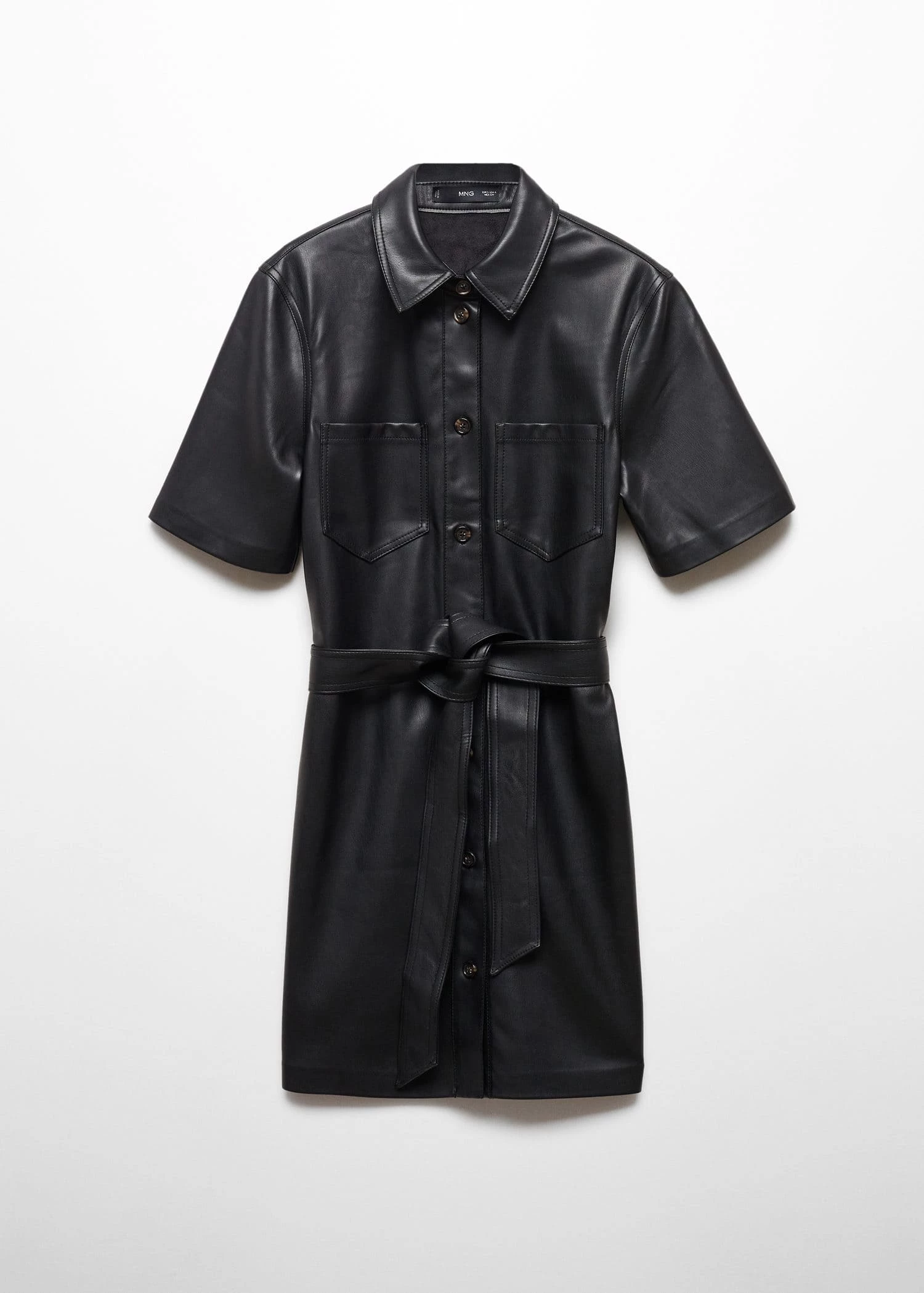 tissu fluide, similicuir, coupe courte, coupe droite, col chemise, manches courtes, deux poches plaquees sur la poitrine, fermeture a boutons sur le devant, ceinture amovibleComposition: 100% polyester. Revêtement: 100% polyurethane