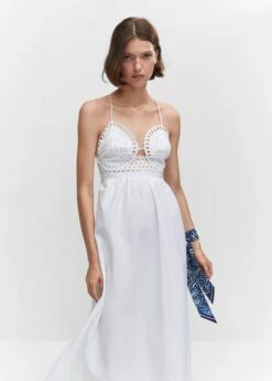 tissu 100 % coton, evase, coupe longue, col echancre, bretelles fines, encolure au dos, detail brode, detail ajoure, doublureComposition: 100% coton. Doublure: 100% coton. Broderie: 100% polyester