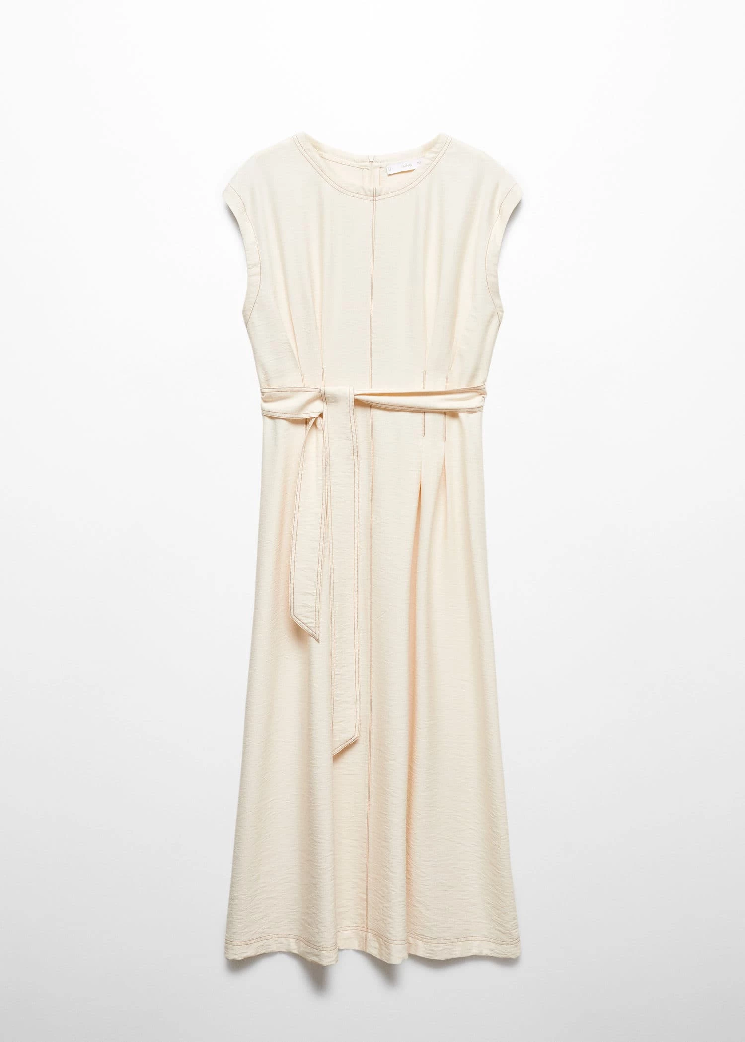 tissu fluide, coupe midi, evase, col rond, manches courtes, fermeture eclair a l’arriere, ceinture a nouer a la taille, passants pour la ceinture, coutures decorativesComposition: 86% viscose,14% polyamide