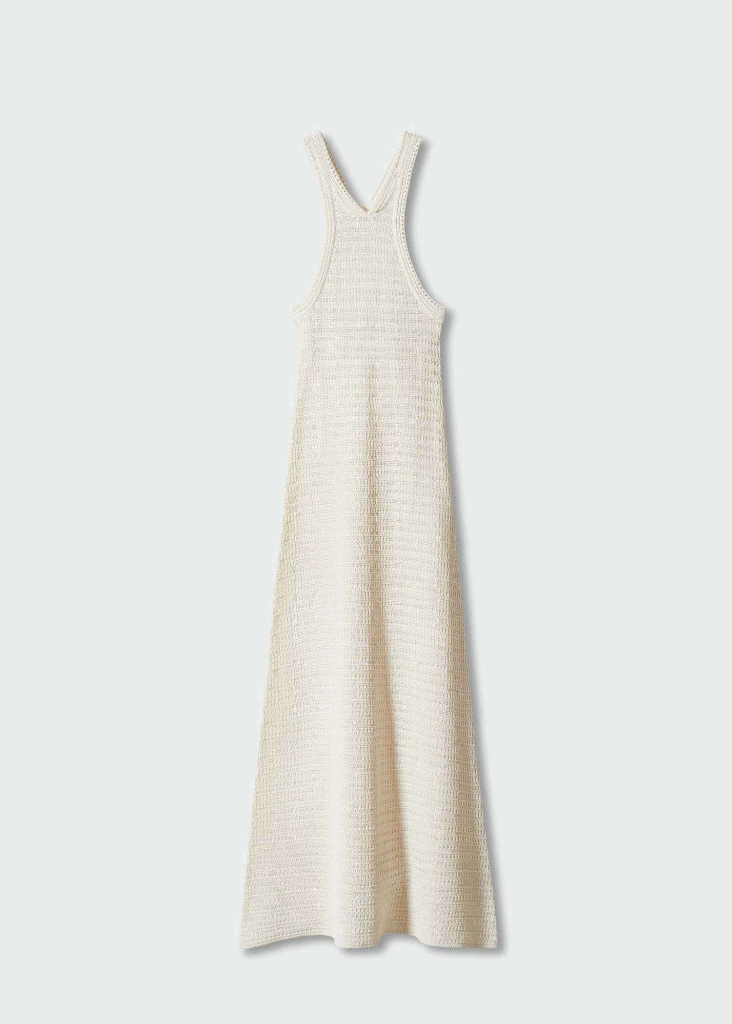 tissu de coton melange, tissu en crochet, coupe cintree, coupe longue, emmanchures americaines, bretelles larges, encolure au dos, bouton de fermeture a l’arriereComposition: 70% coton,30% polyamide