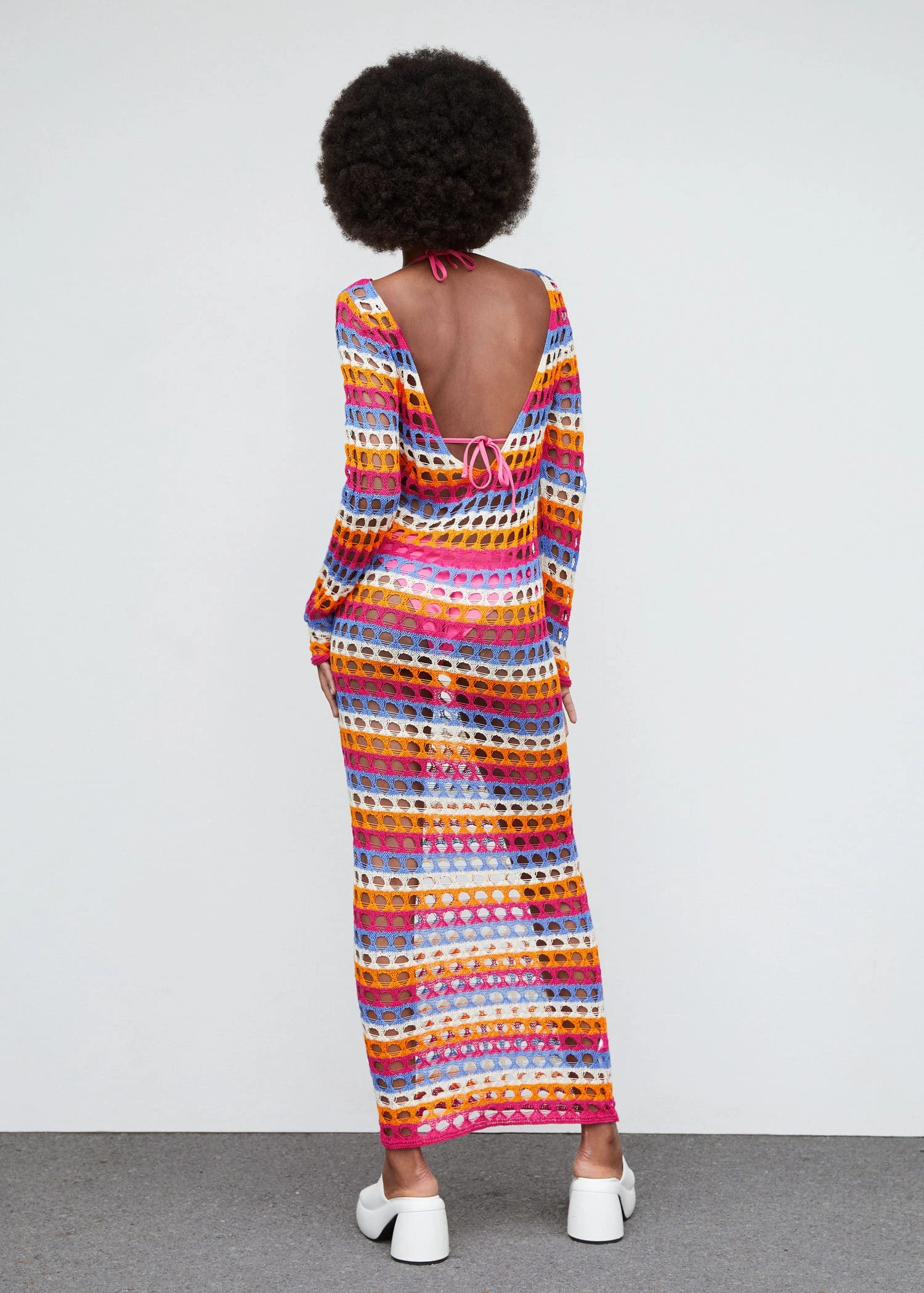 tissu de coton melange, tissu en crochet, style oversize, coupe longue, multicolore, col bateau, manches longues, dos nu, sans fermeture, saison des festivalsComposition: 87% coton,13% polyester