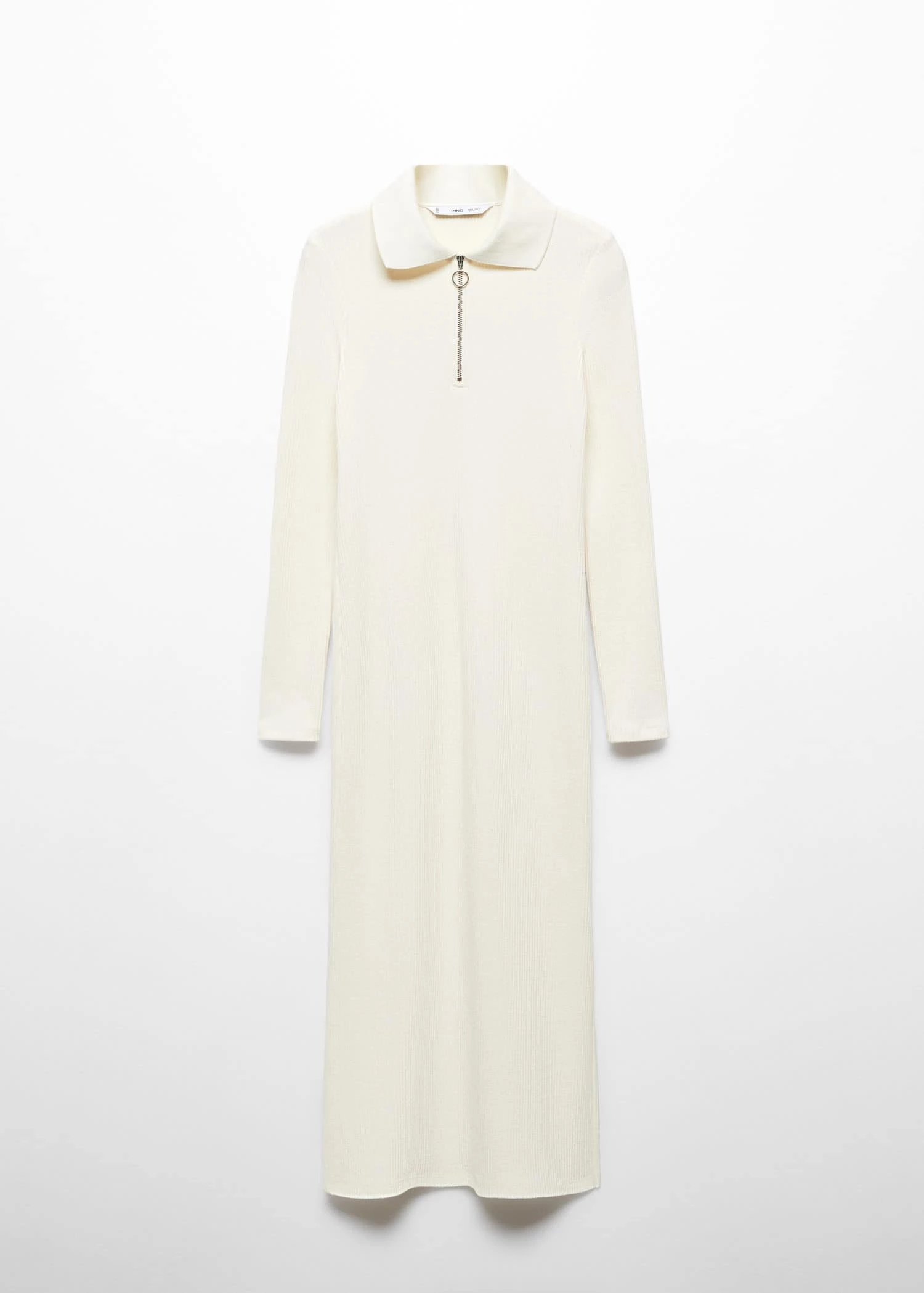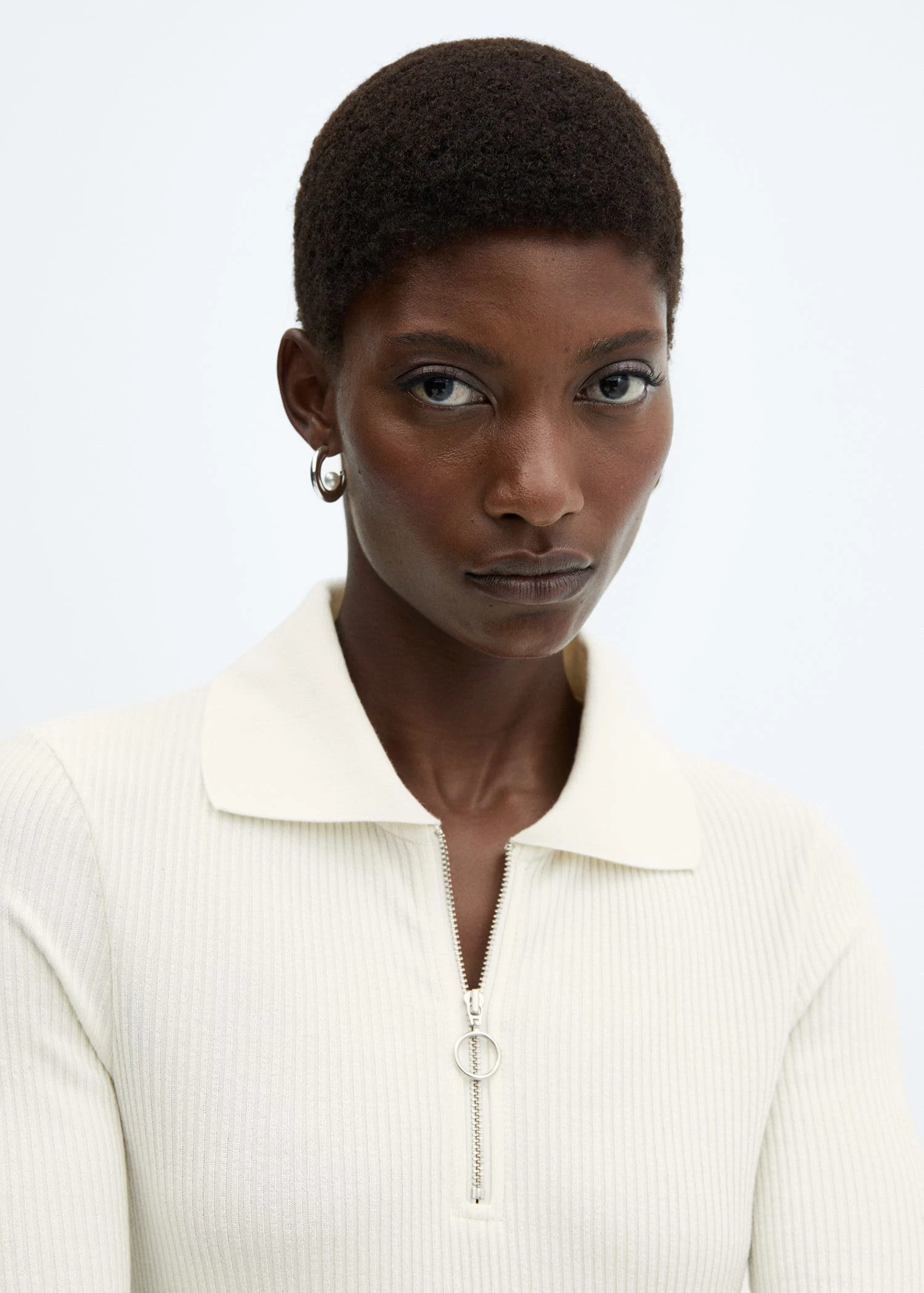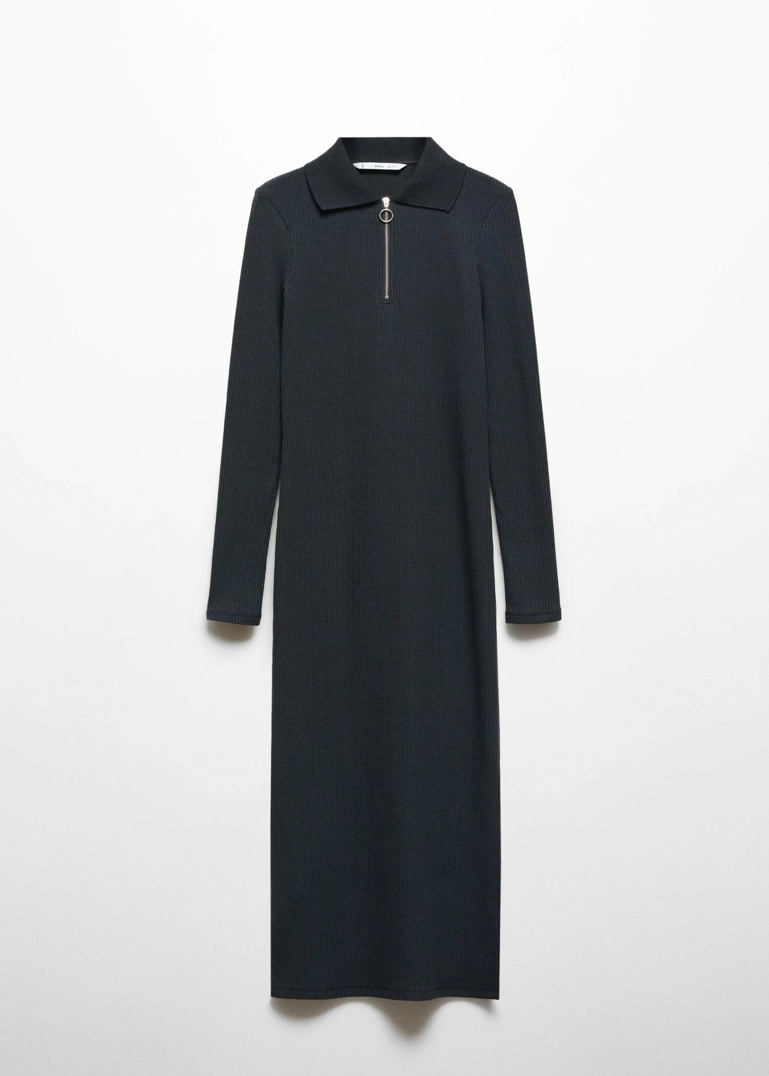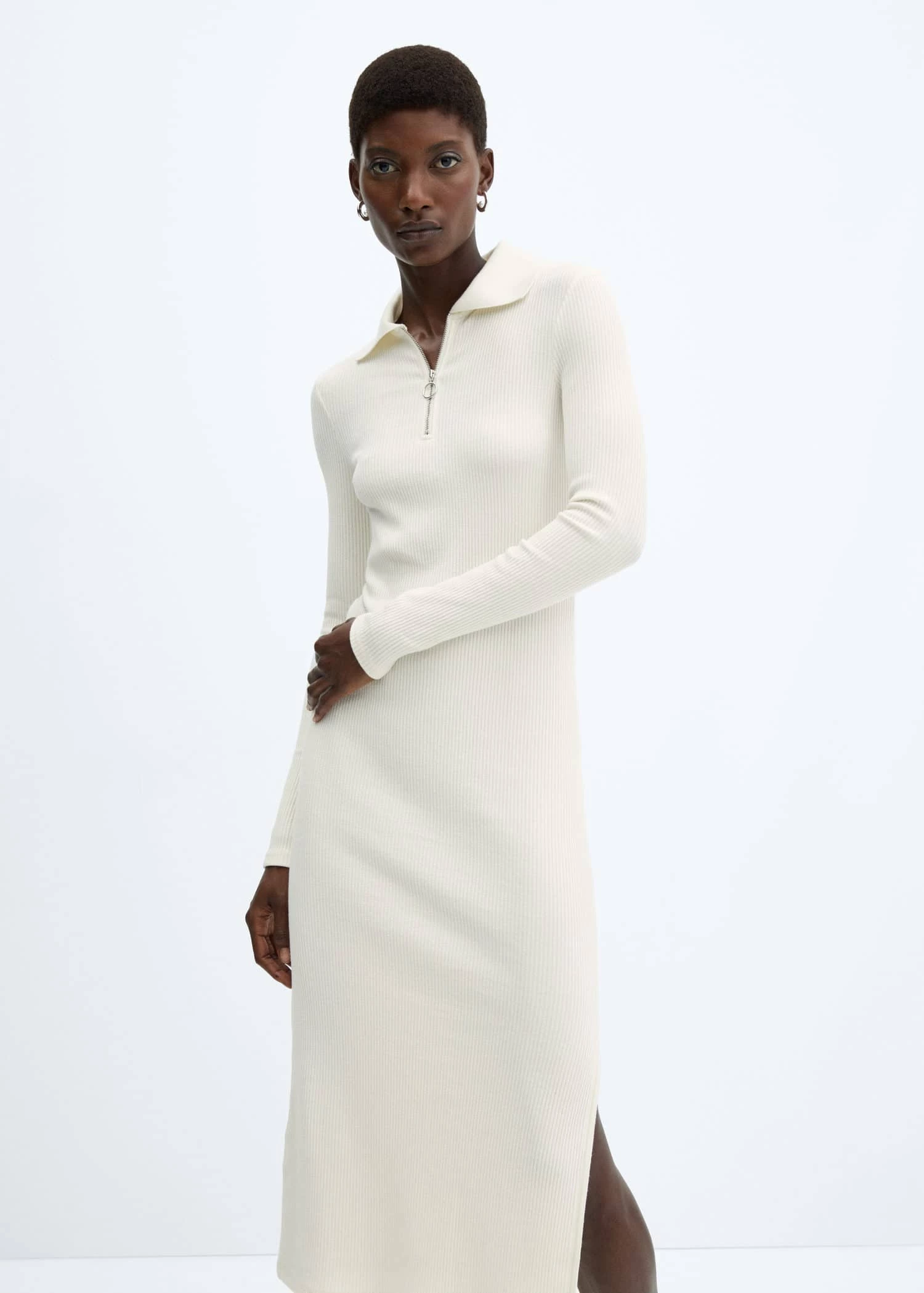 tissu en maille fine, coupe midi, ajuste, cotele, col polo a fermeture eclair, manches longues, sans fermeture, fente lateraleComposition: 52% polyester,44% coton,4% elasthanne. Col: 100% coton. Lisiere: 97% viscose,3% elasthanne