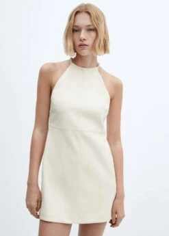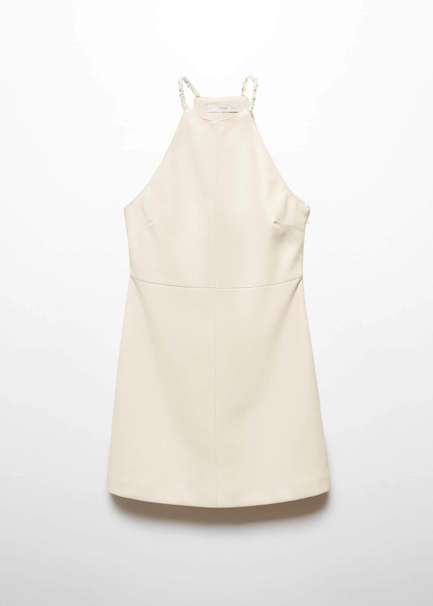 similicuir, structure lourde, coupe droite, coupe courte, emmanchures americaines, bretelles fines, sans manches, fermeture eclair laterale, doublureComposition: 100% polyester. Doublure: 100% polyester. Revêtement: 100% polyurethane