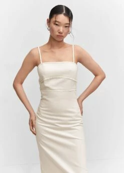 tissu en coton de style jean, tissu 100 % coton, tissu non extensible, ajuste, coupe midi, col droit, bretelles fines, fermeture eclair a l’arriere, detail d’ouverture au dos, coutures decorativesComposition: 100% coton