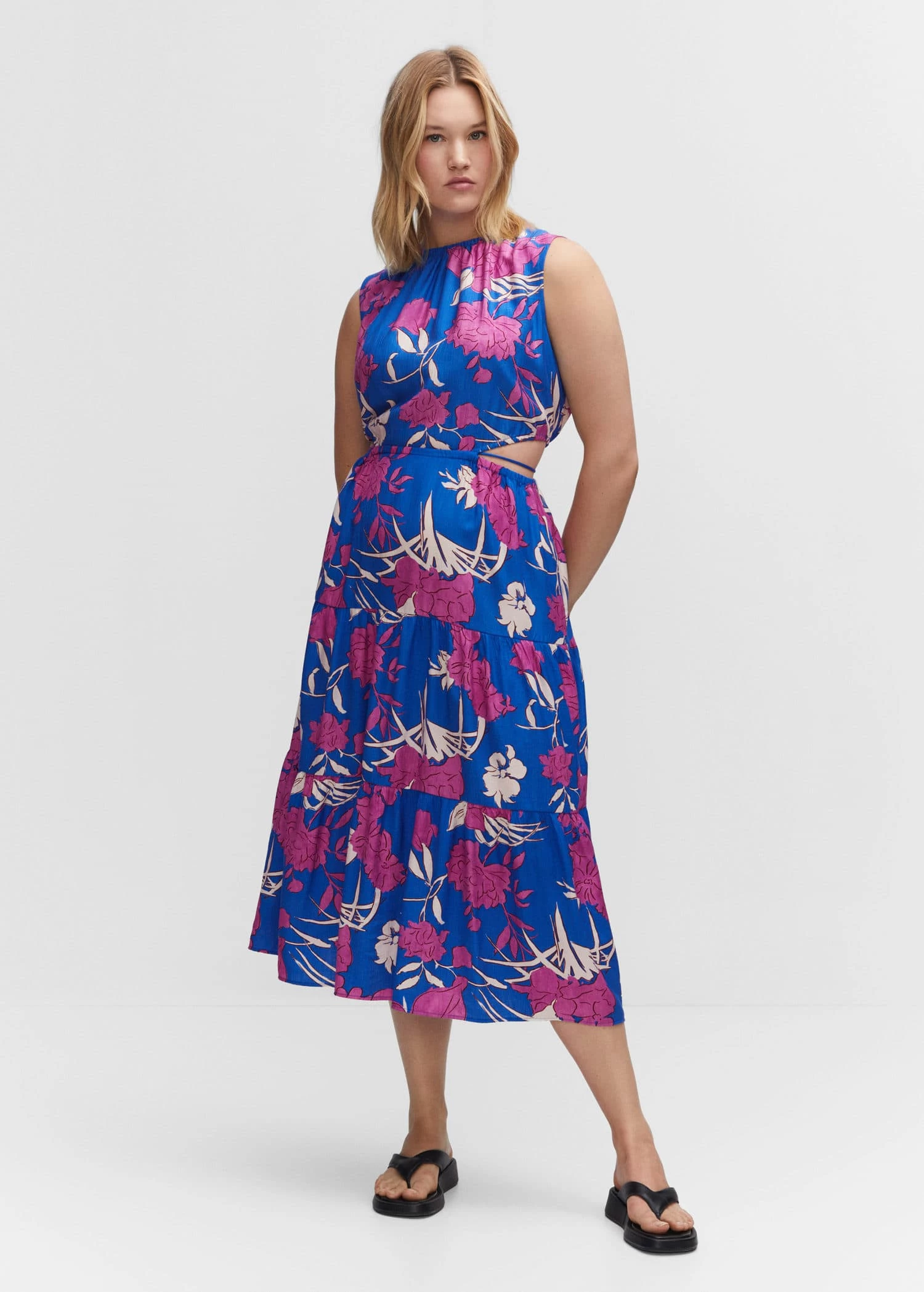 tissu fluide, tissu texture, evase, coupe midi, disponible en uni ou imprime, col rond, sans manches, col boutonne, bas evase, fentes laterales, disponible plusComposition: 85% viscose,15% polyamide