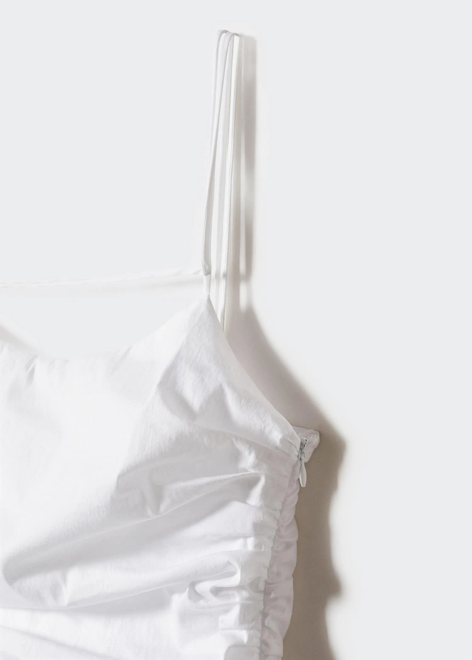 tissu en coton, ajuste, coupe courte, col echancre, bretelles fines doubles, fermeture eclair laterale, fronces laterales , saison des festivalsComposition: 82% coton,15% polyamide,3% lyocell. Doublure: 100% polyester