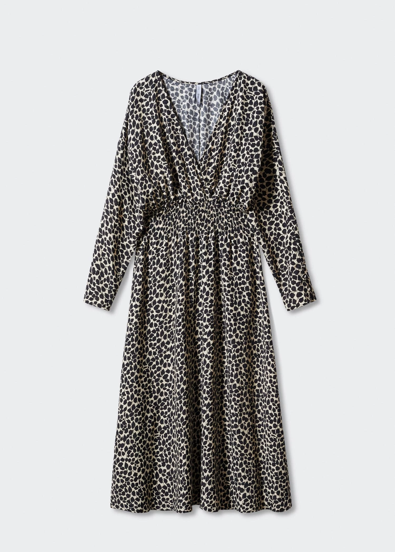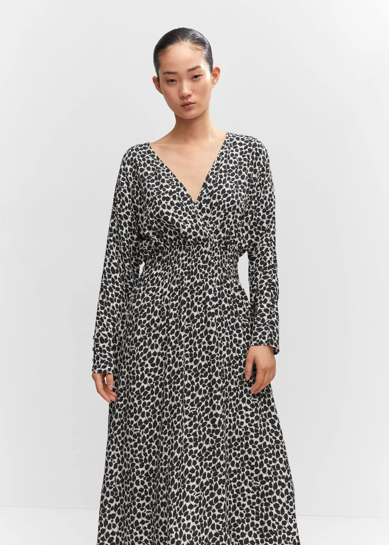 tissu fluide, croise, evase, coupe longue, imprime, col croise, manches longues, fronce elastique a la taille, sans fermetureComposition: 100% viscose