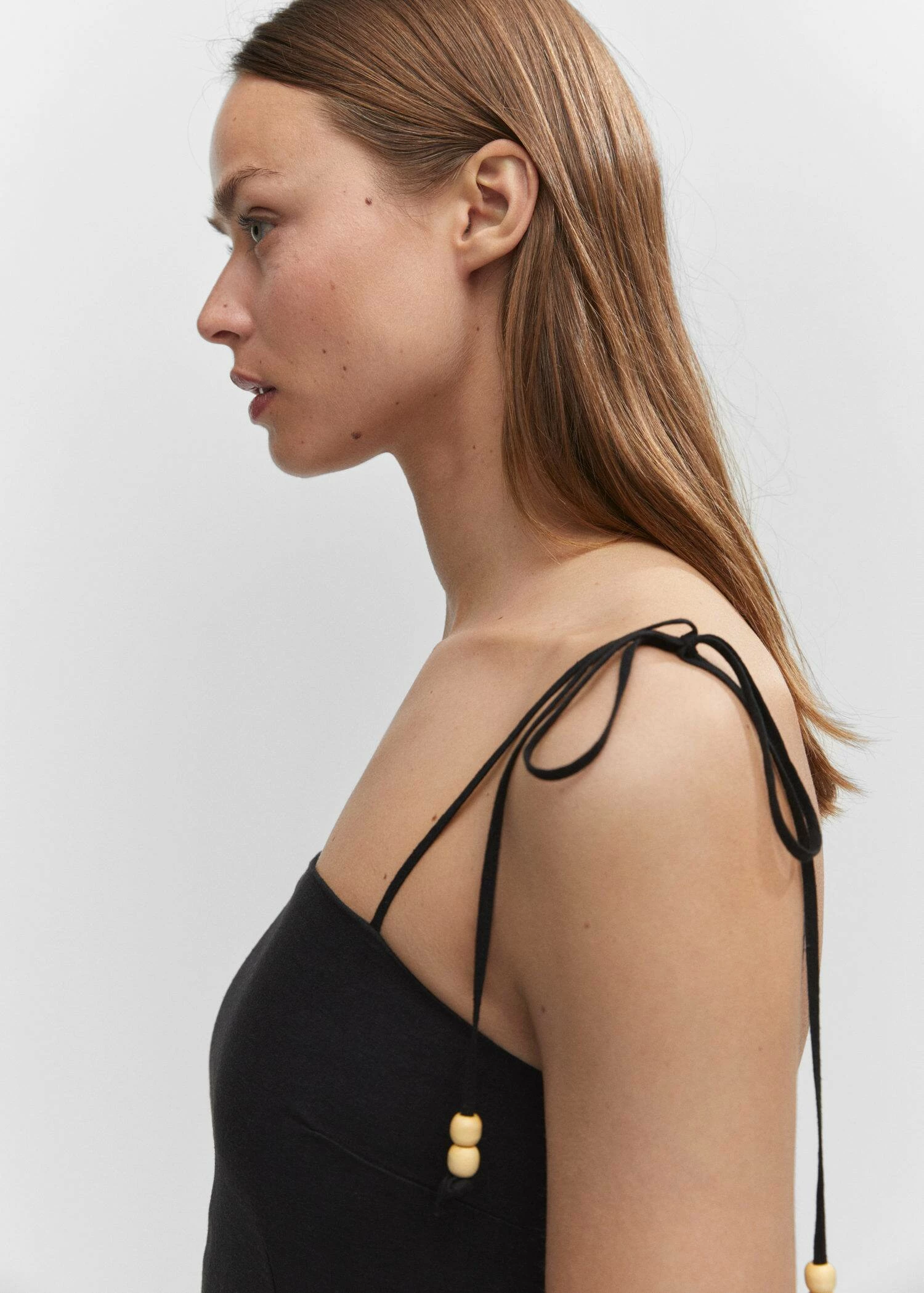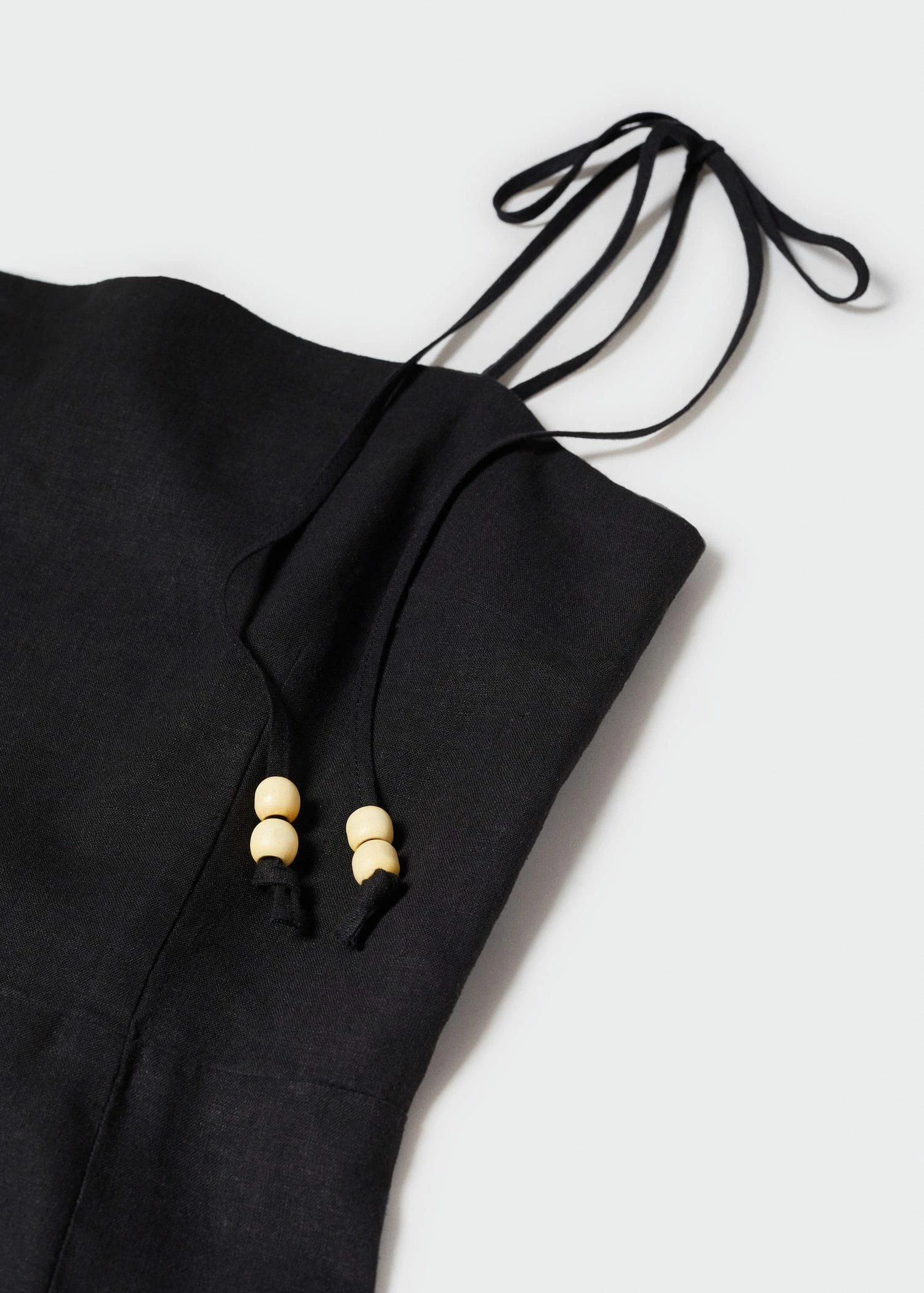 tissu en lin melange, droit, coupe courte, col droit, fines bretelles avec fermeture a nœud, fermeture eclair laterale, detail perle, saison des festivalsComposition: 55% lin,45% viscose. Doublure: 100% coton