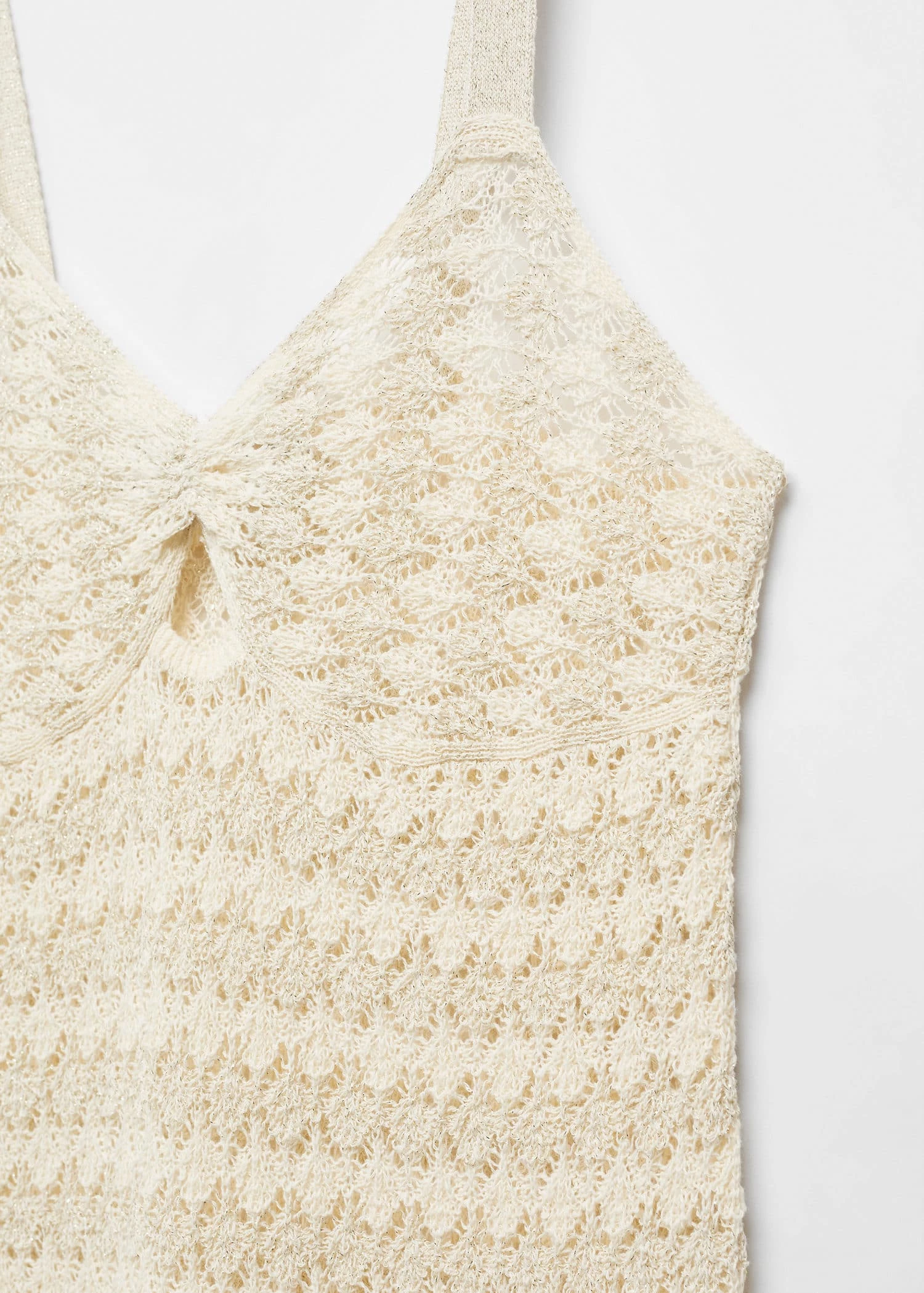 tissu en crochet, ajuste, coupe longue, col en v, bretelles fines, ouverture sur le devant, sans fermeture, style bohoComposition: 50% coton,46% polyester,4% polyester avec revêtement de cuivre