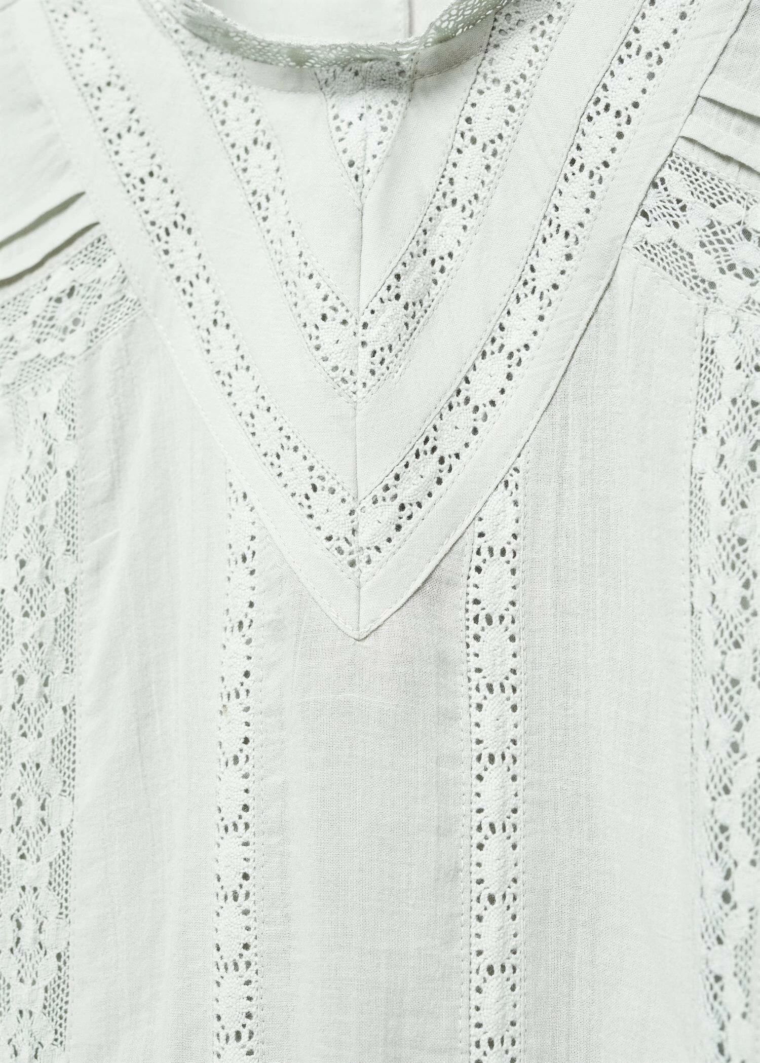 tissu 100 % coton, coupe longue, droit, col rond, manches longues avec poignets elastiques, bouton de fermeture a l’arriere, bords denteles, details en dentelle, bas evase, style boho, style romantiqueComposition: 100% coton. Doublure: 100% coton. Dentelle: 100% coton