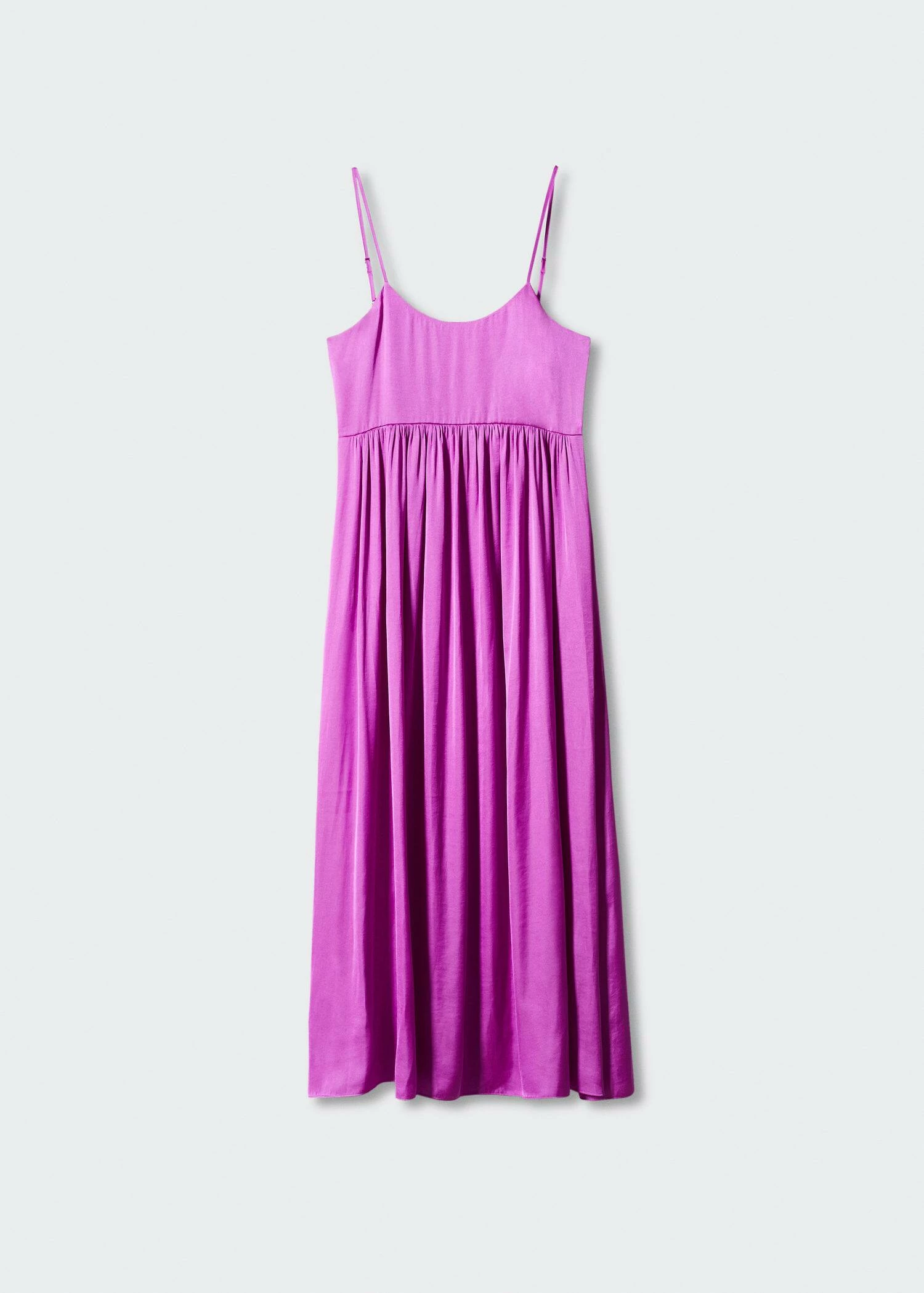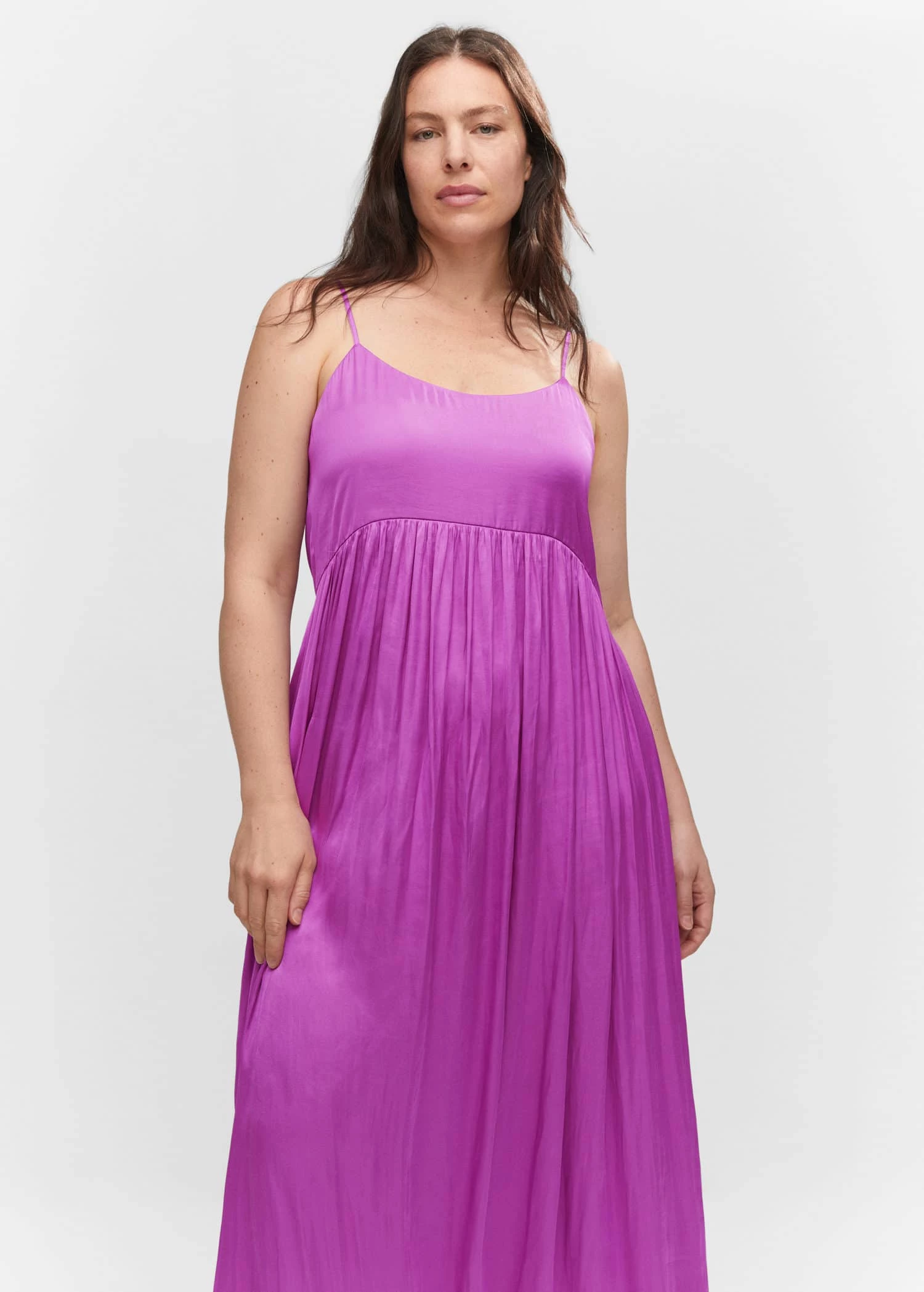 tissu satine, tissu fluide, coupe droite, coupe longue, col rond, bretelles fines ajustables, ouverture au dos, lien a nouer au dos, disponible plus, collection fetes et ceremoniesComposition: 100% polyester. Doublure: 100% polyester