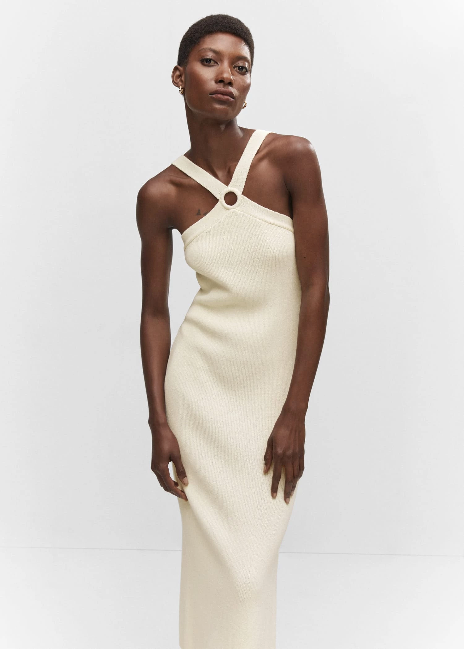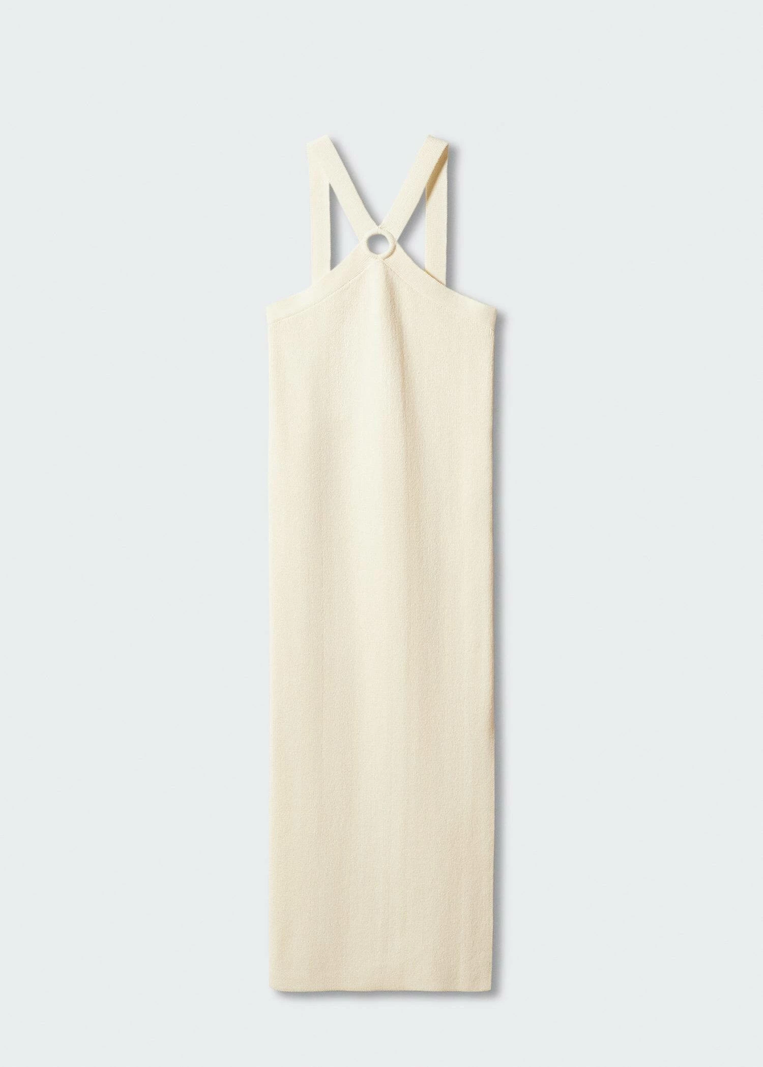 tissu en maille, ajuste, coupe midi, emmanchures americaines, bretelles larges, sans manches, sans fermeture, detail anneau, fente lateraleComposition: 68% coton,32% polyamide