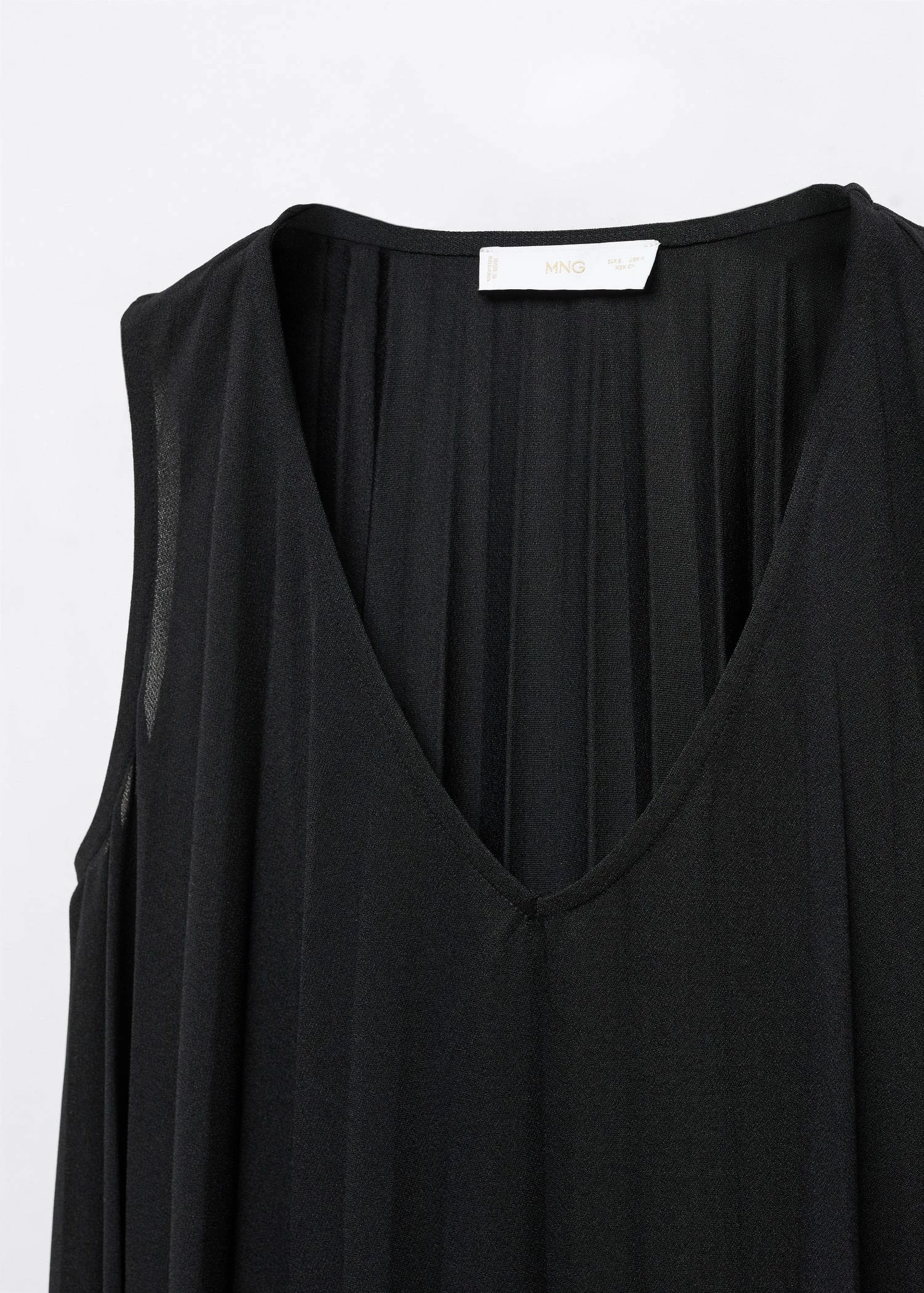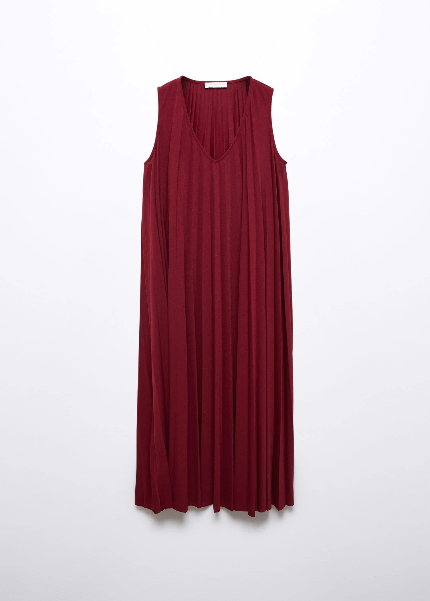 tissu plisse, tissu fluide, droit, coupe midi, col en v, bretelles larges, sans manches, sans fermeture, collection fetes et ceremoniesComposition: 60% polyester,40% polyester recyclé