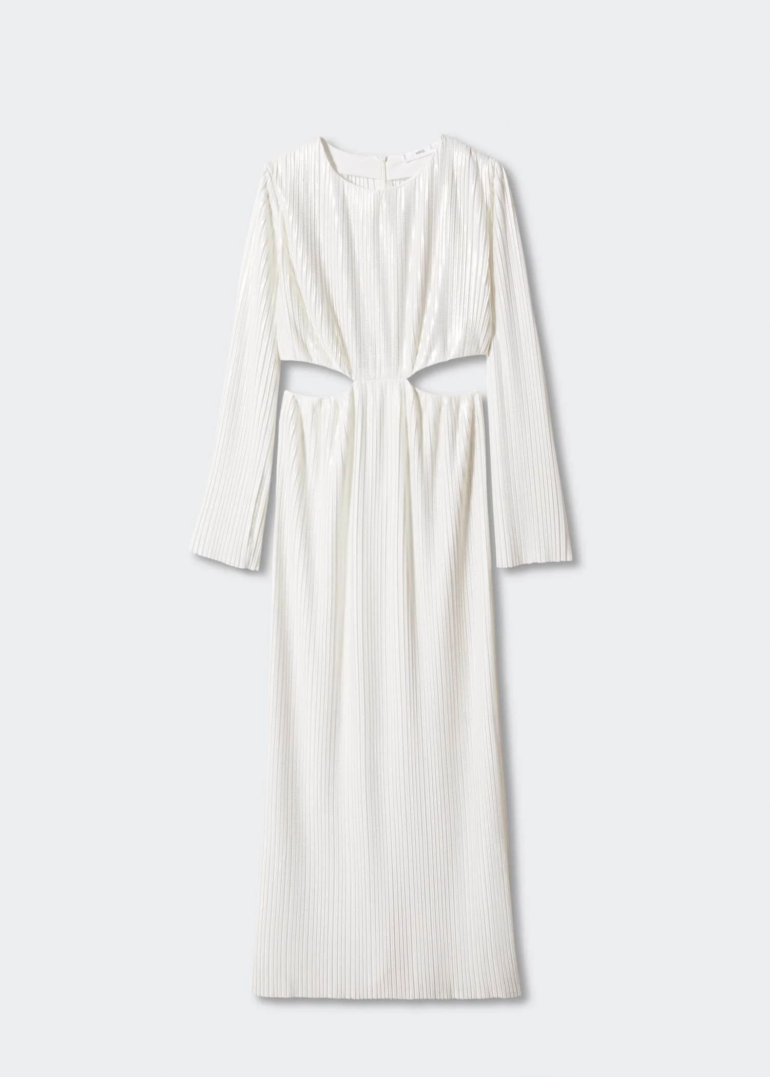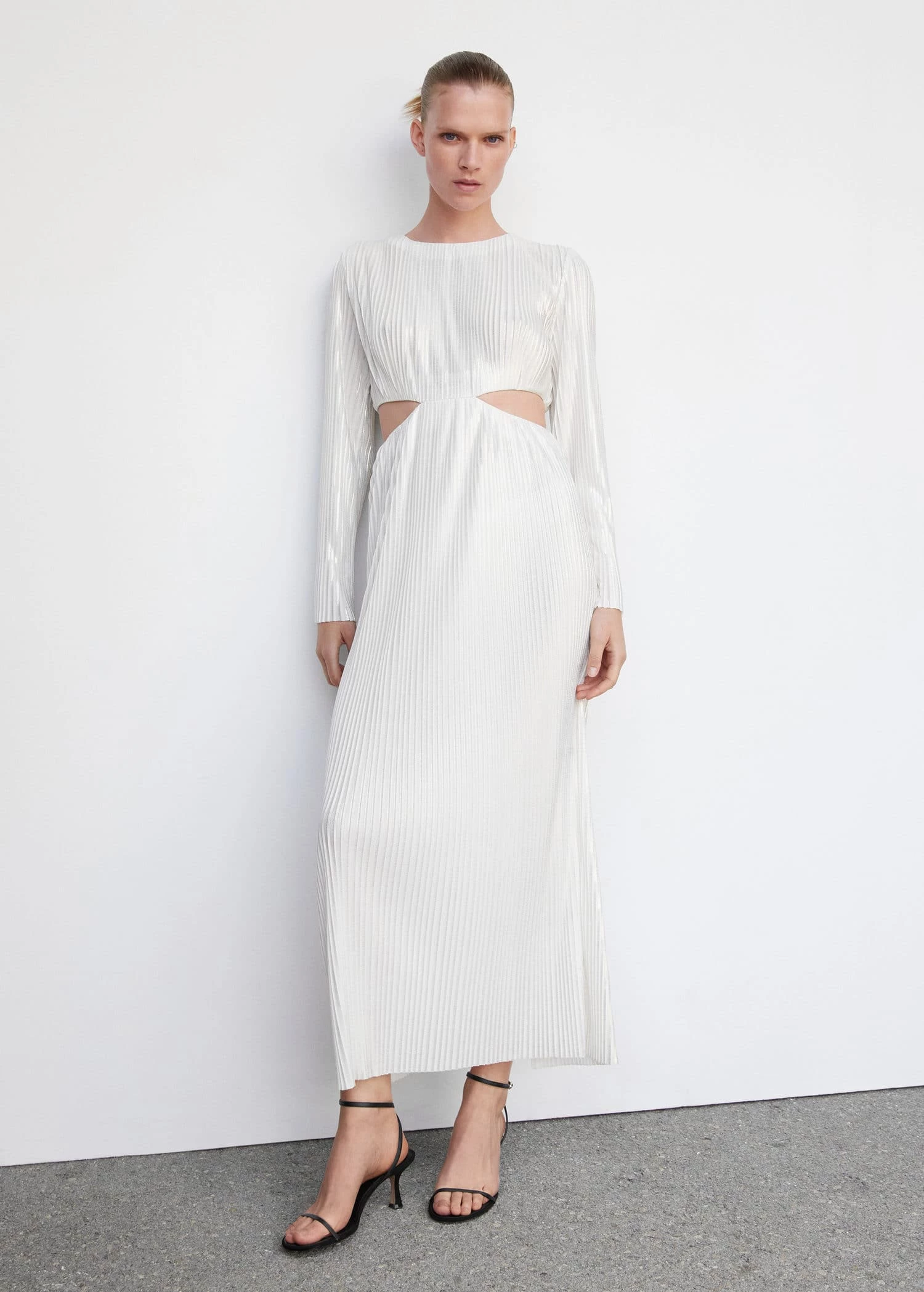 design plisse, droit, coupe longue, effet metallise, col rond, manches longues, fermeture eclair a l’arriere, fentes laterales, detail d’ouverture au dos, collection fetes et ceremoniesComposition: 60% polyester,40% polyester recyclé