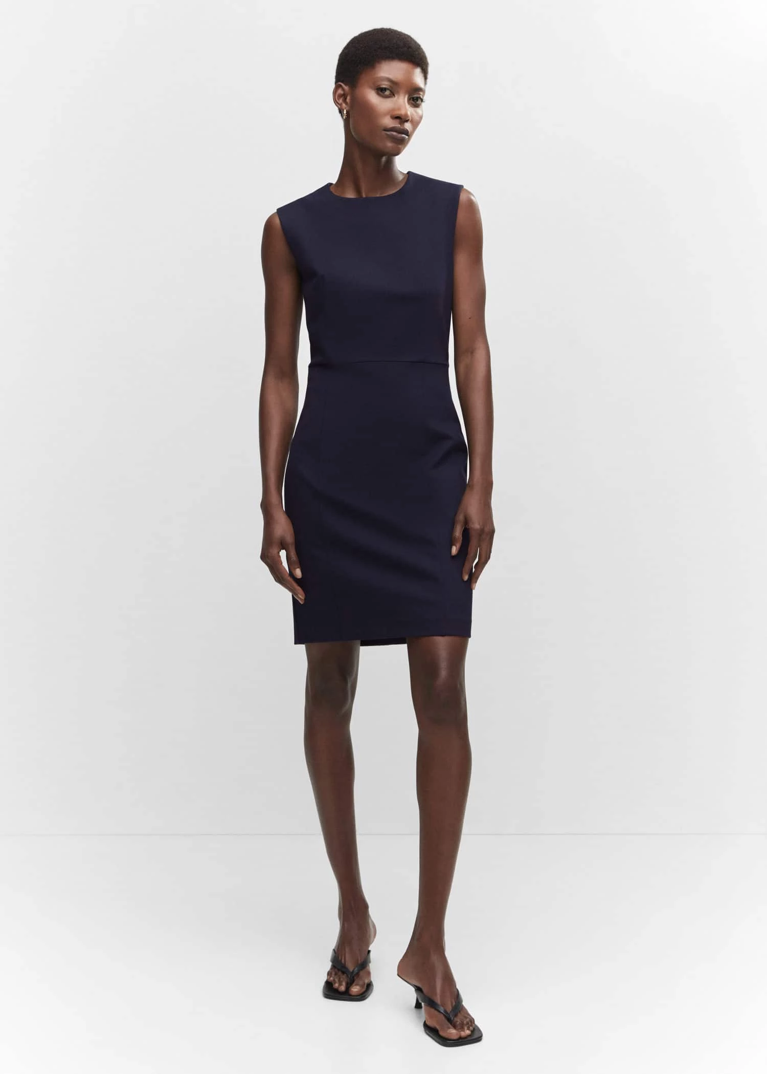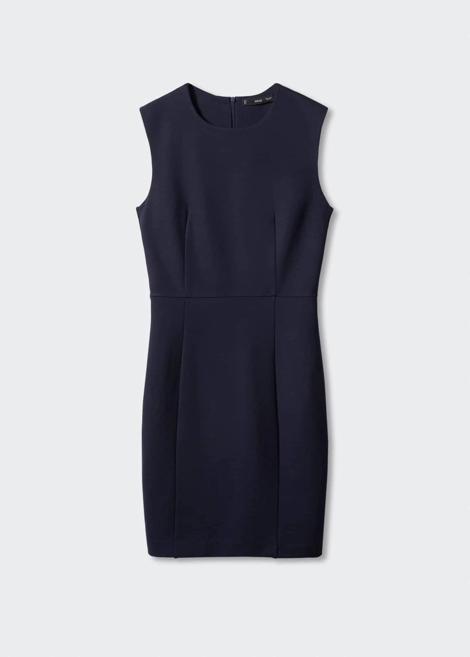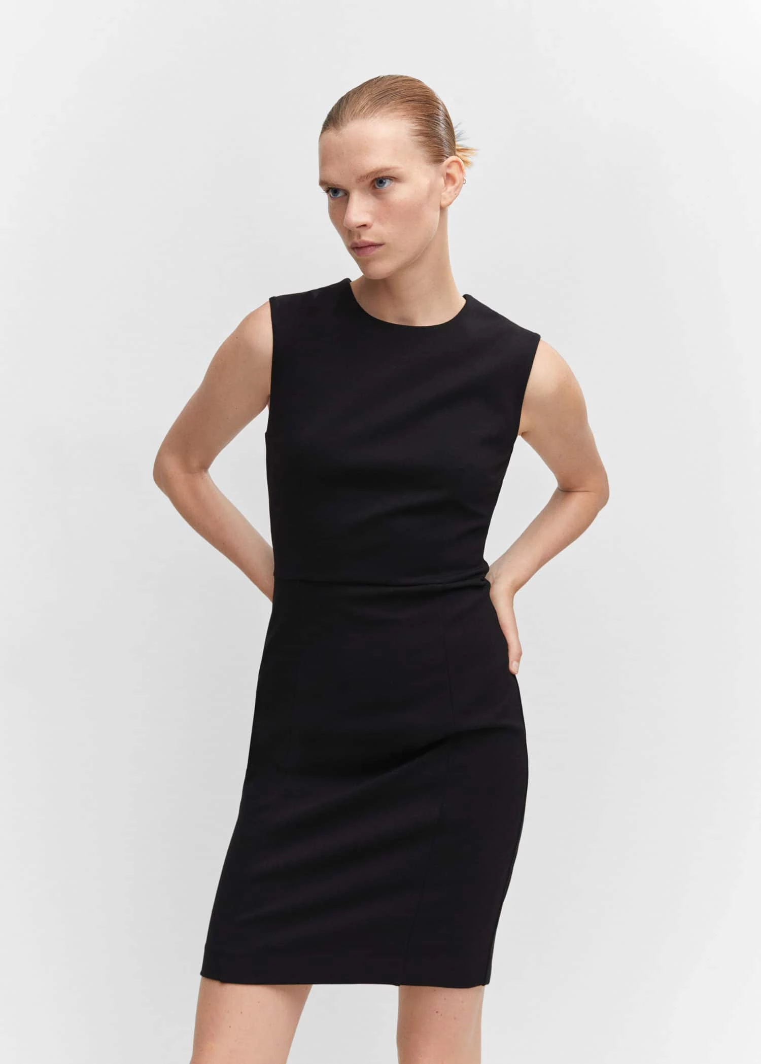 tissu en maille point de rome, ajuste, coupe courte, col rond, sans manches, fermeture eclair invisible a l’arriere, doublureComposition: 67% viscose,29% polyamide,4% elasthanne. Doublure: 100% polyester