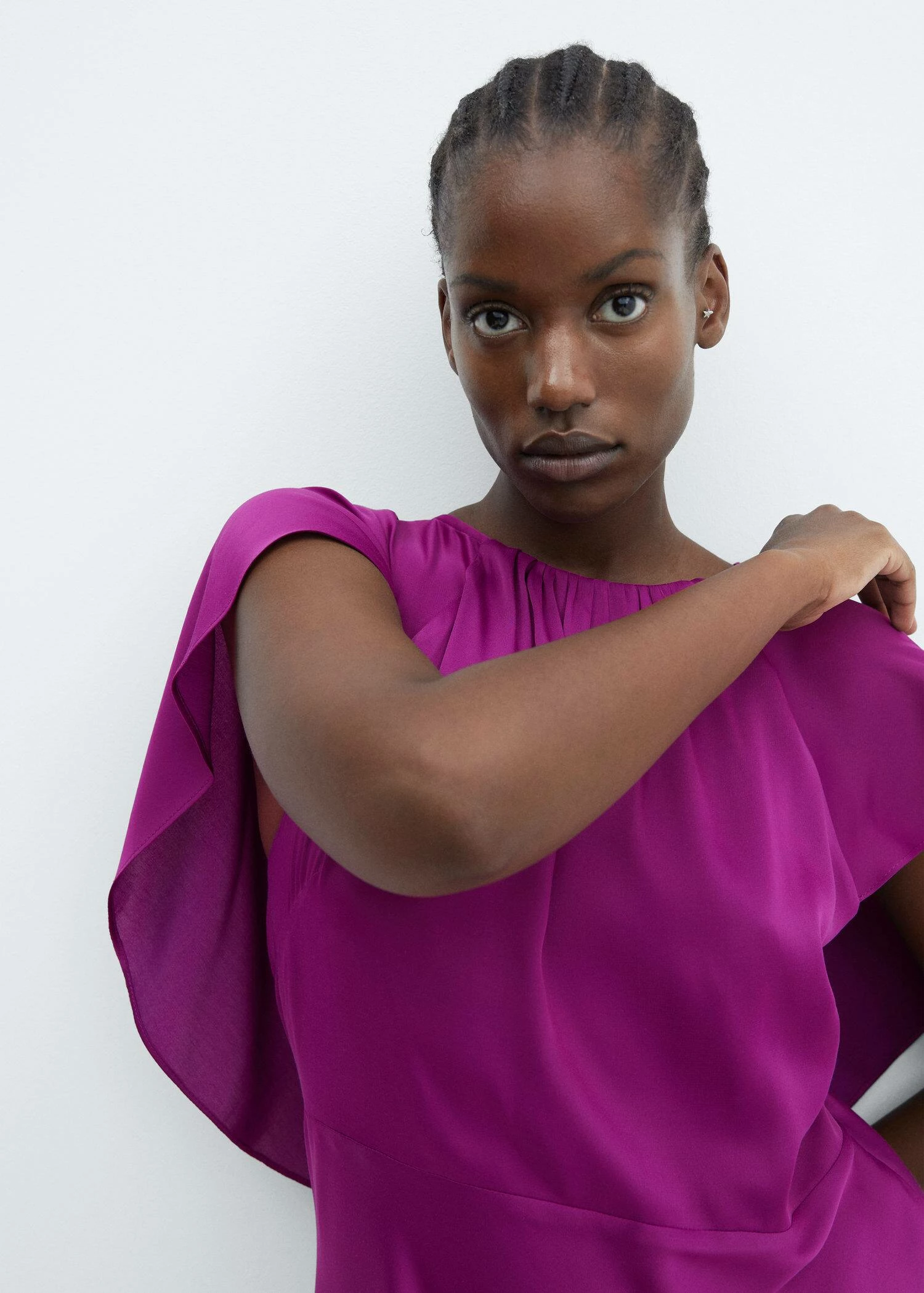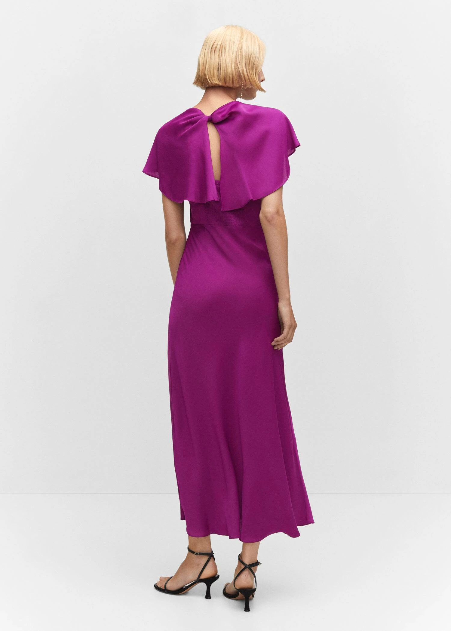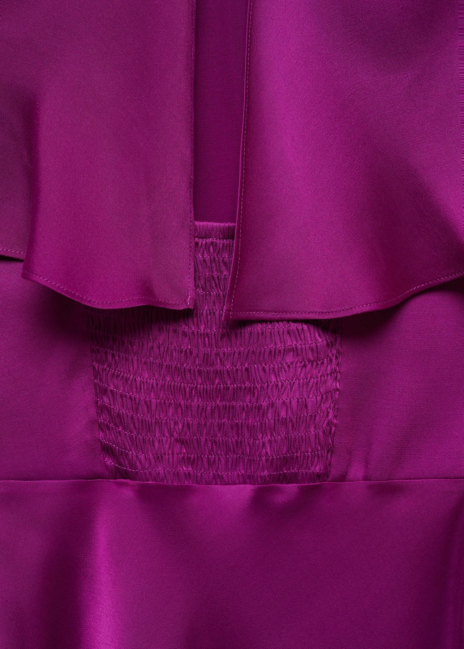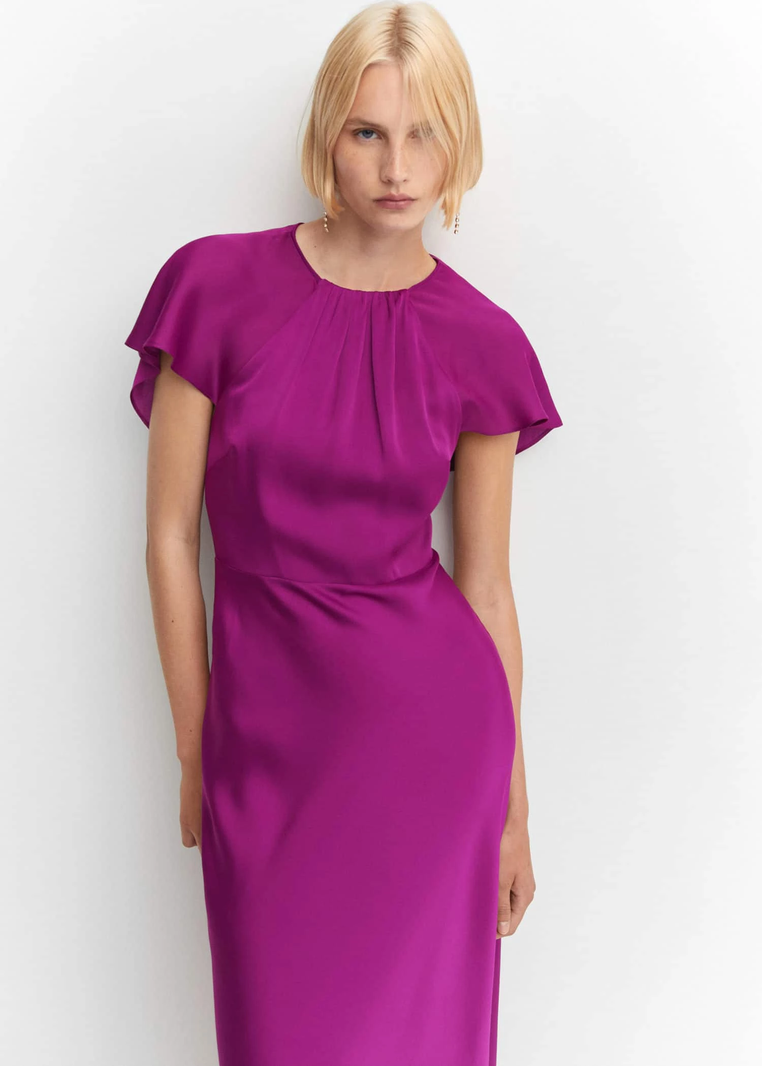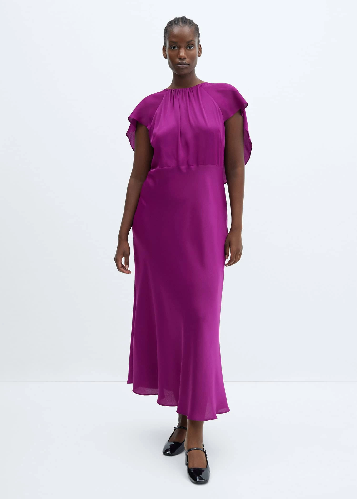tissu satine, tissu fluide, coupe droite, coupe longue, col rond, manches courtes, encolure au dos, detail nœudComposition: 50% polyester,50% viscose