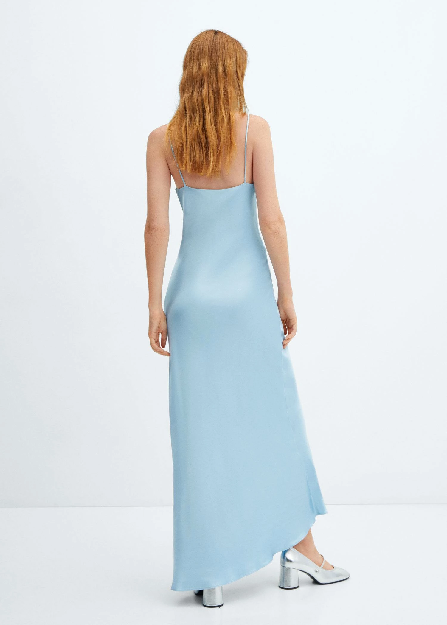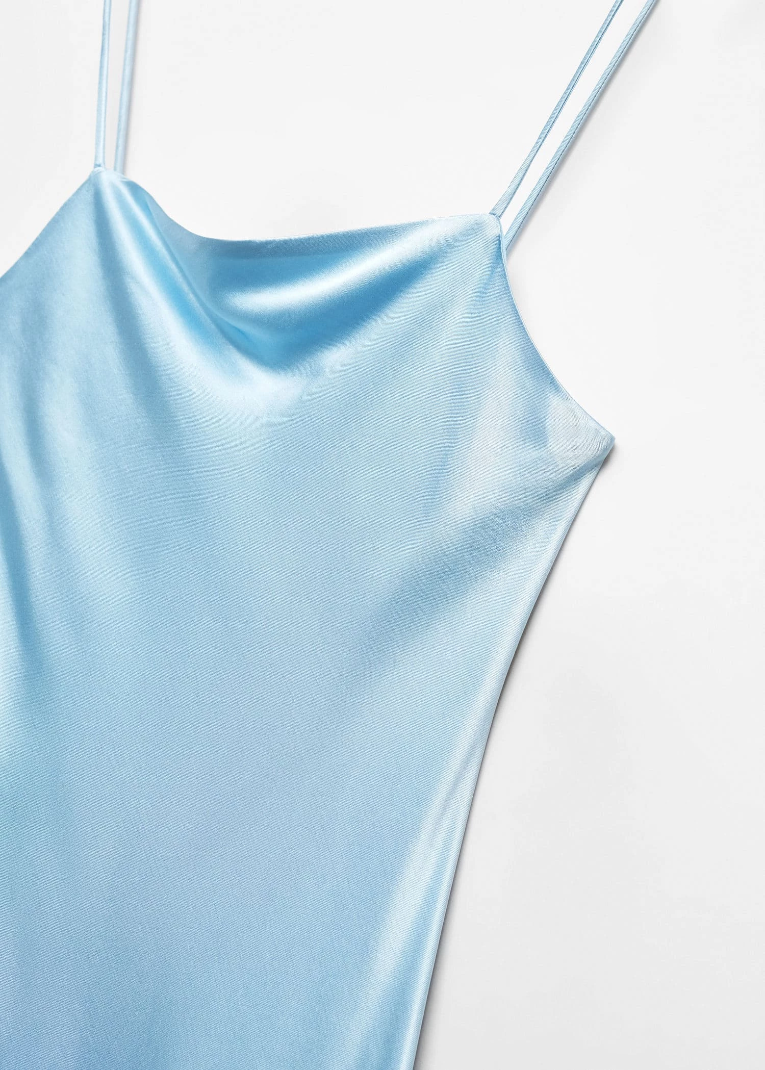 tissu fluide, coupe longue, ajuste, effet satine, col echancre, sans manches, bretelles fines, doublure, collection fetes et ceremoniesComposition: 100% viscose. Doublure: 100% polyester