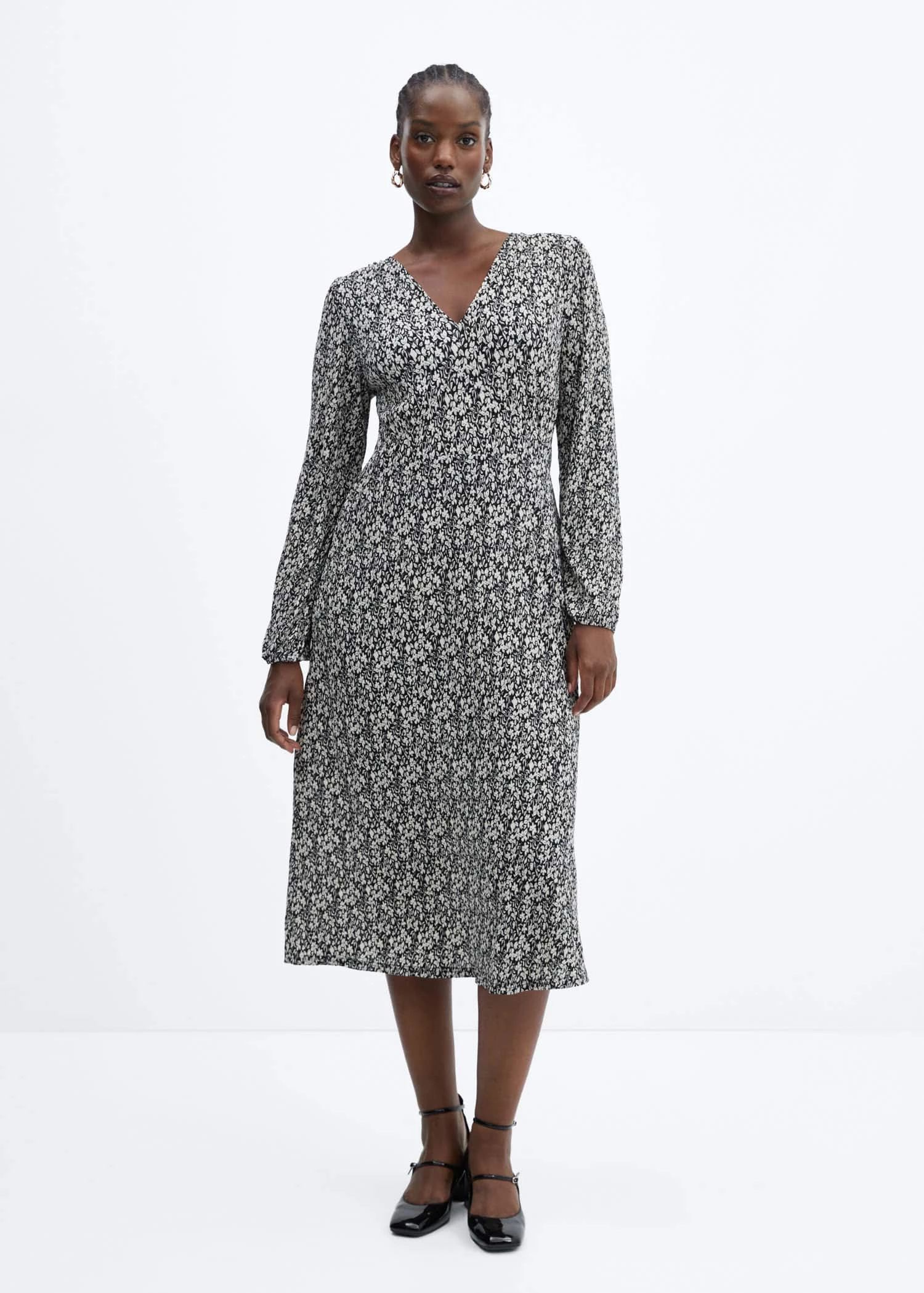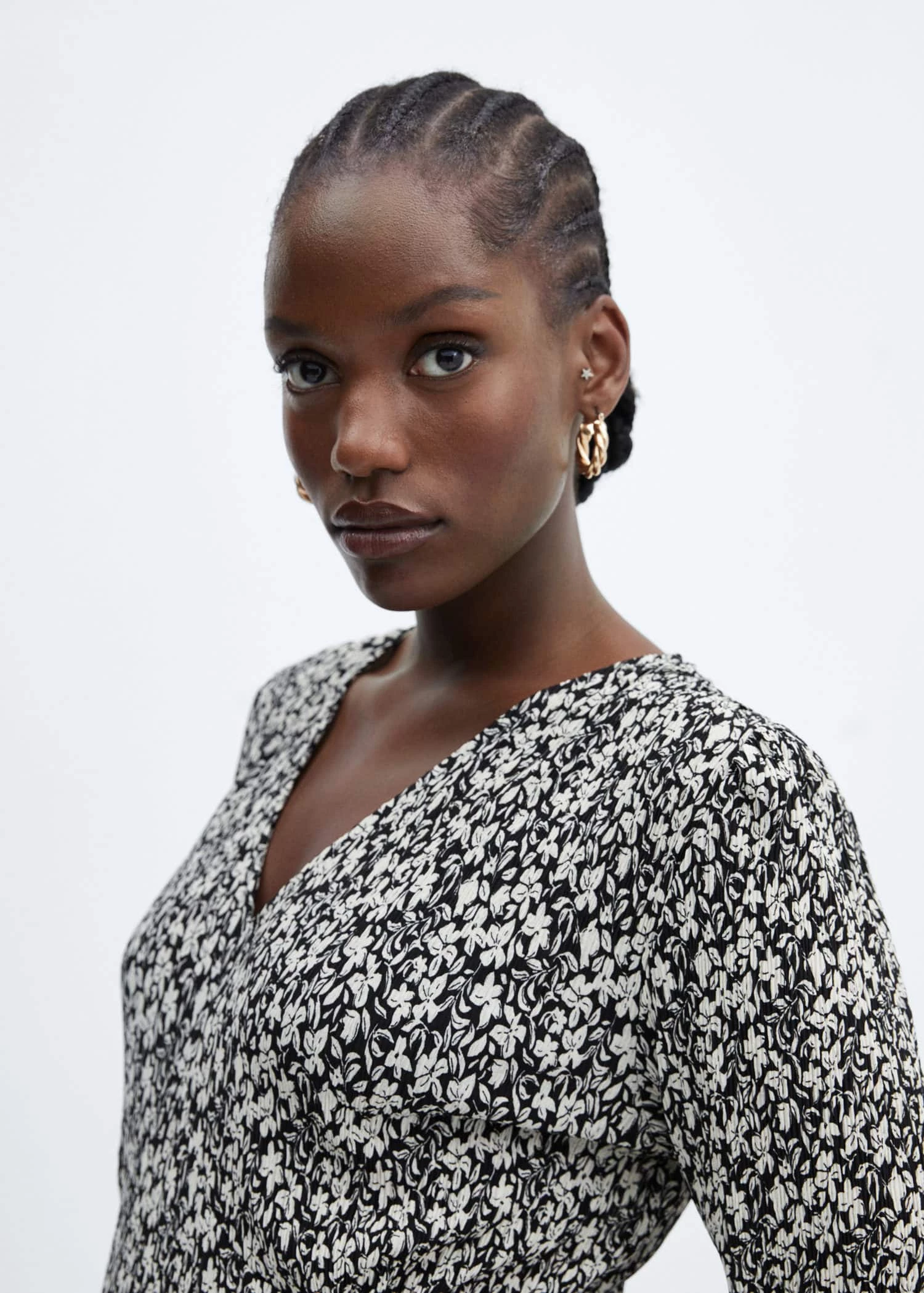 tissu texture, tissu fluide, coupe droite, coupe longue, imprime, col en v, manches longues avec poignets elastiques, sans fermeture, disponible plusComposition: 100% polyester