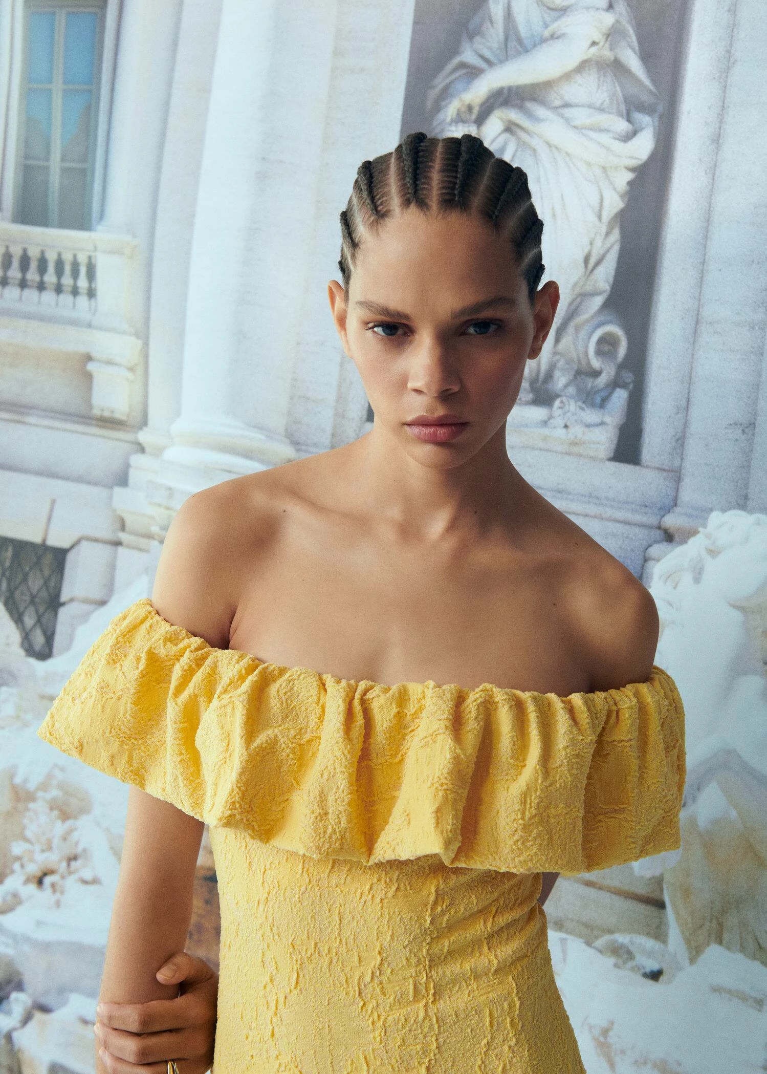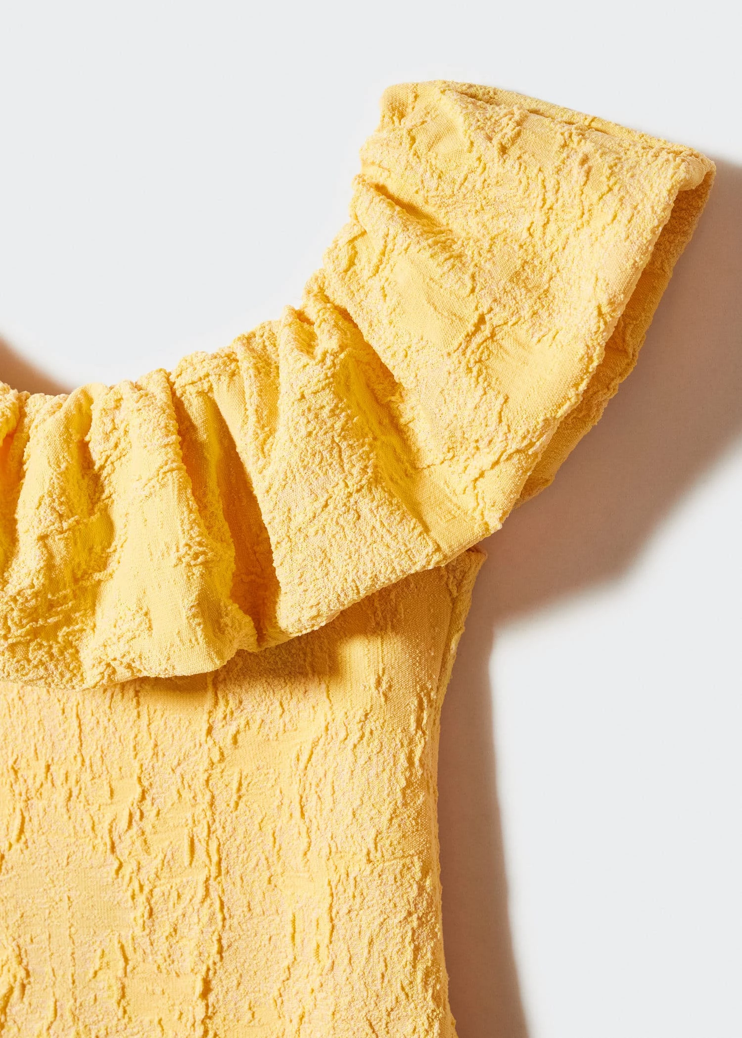 tissu texture, ajuste, coupe courte, col bateau, detail de volant sur les epaules, sans manches, sans fermeture, doublure, collection fetes et ceremoniesComposition: 93% polyester,7% elasthanne. Doublure: 87% polyester,13% elasthanne