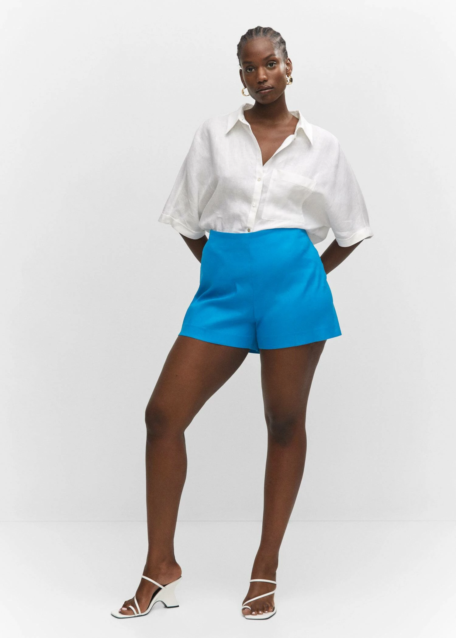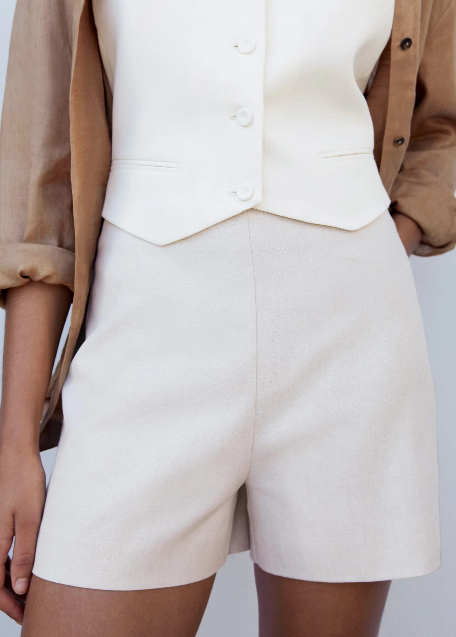 tissu en coton et lin melanges, coupe droite, coupe courte, taille haute, fermeture eclair laterale, disponible plusComposition: 62% lin,36% coton,2% elasthanne