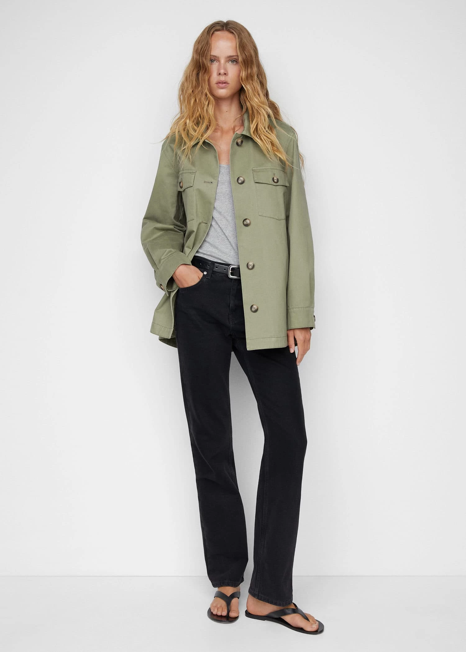 tissu 100Â % coton, coupe droite, col chemise, col rond, manches longues avec poignets boutonnes, deux poches laterales, deux poches boutonnees sur la poitrine, fermeture a boutons sur le devant, doublureComposition: 100% coton. Doublure: 100% coton