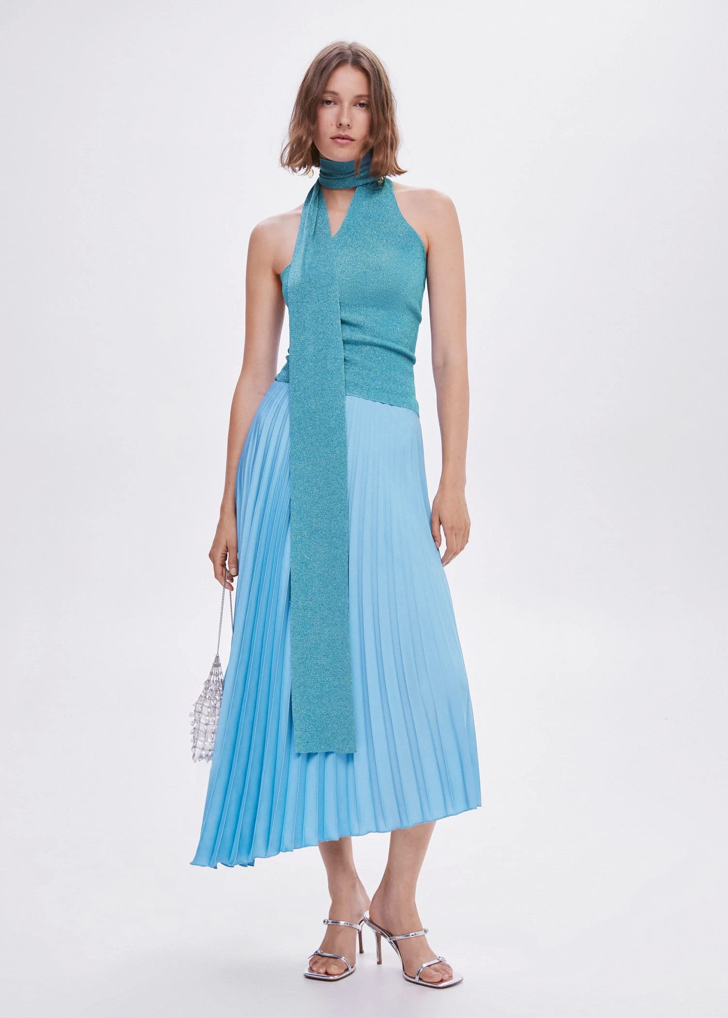 tissu lurex, asymetrique, coupe cintree, col asymetrique, col en forme de choker, bretelles fines, encolure au dos, sans fermeture, collection fetes et ceremonies, une selection de pieces raffinees, fabriquees a partir de materiaux de qualite pour creer une garde-robe feminine et contemporaine pour les grandes occasionsComposition: 88% viscose,12% polyester avec revêtement de cuivre