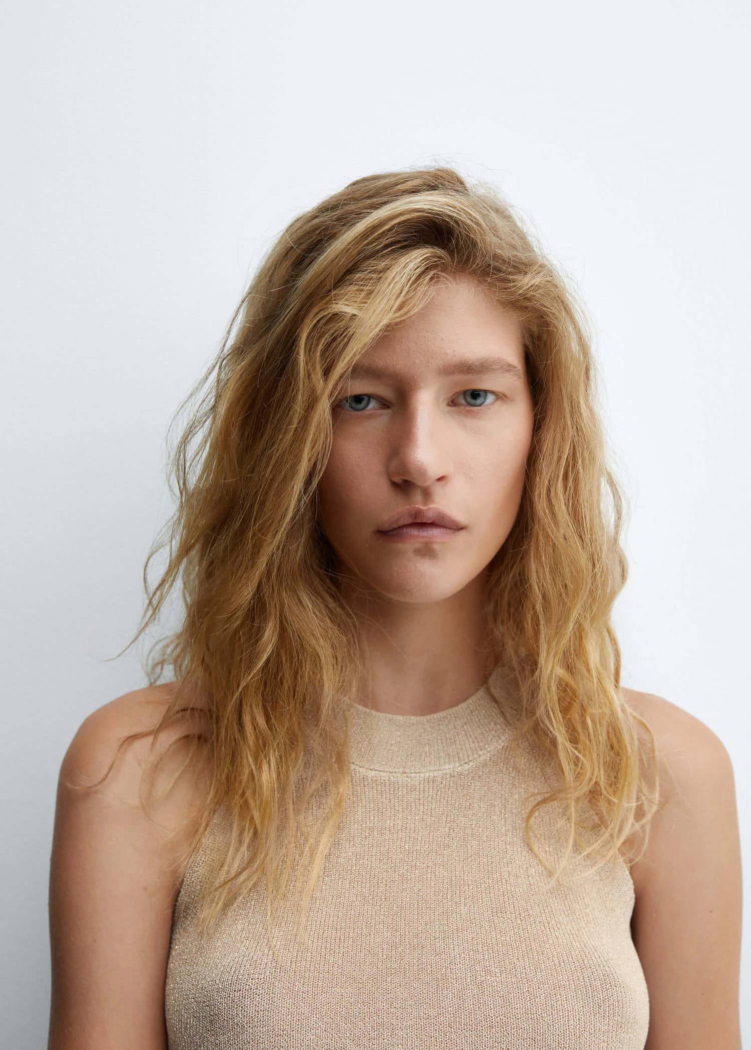 tissu en fil metallise melange, coupe cintree, emmanchures americaines, sans manches, sans fermeture, total lookComposition: 82% polyester,18% polyester avec revêtement de cuivre