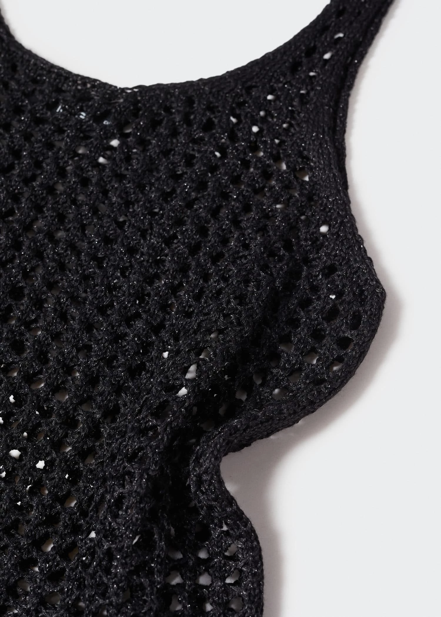 tissu lurex, tissu en maille ajouree, coupe droite, col echancre, bretelles larges, sans fermeture, saison des festivalsComposition: 75% viscose,16% polyester,9% polyester avec revêtement de cuivre