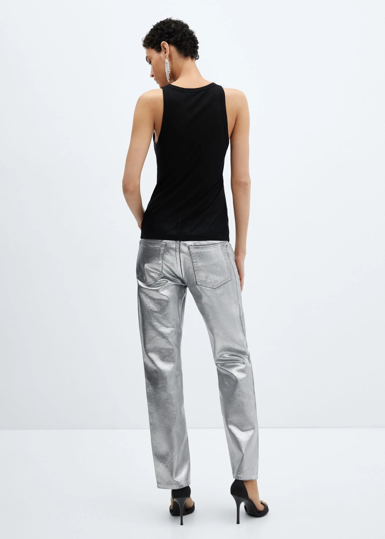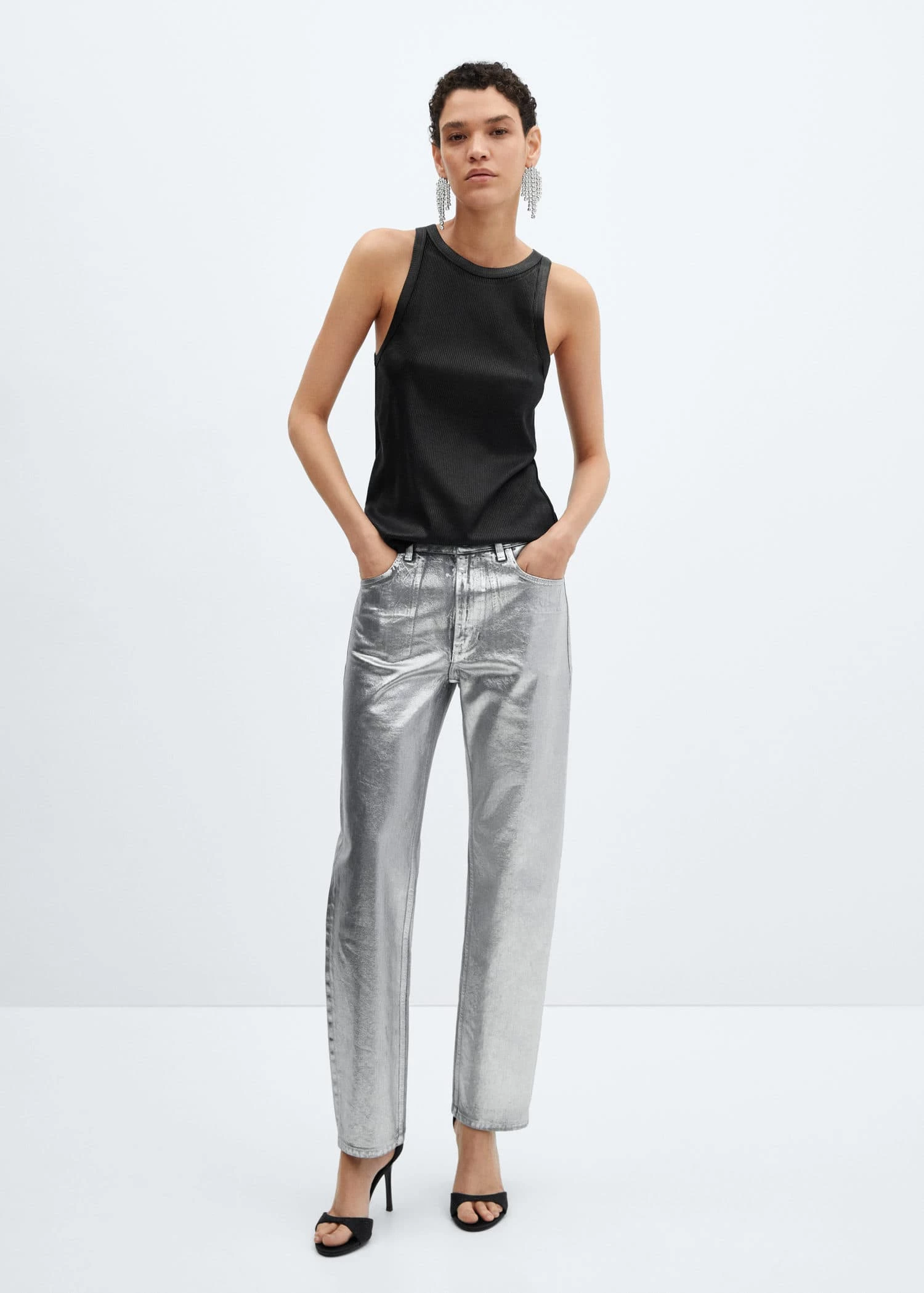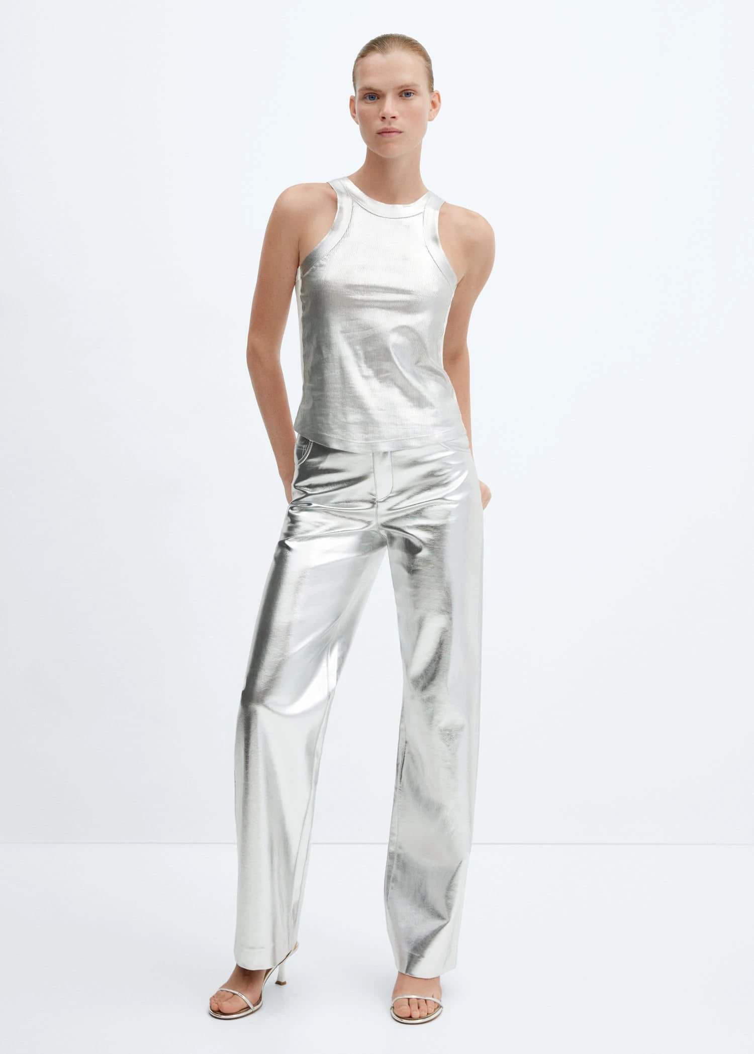 tissu de lyocell, finition metallisee, droit, col rond, bretelles larges, sans manchesComposition: 100% lyocell