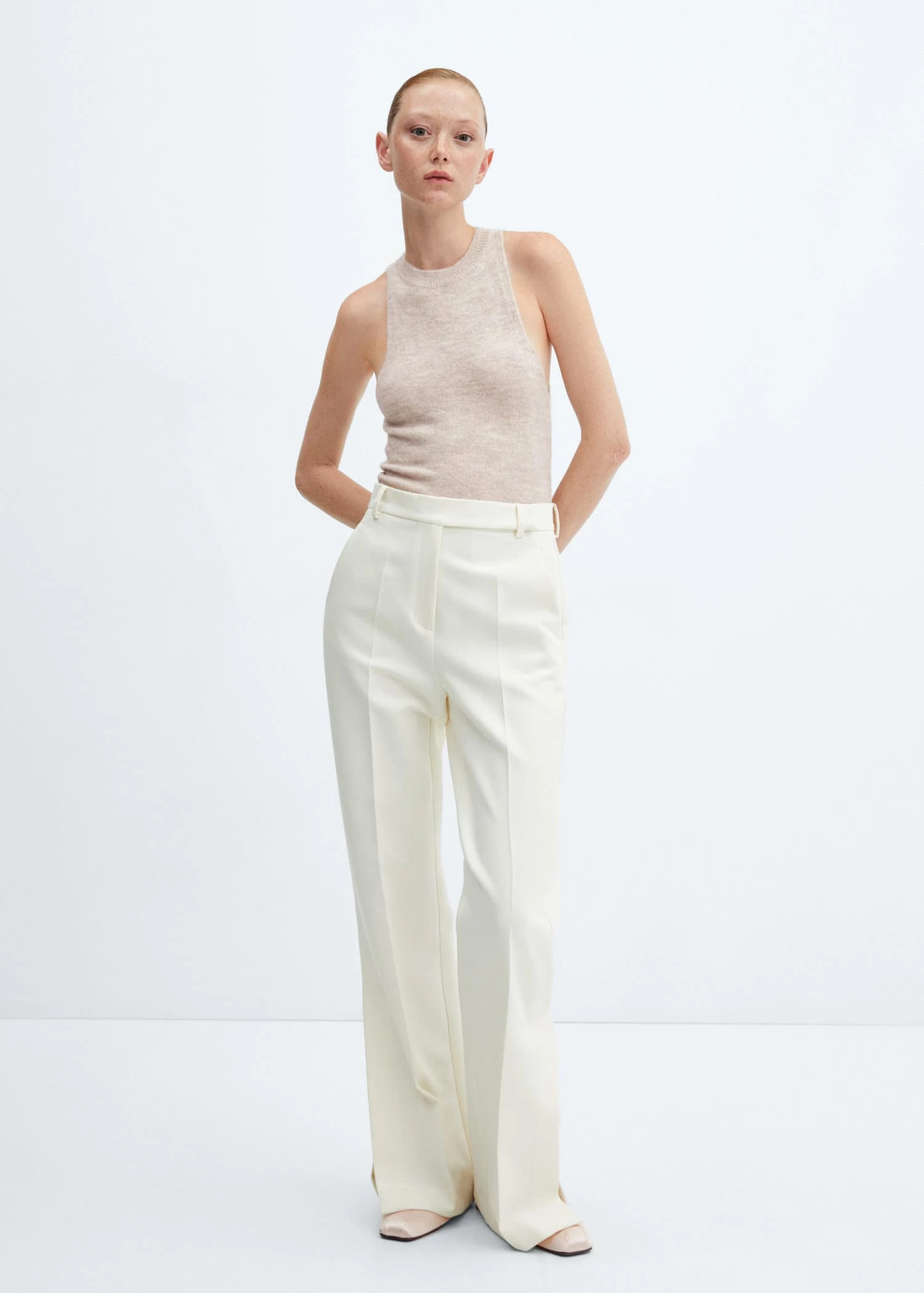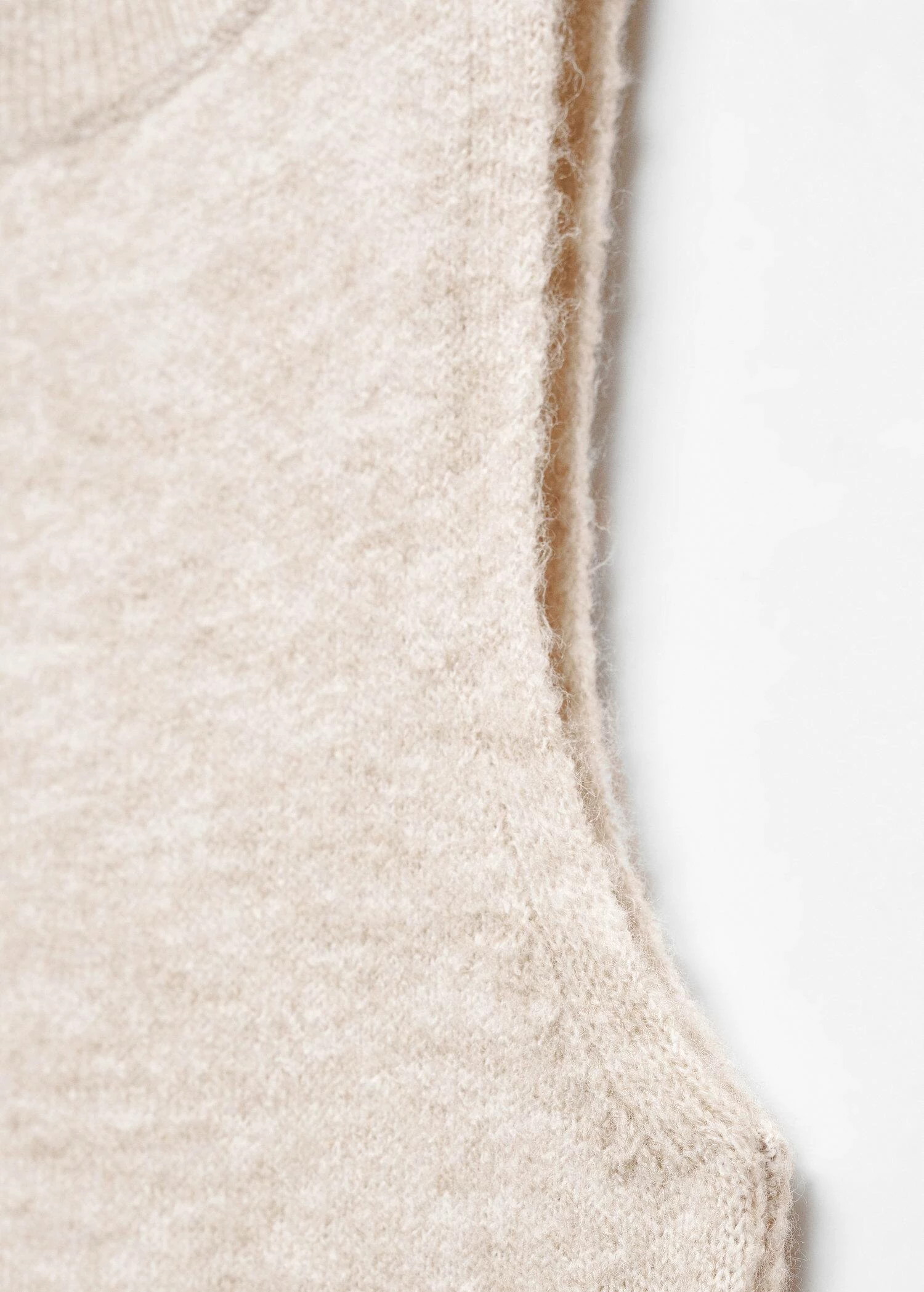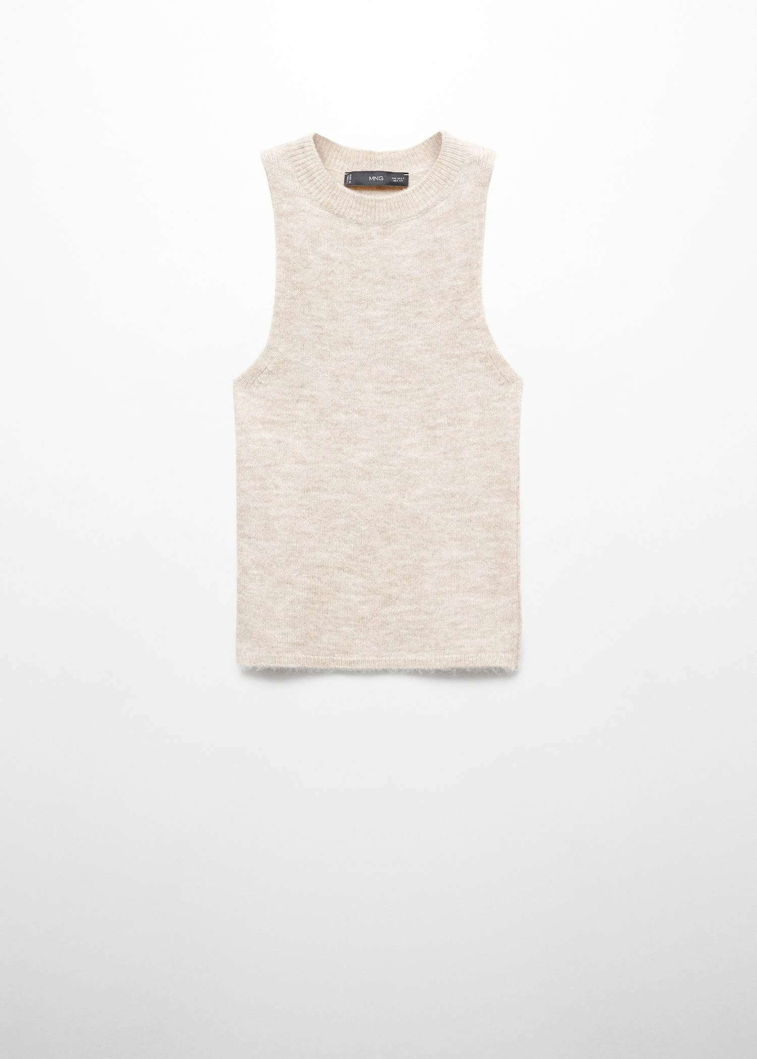 tissu de laine melange, maille moyenne, droit, col rond, sans manches, bords cotelesComposition: 60% acrylique,31% polyester,9% laine