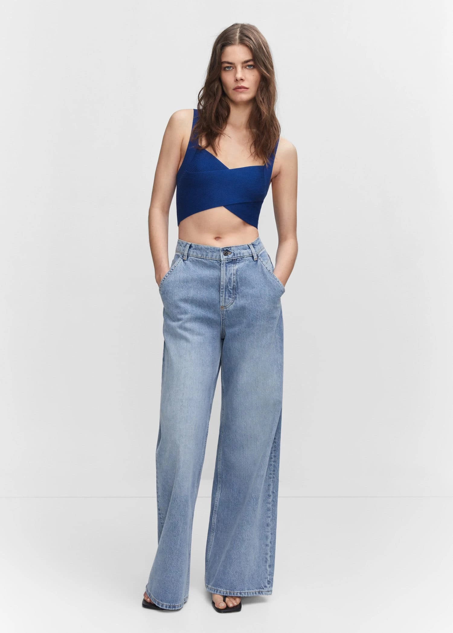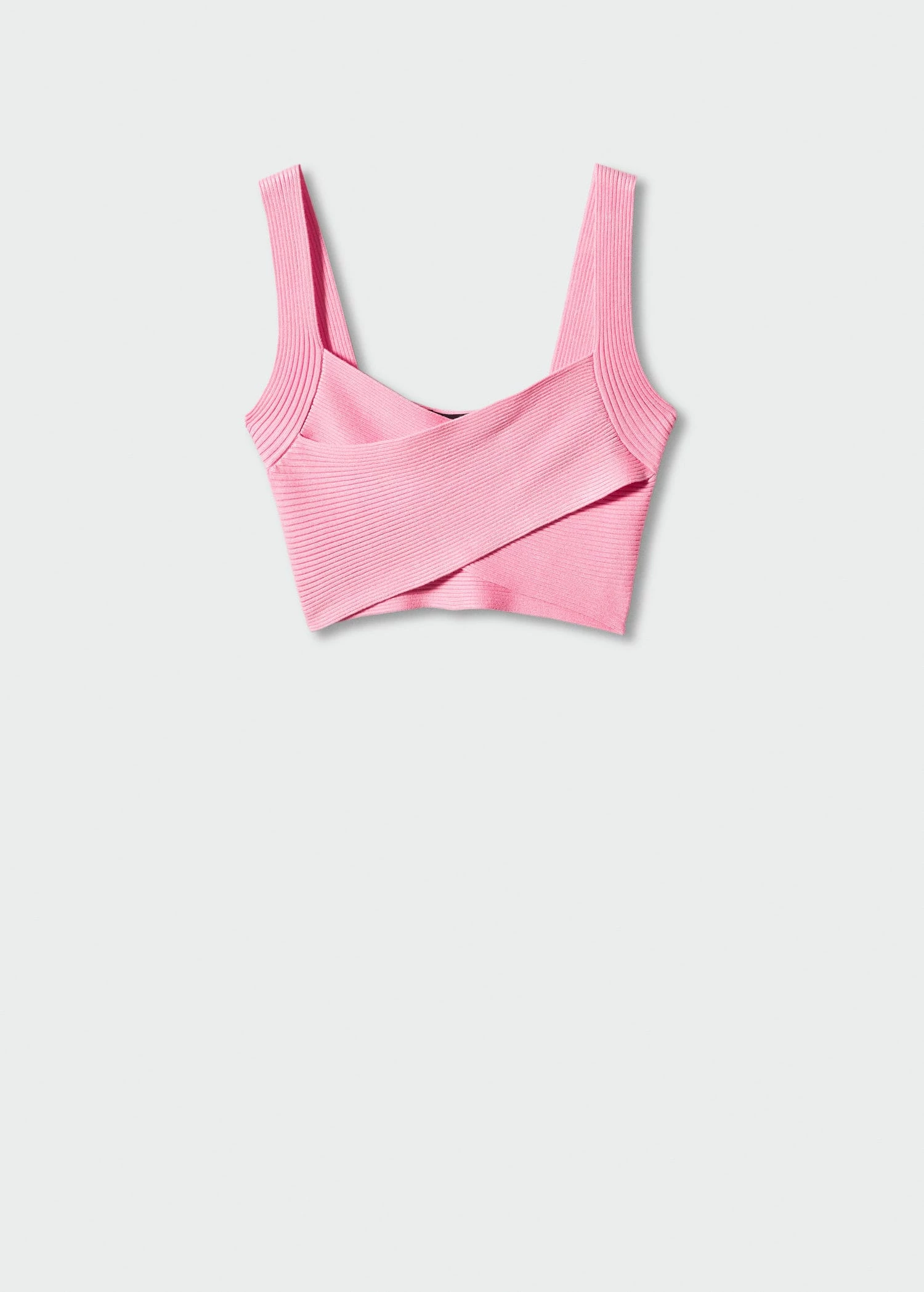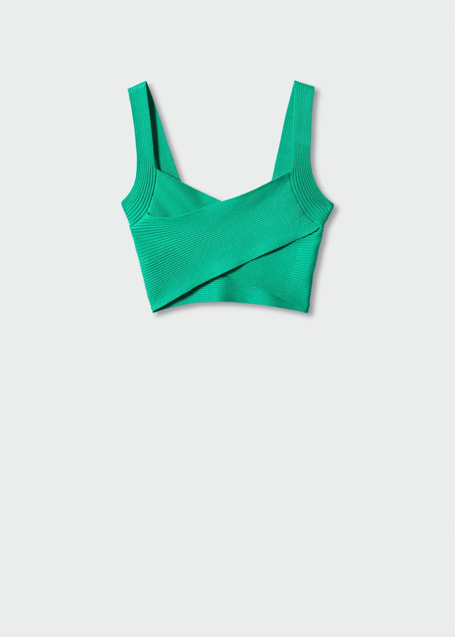 tissu en maille fine, ajuste, style crop, col croise, bretelles larges, sans fermeture, saison des festivalsComposition: 72% viscose,28% polyamide