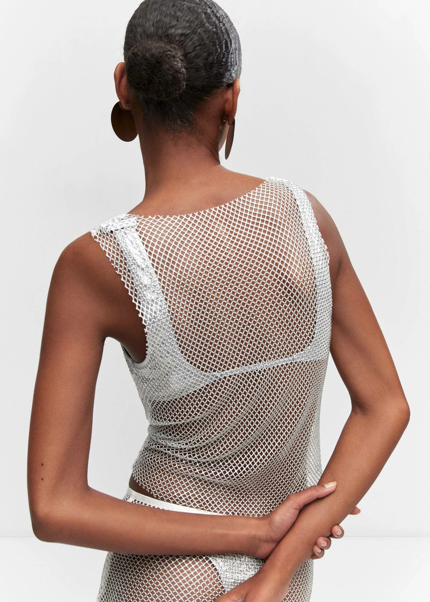 tissu en maille filet, coupe droite, col rond, sans manches, detail cristaux decoratifs, sans fermeture, saison des festivals, collection fetes et ceremoniesComposition: 96% polyester,4% elasthanne. Ornement: 100% verre