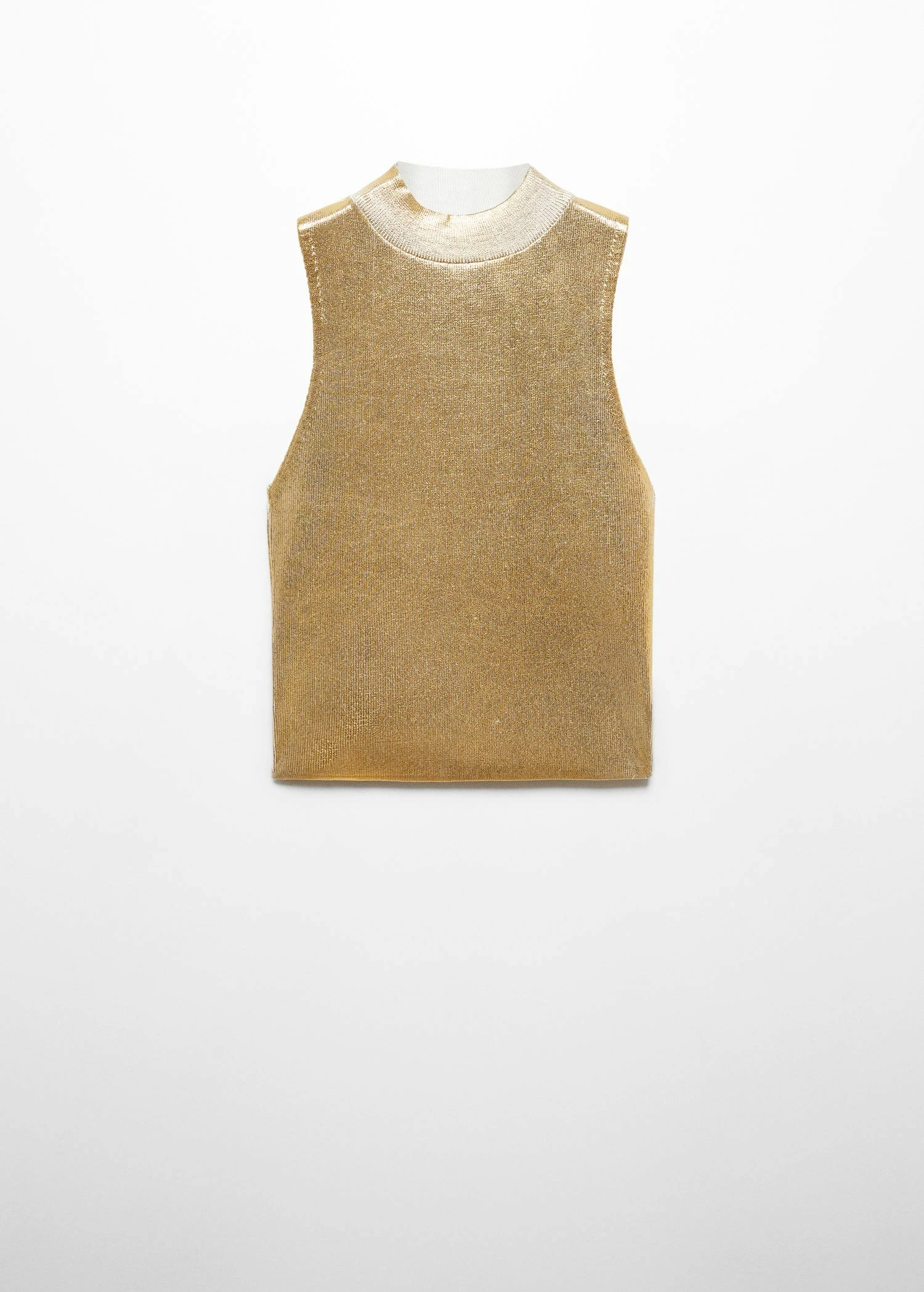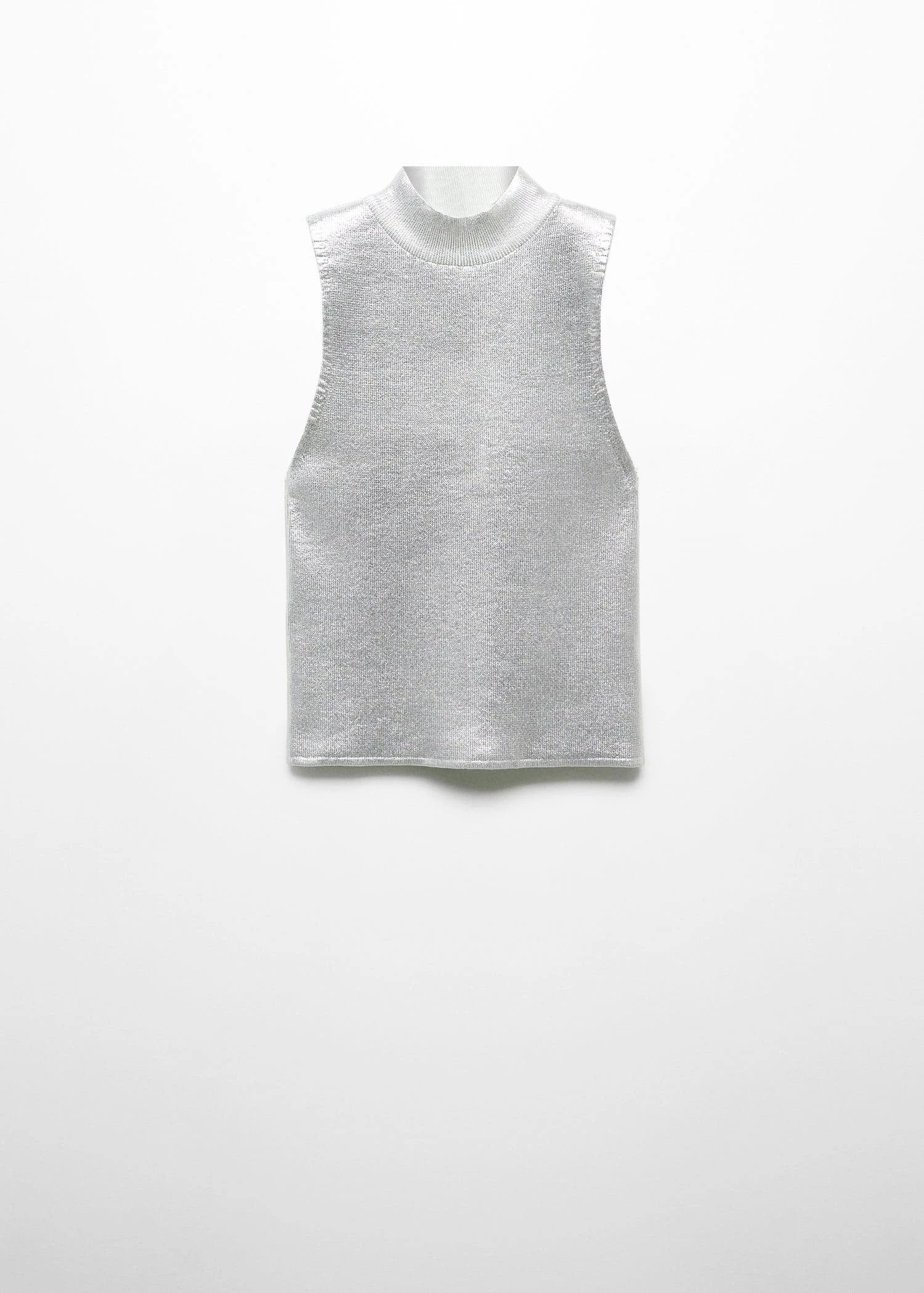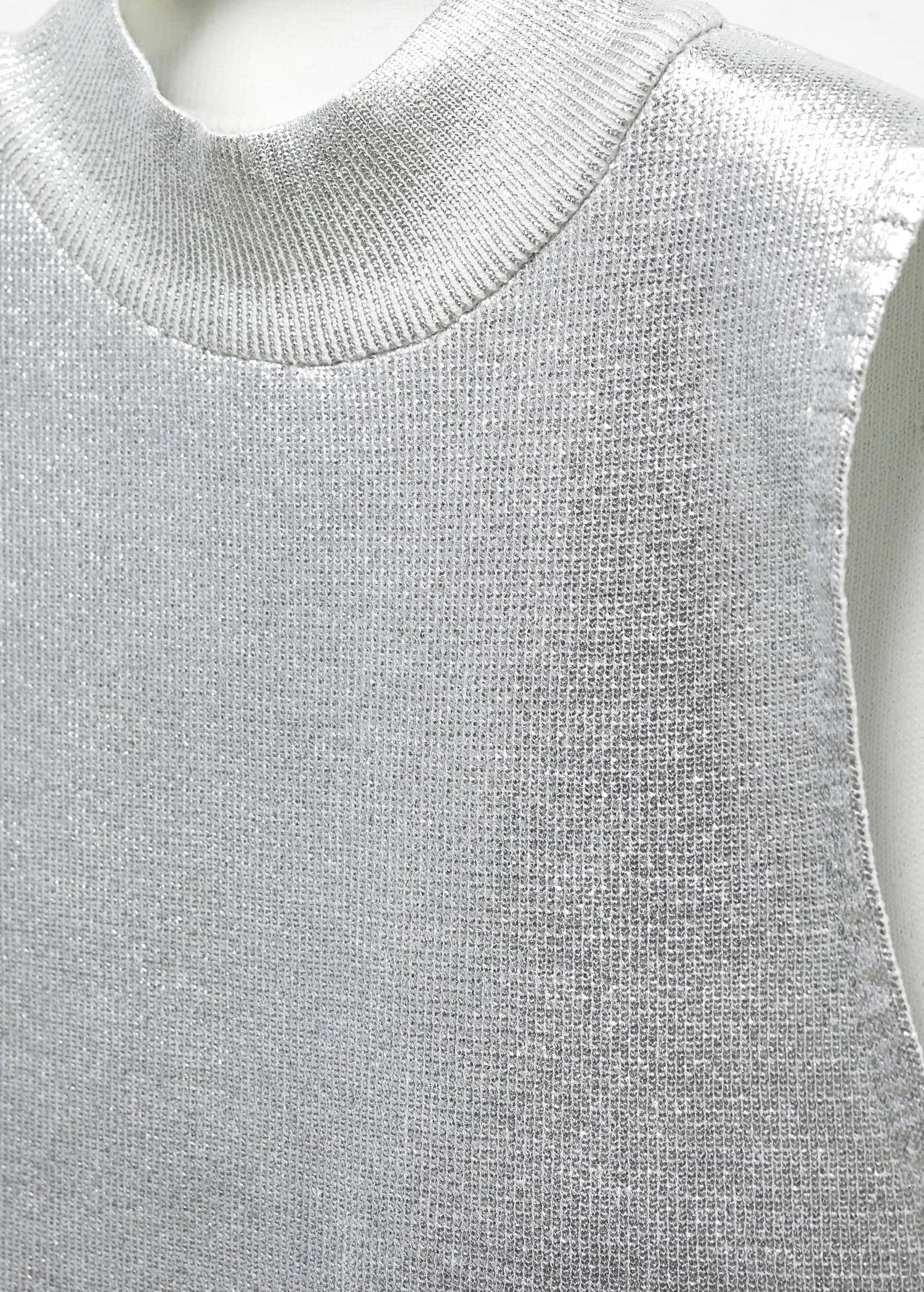 tissu en maille fine, coupe courte, coupe cintree, finition metallisee, col rond, sans manches, sans fermeture, collection fetes et ceremonies.Composition: 100% polyester