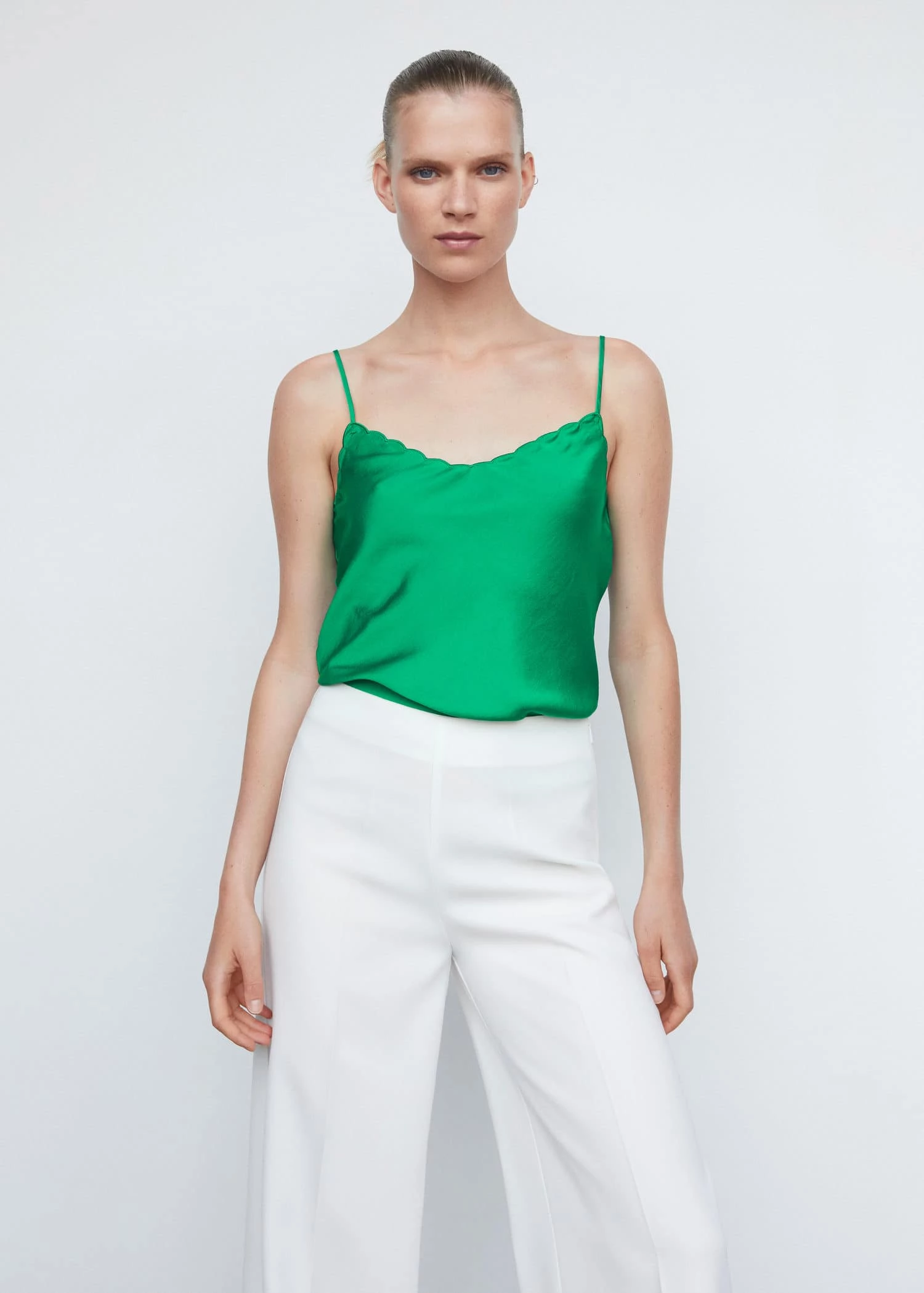 tissu satine, tissu fluide, coupe droite, col echancre, bretelles fines ajustables, sans fermeture, collection fetes et ceremoniesComposition: 100% polyester