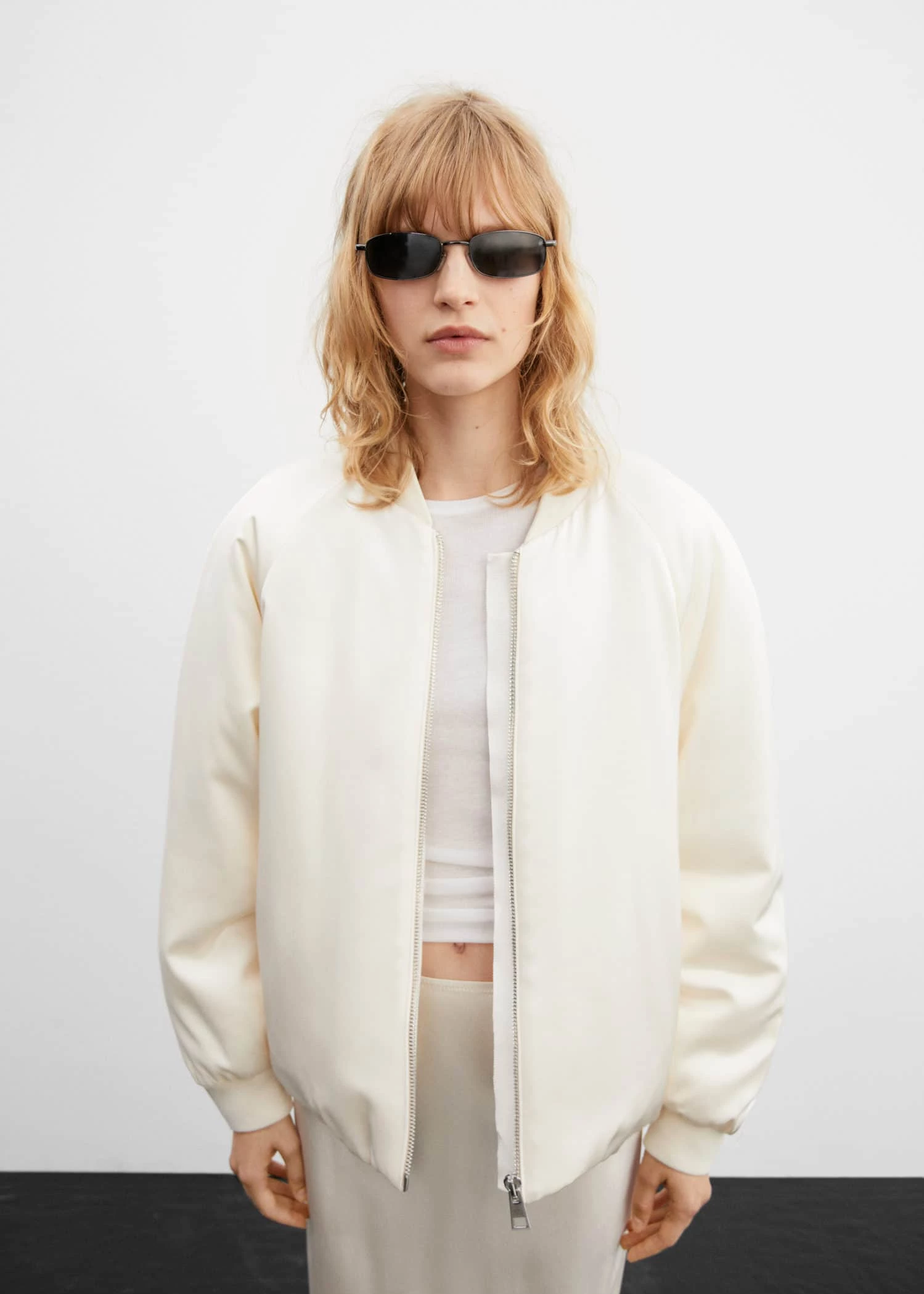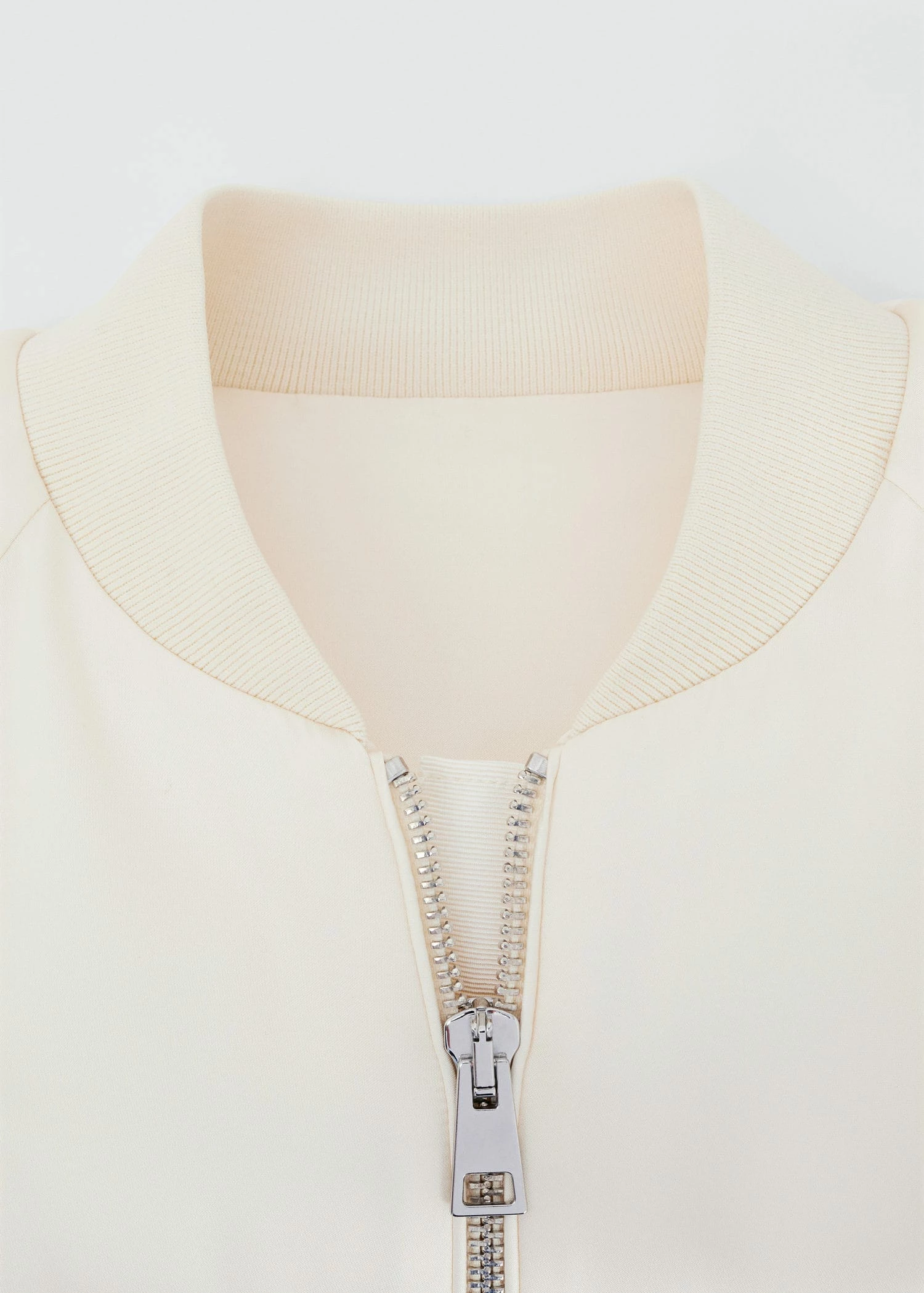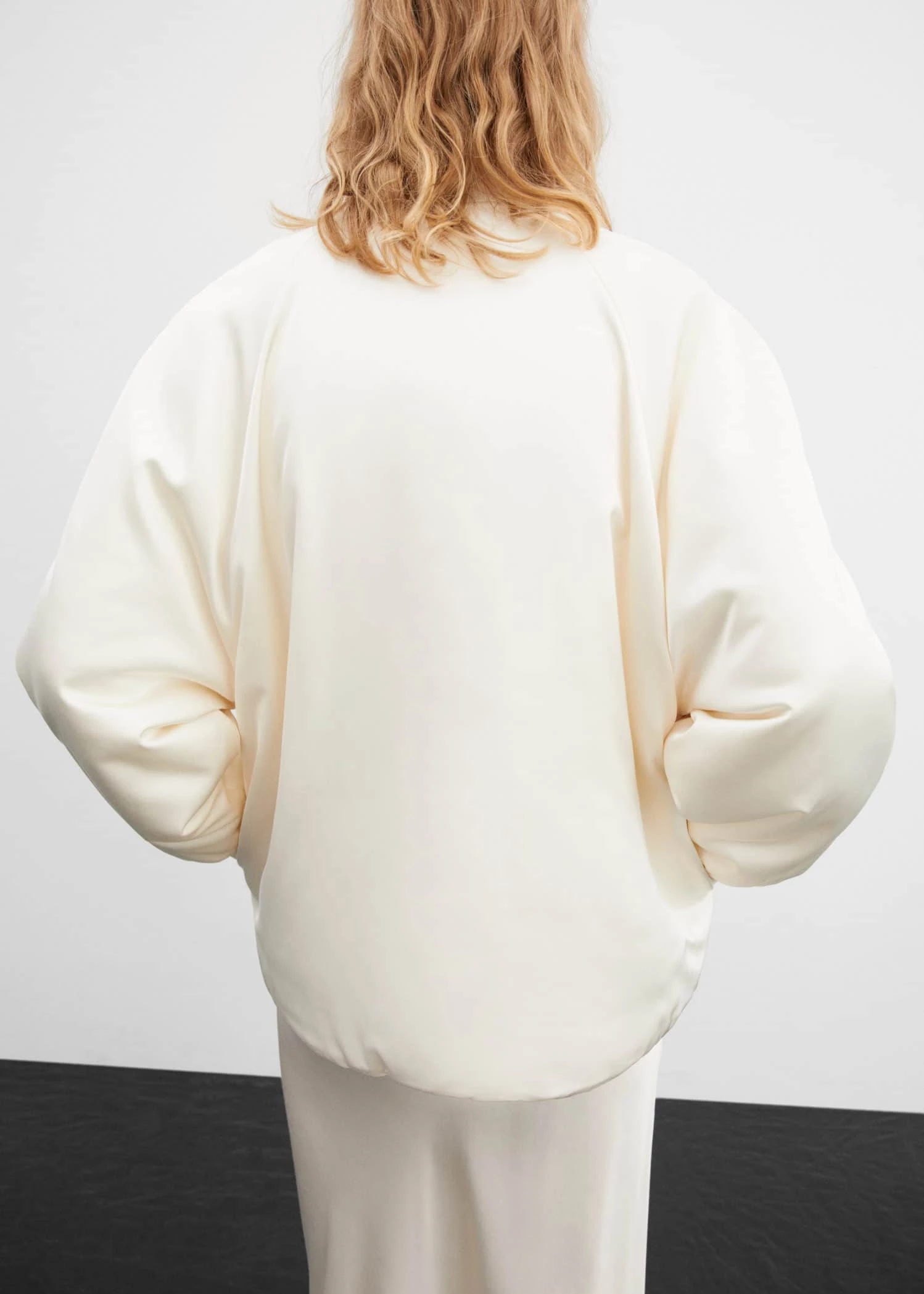 tissu satine, matelasse, col rond, manches longues bouffantes, deux poches laterales, fermeture eclair a l’avant, collection selection, une selection de pieces qui vous accompagneront lors du retour au bureau. confectionnee avec des matieres de qualite pour creer une garde-robe feminine et contemporaine pour votre quotidien.