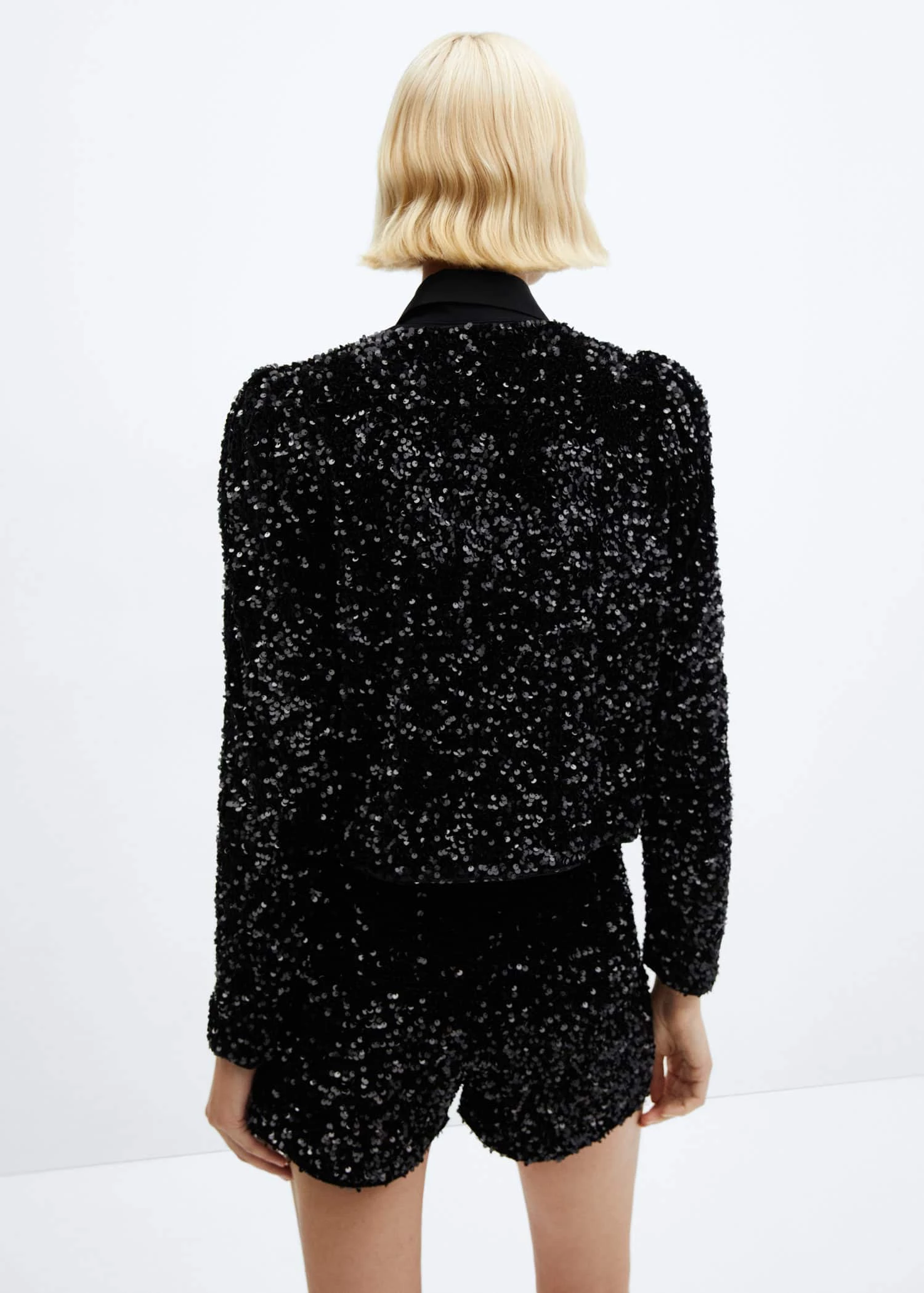 tissu en sequins, coupe droite, col rond, manches longues, fermeture crochet sur le devant, doublure, total look, collection fetes et ceremonies.Composition: 100% polyester. Doublure: 100% polyester. Sequin: 100% poly(téréphtalate d’éthylène)
