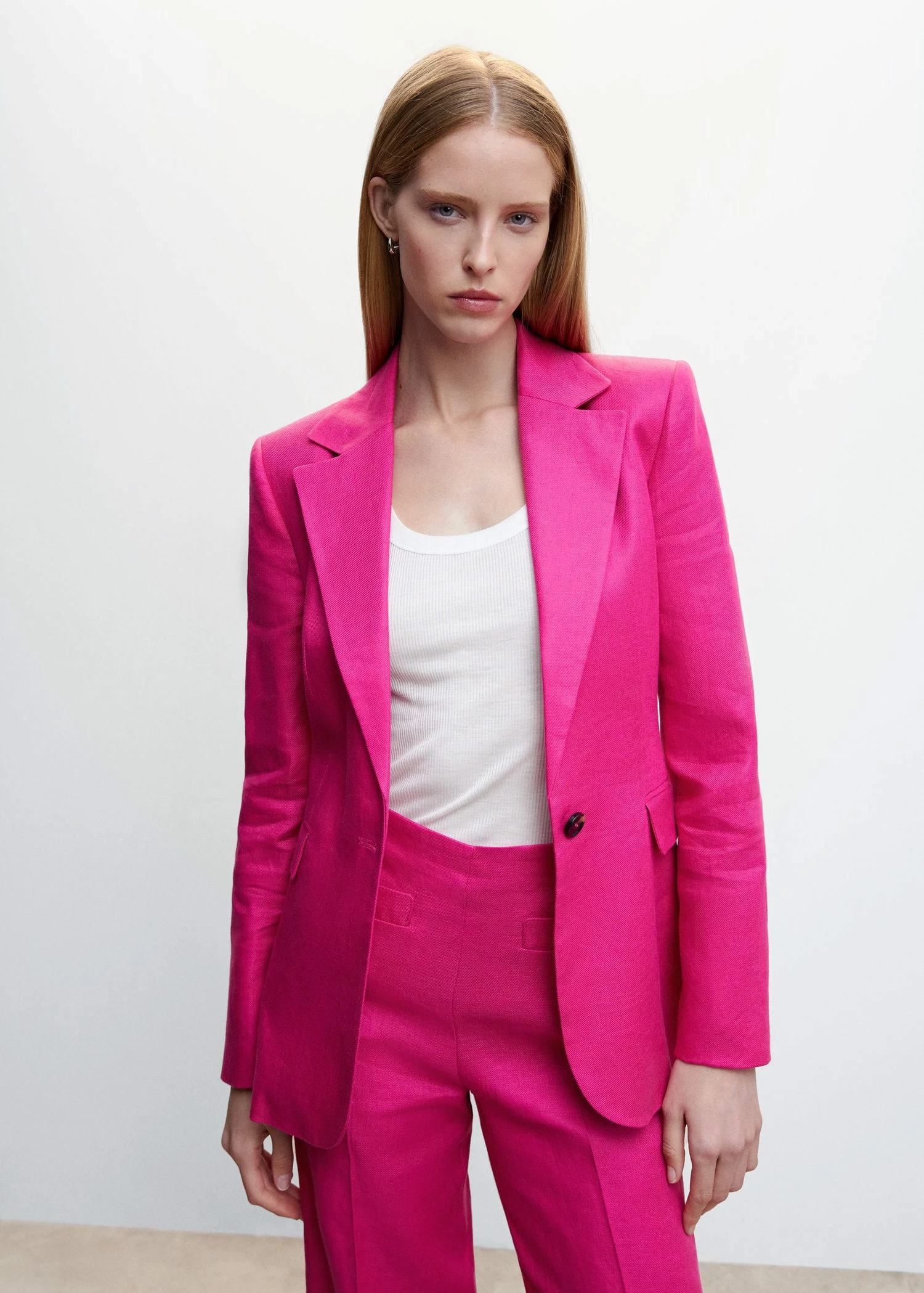 tissu 100 % lin, coupe droite, coupe longue, col en v avec rabat, manches longues avec poignets boutonnes, deux poches a rabat, fermeture a bouton, total look, collection fetes et ceremoniesCOMPOSITION:100% LIN. DOUBLURE:100% COTON